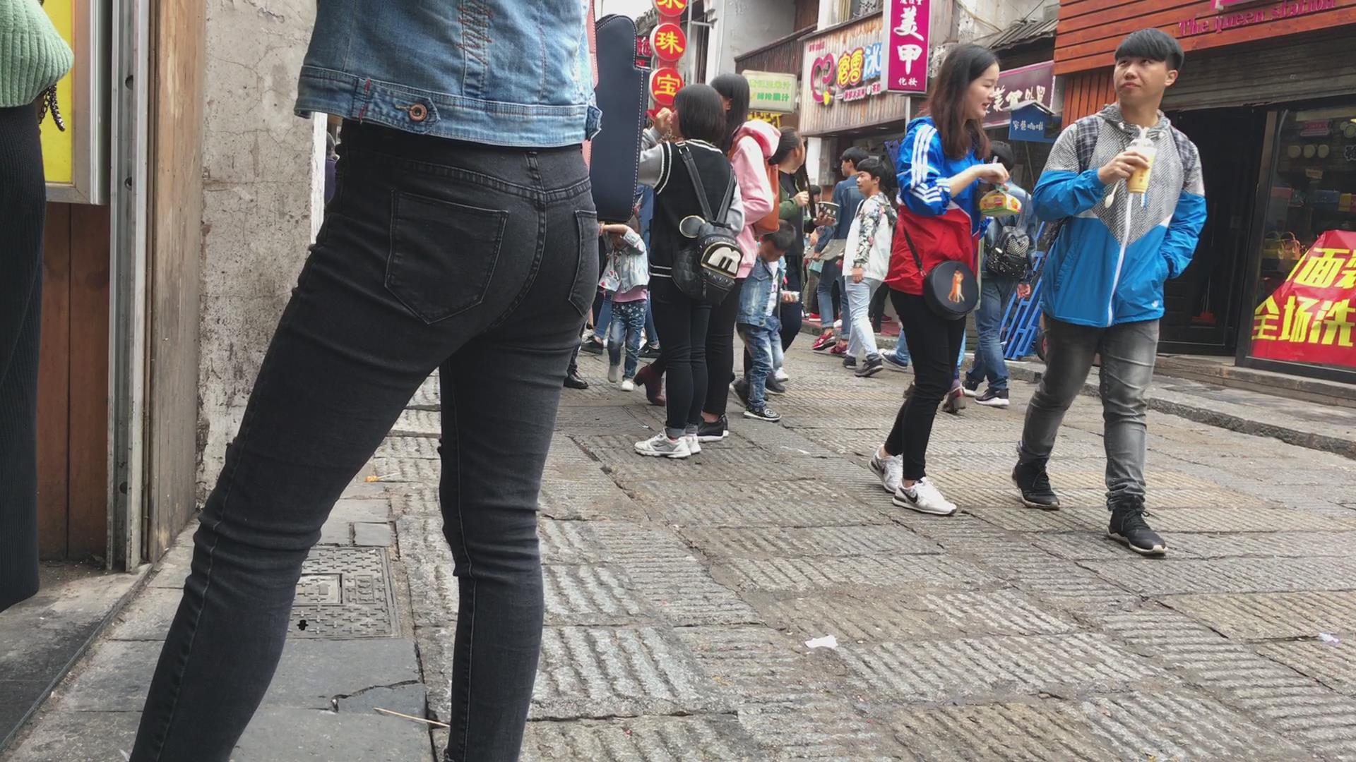 黑色紧身翘臀牛仔裤美眉 编号5868