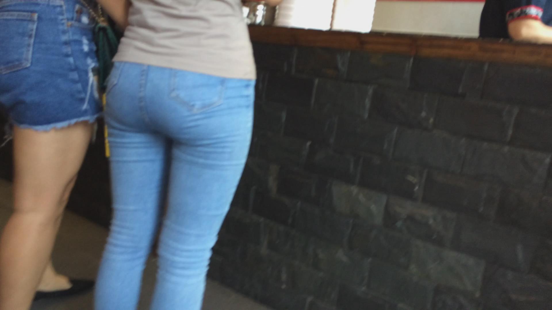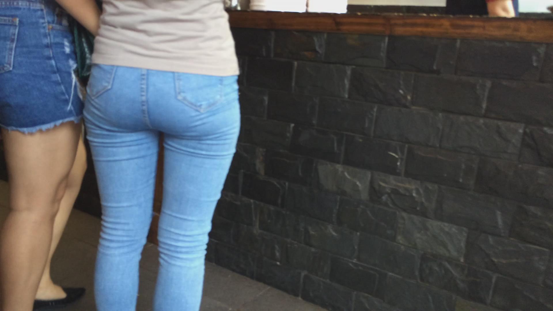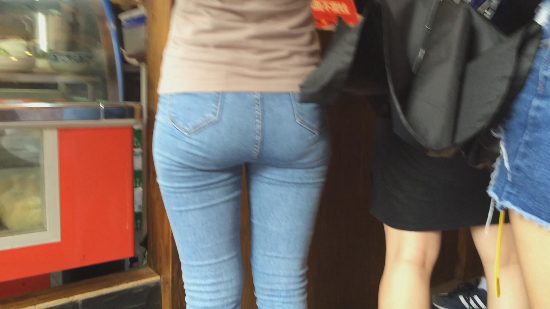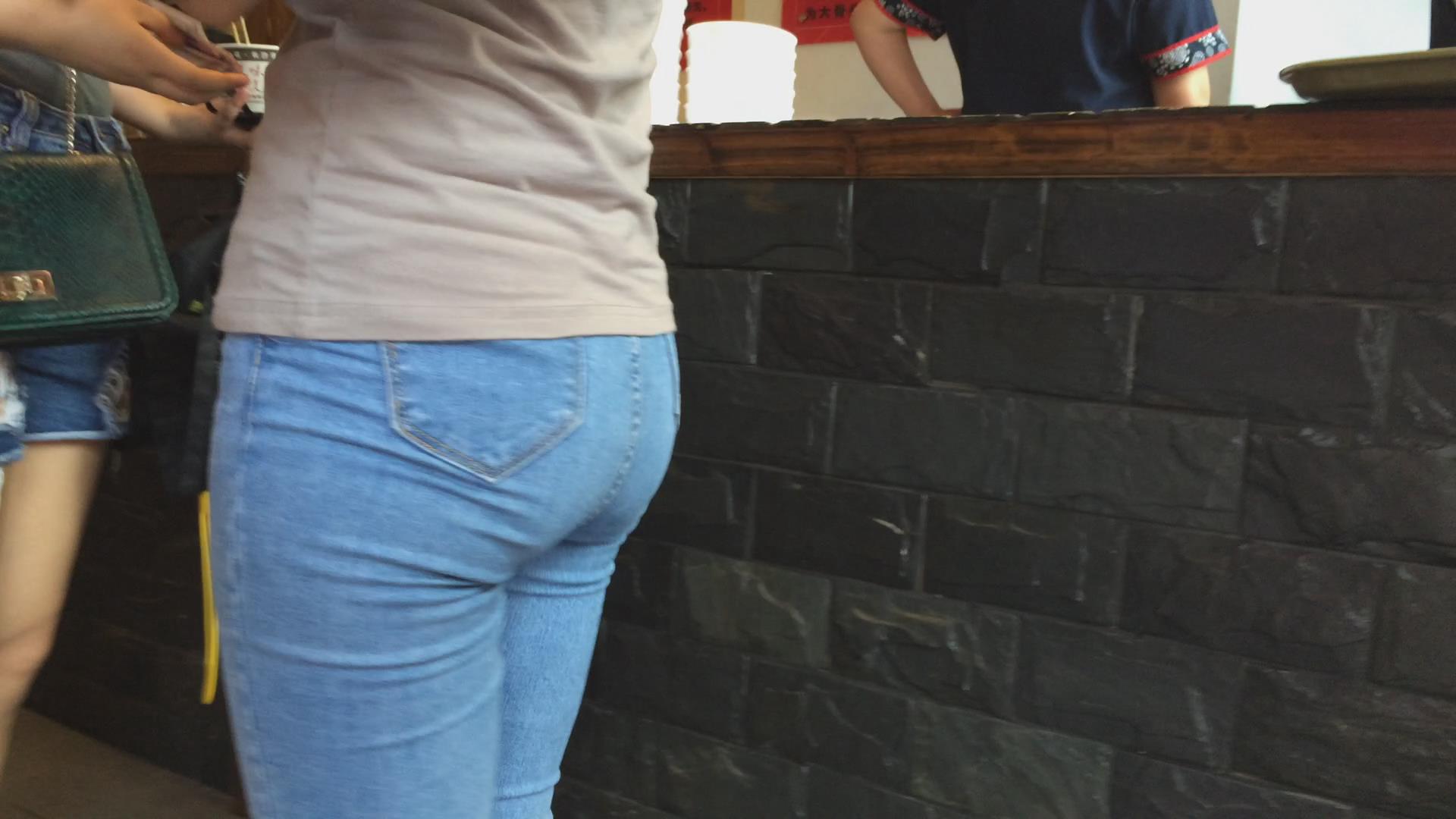 超级紧绷圆臀蓝色牛仔裤清秀美眉 编号5892