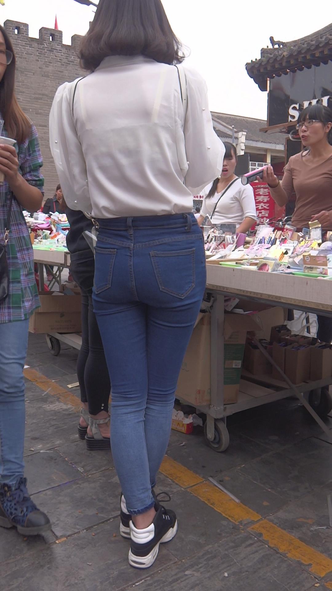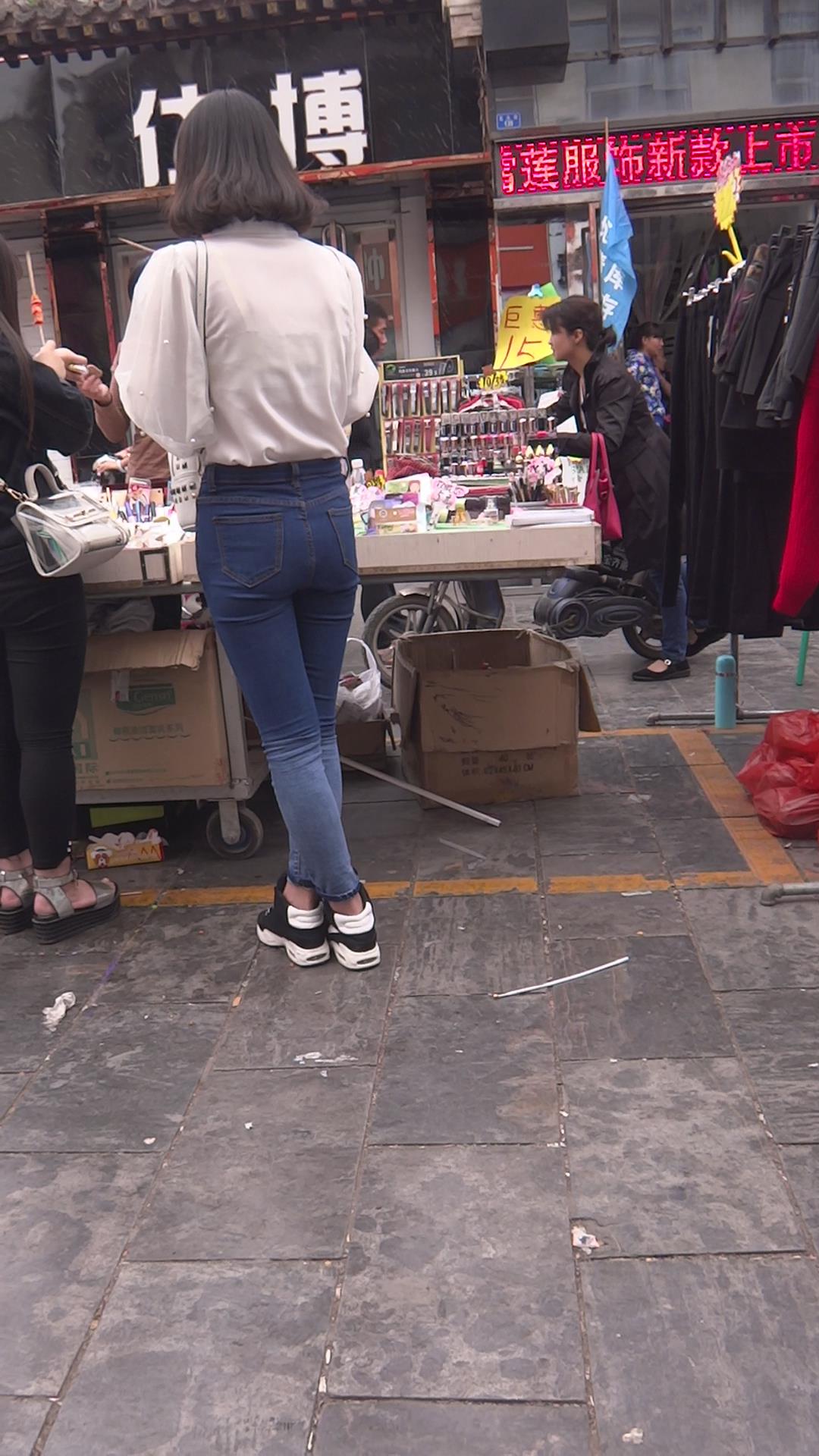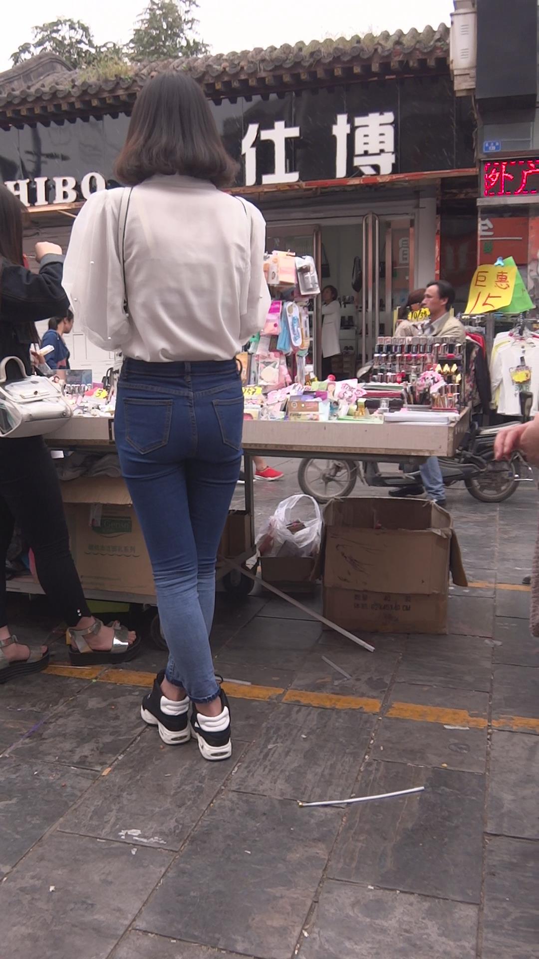 街拍超级紧身蓝色牛仔裤小清新美女 编号5903