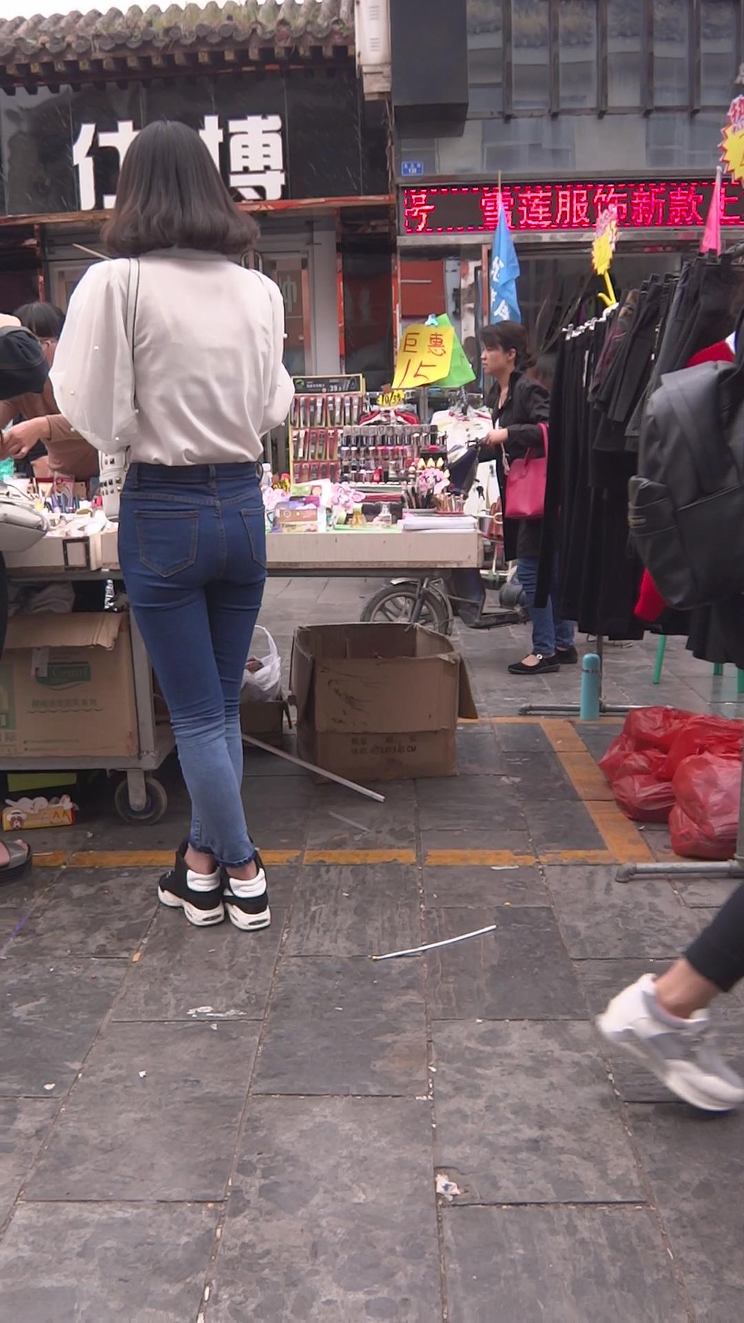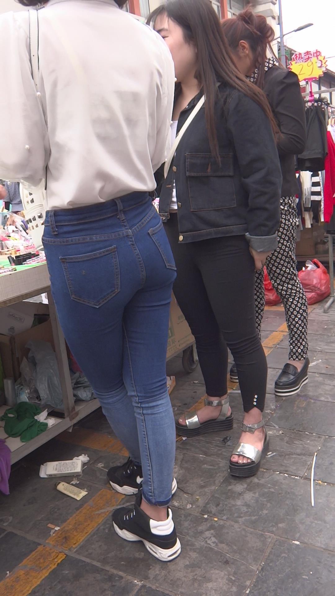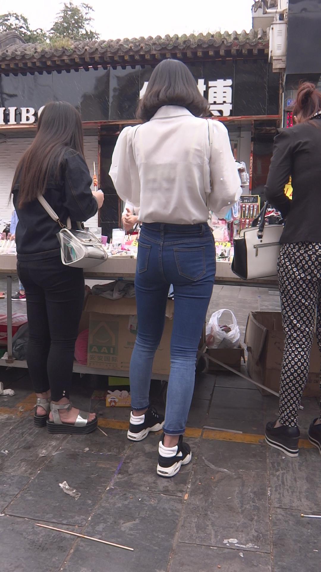 街拍超级紧身蓝色牛仔裤小清新美女 编号5903