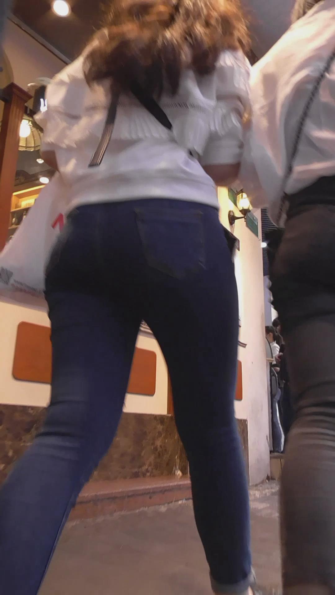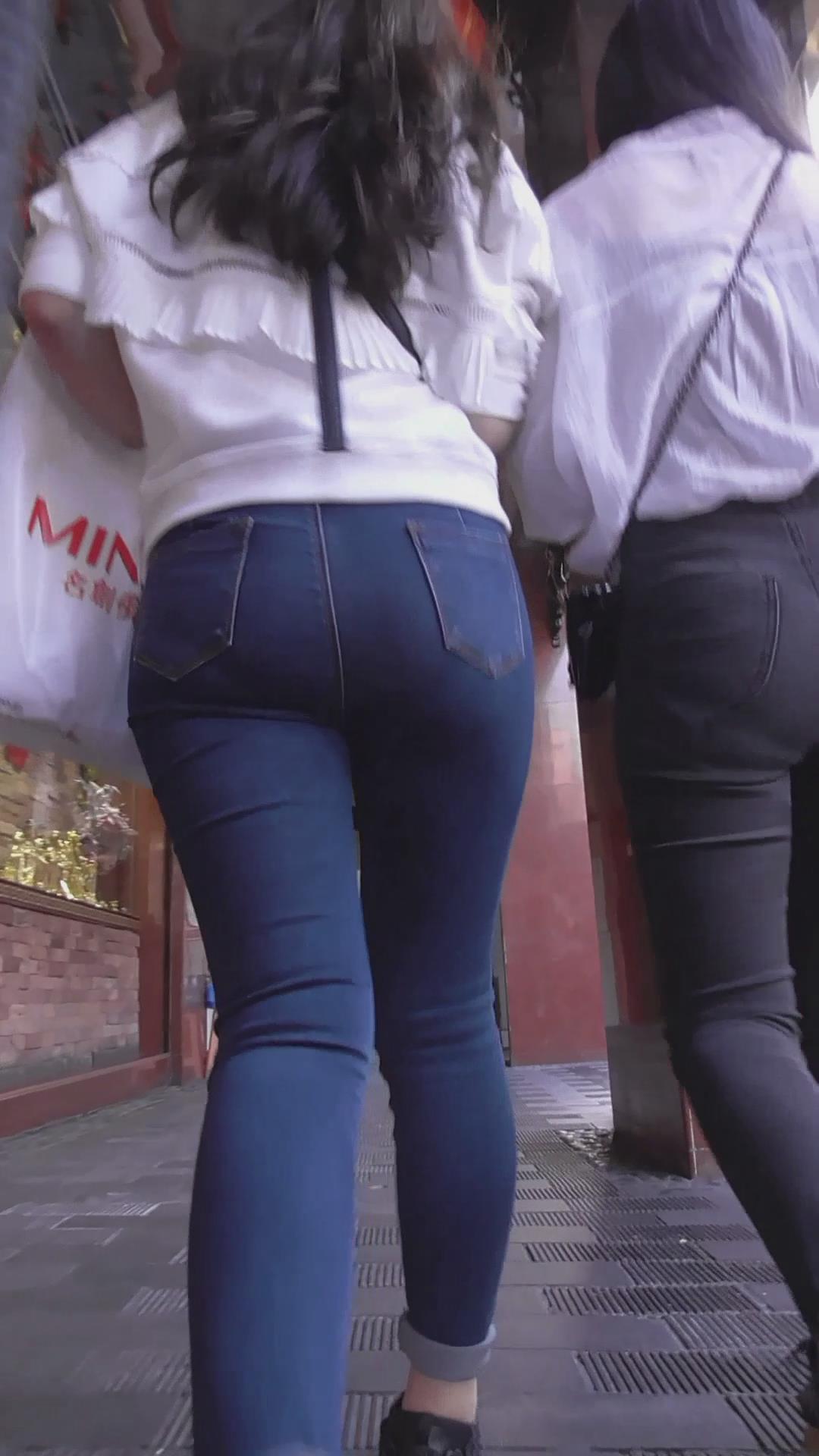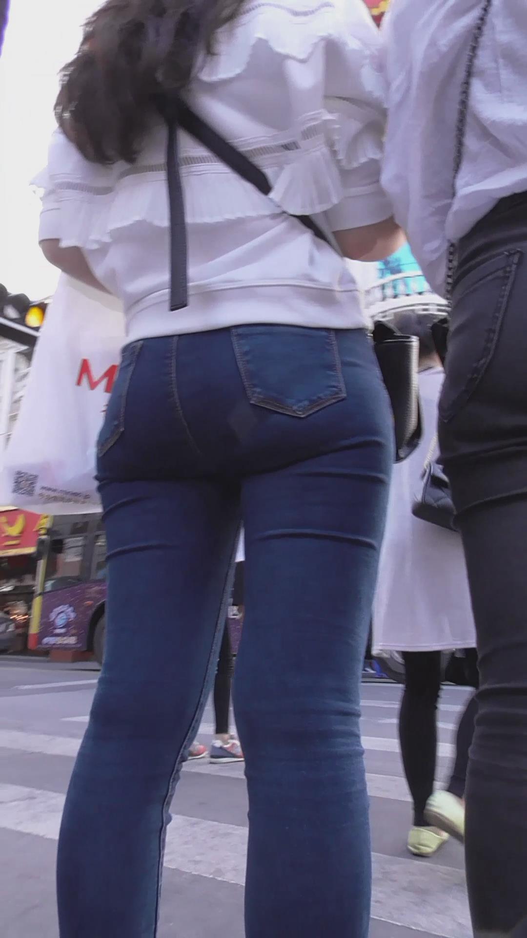 街拍紧身蓝色牛仔裤肉臀美女 编号5913