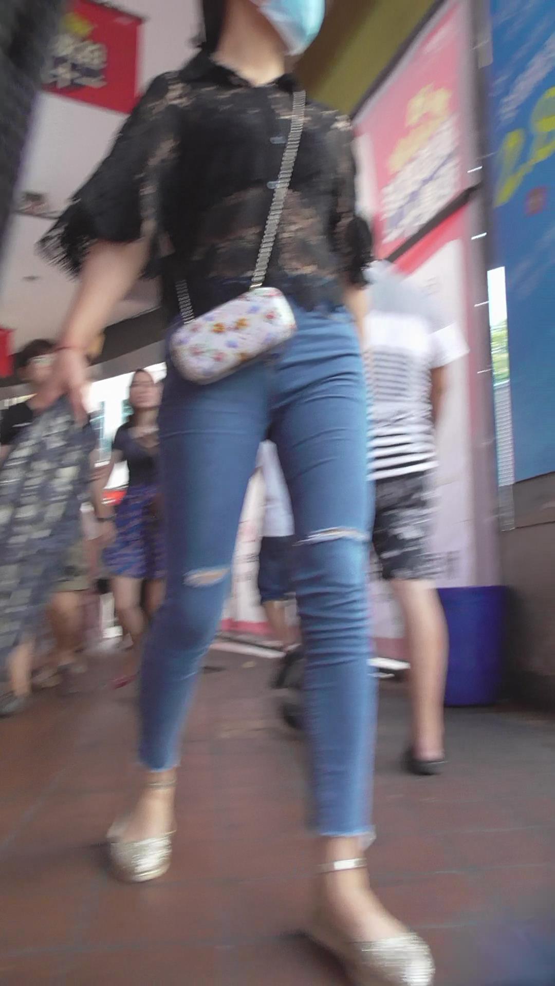街拍美臀性感紧身蓝牛美女 编号5916