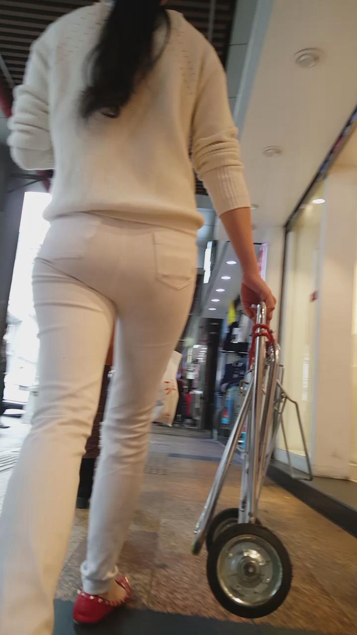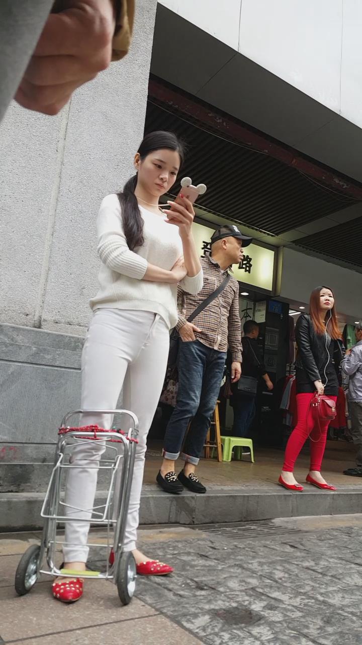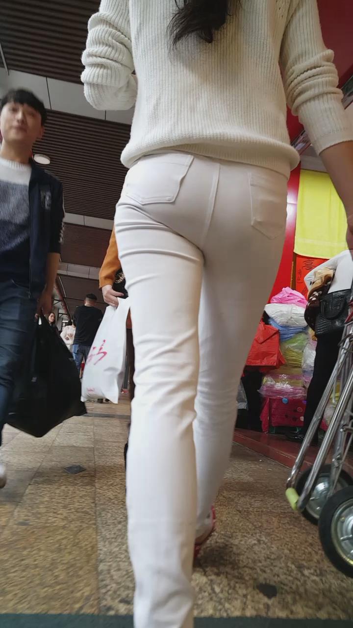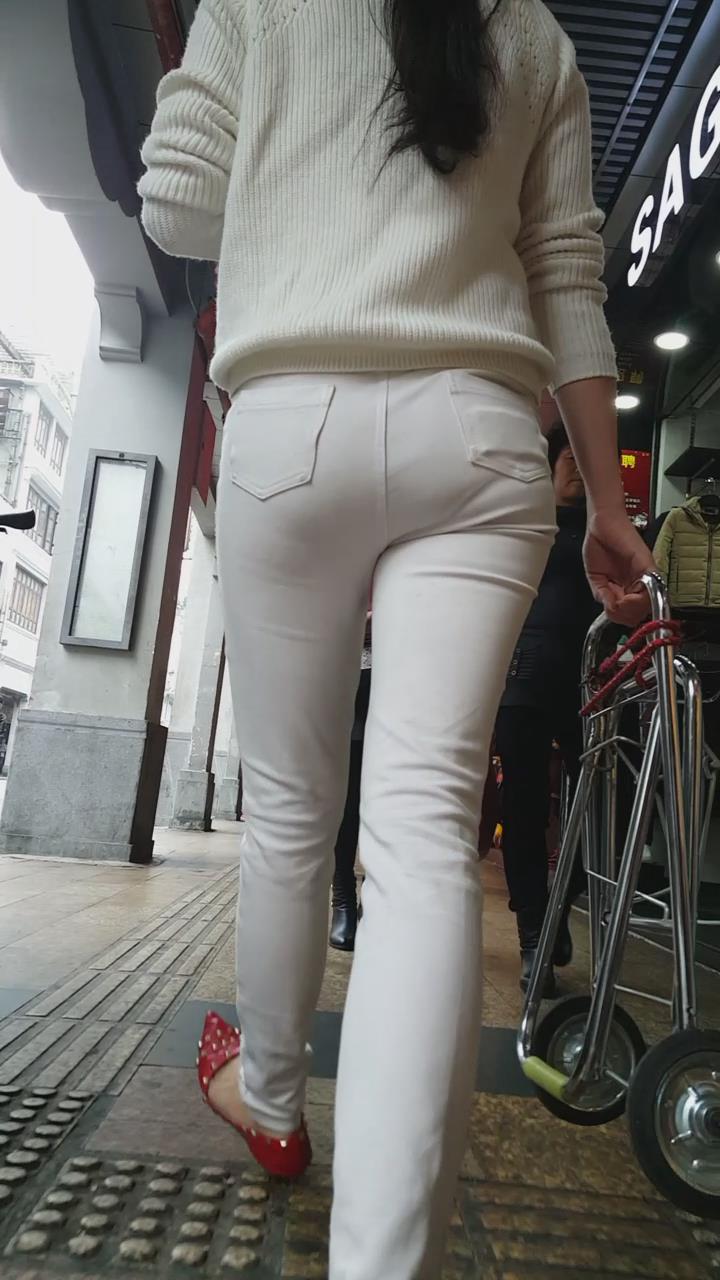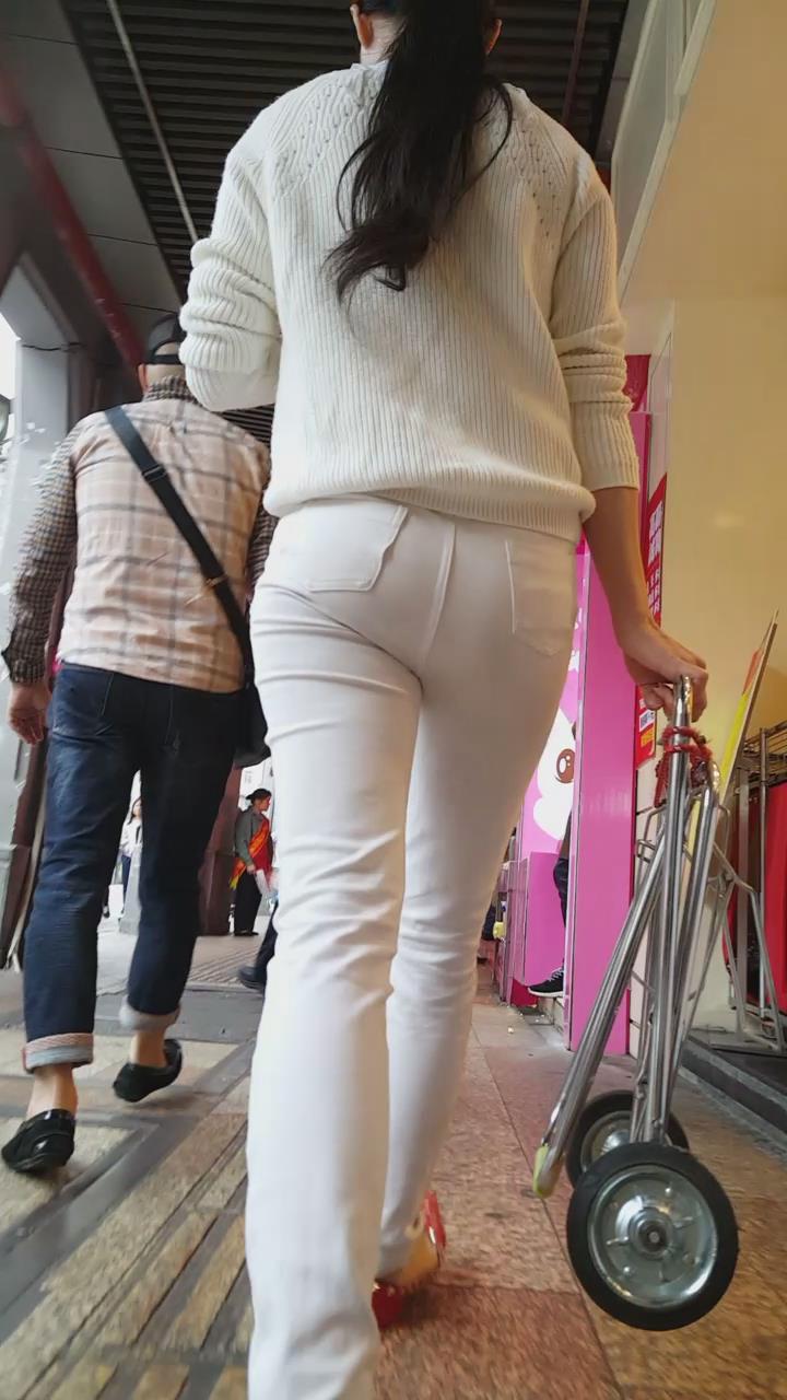 街拍白色紧身牛仔裤美眉 编号5929