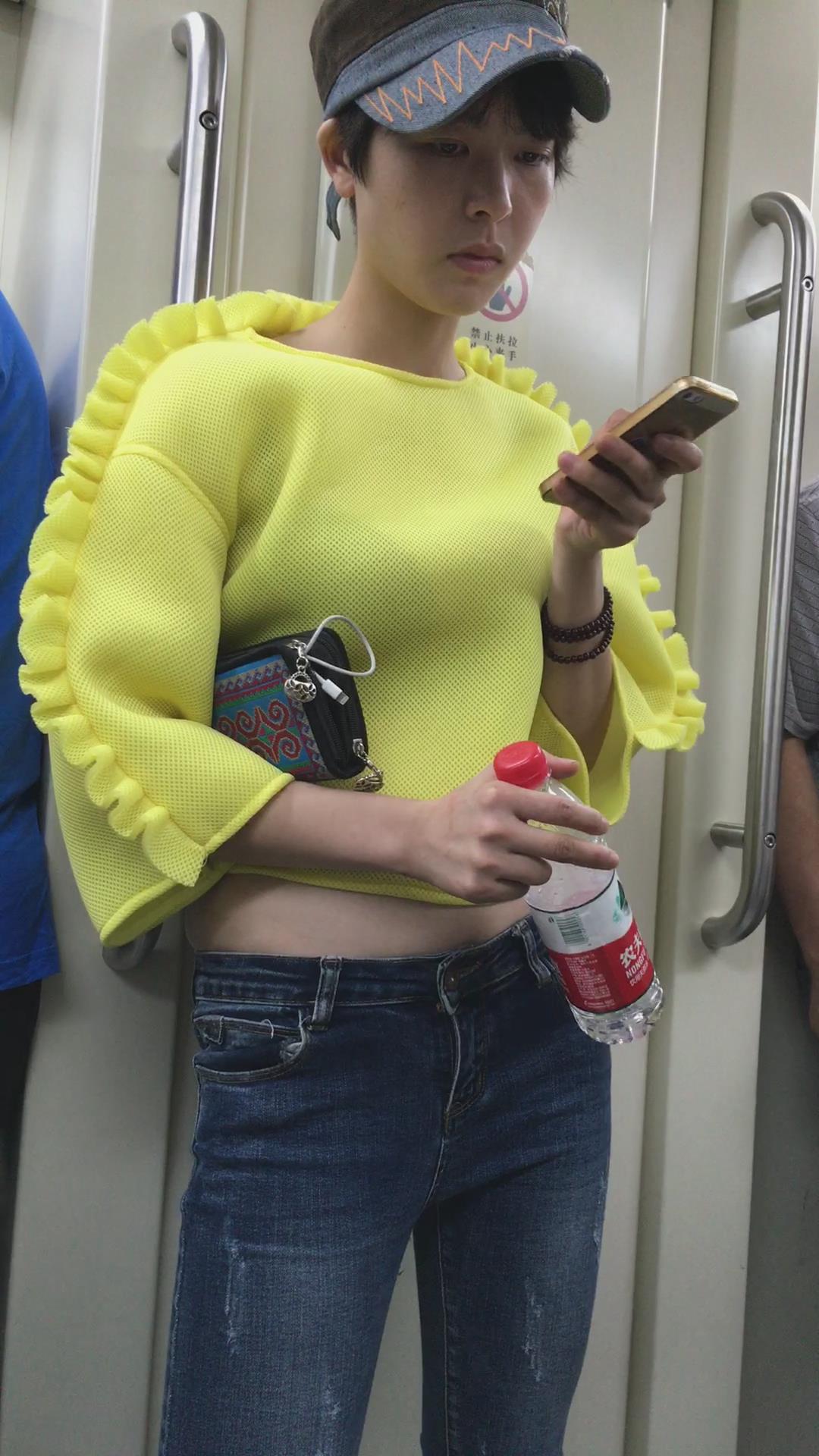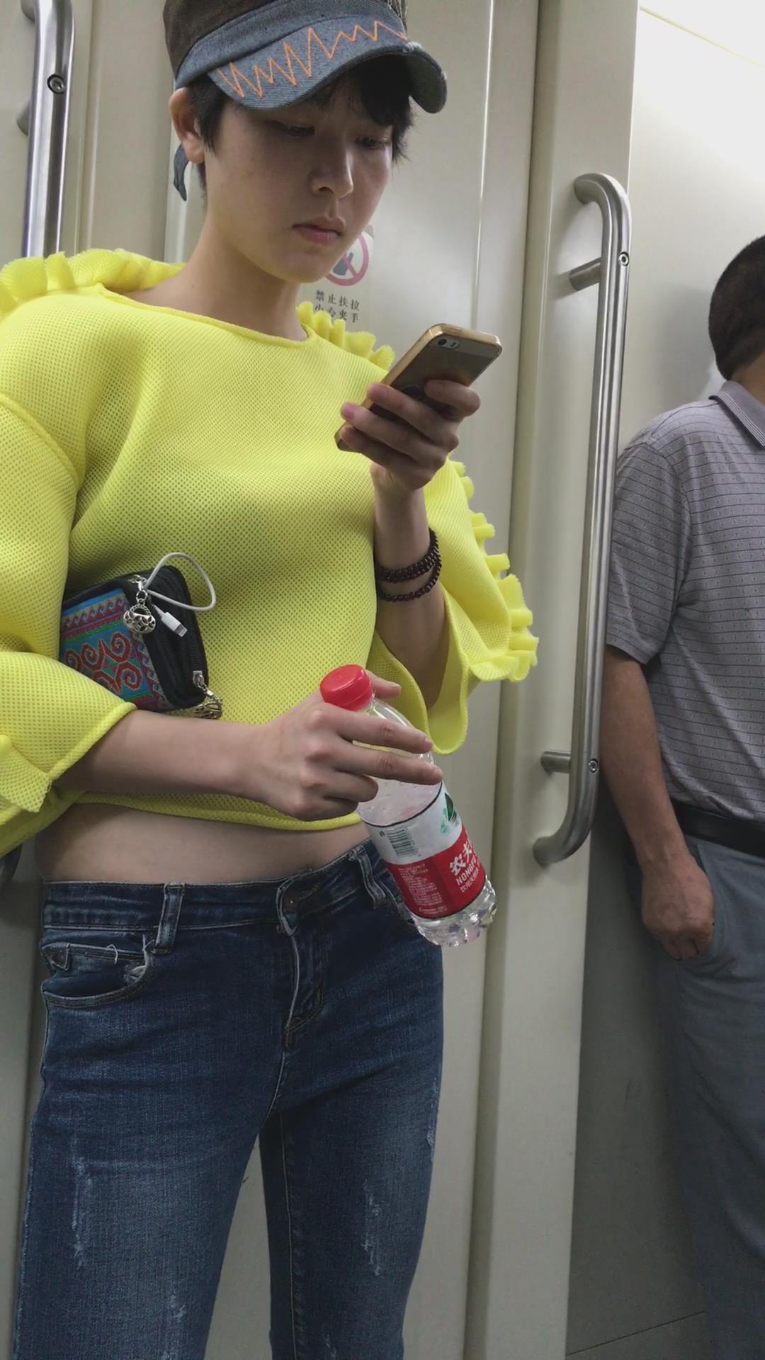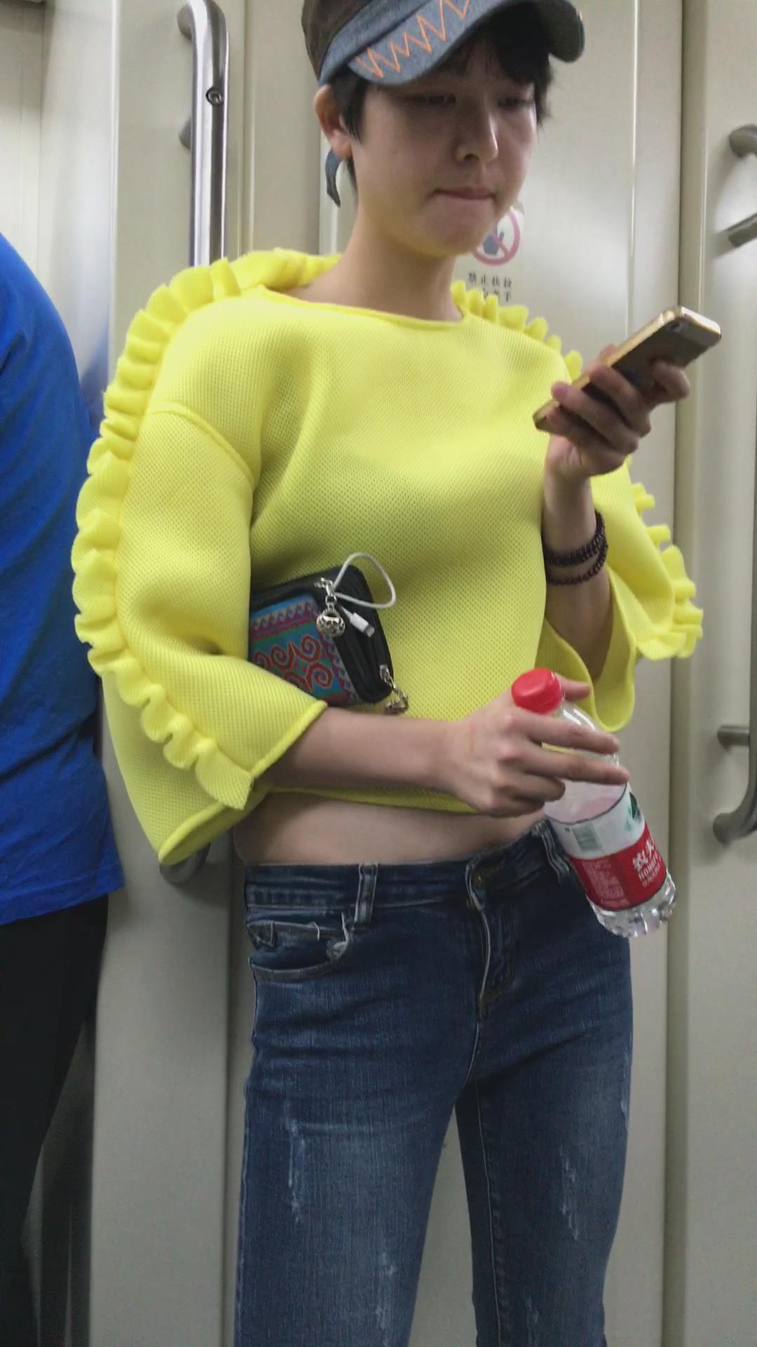 地铁拍摄肉肉小肚腩的蓝牛美女。 编号5933