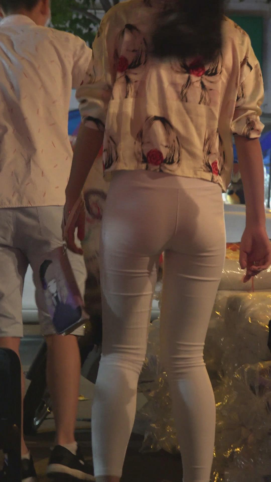 天冷了,白色紧身裤美女买了床被子 编号5935