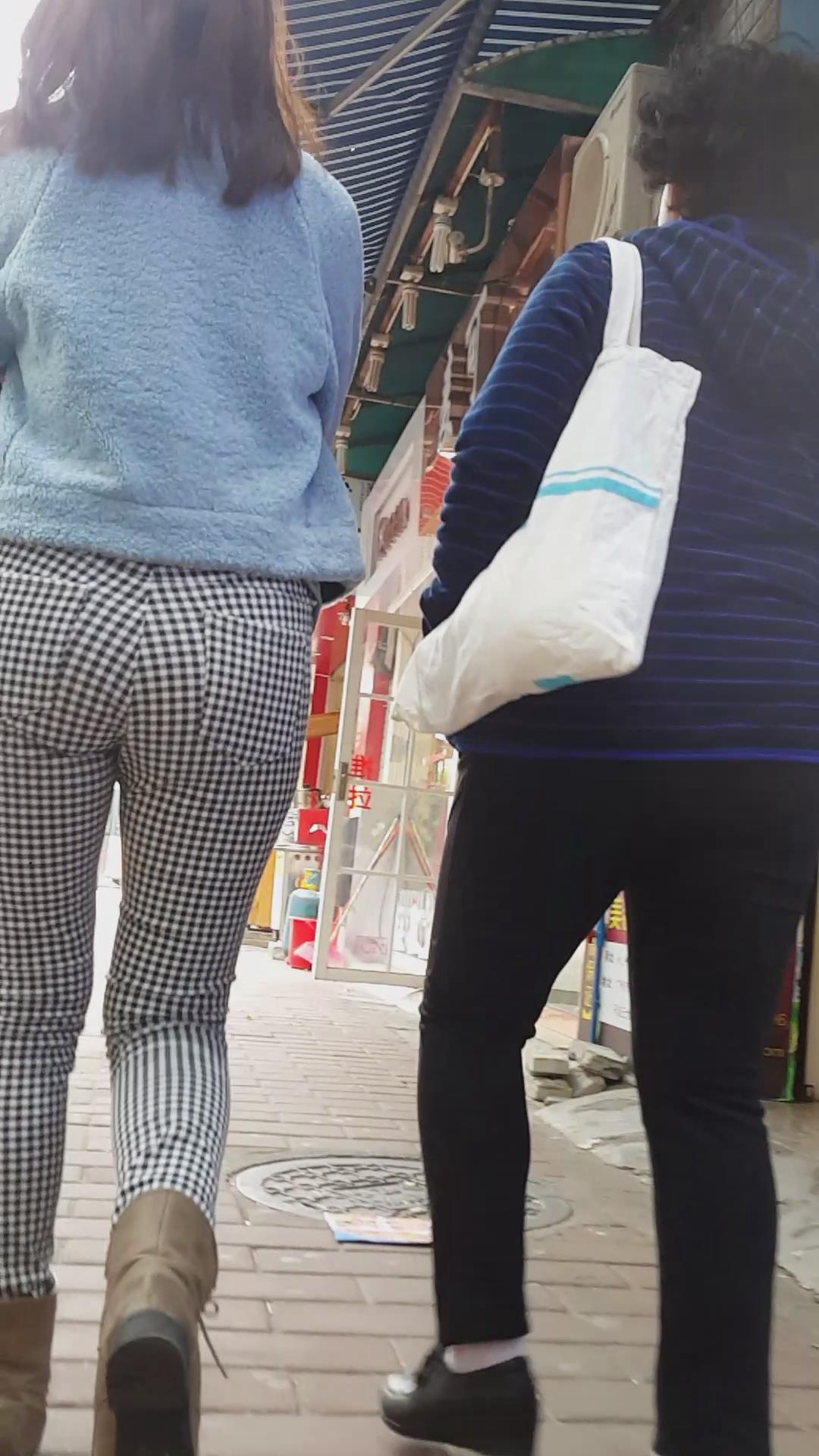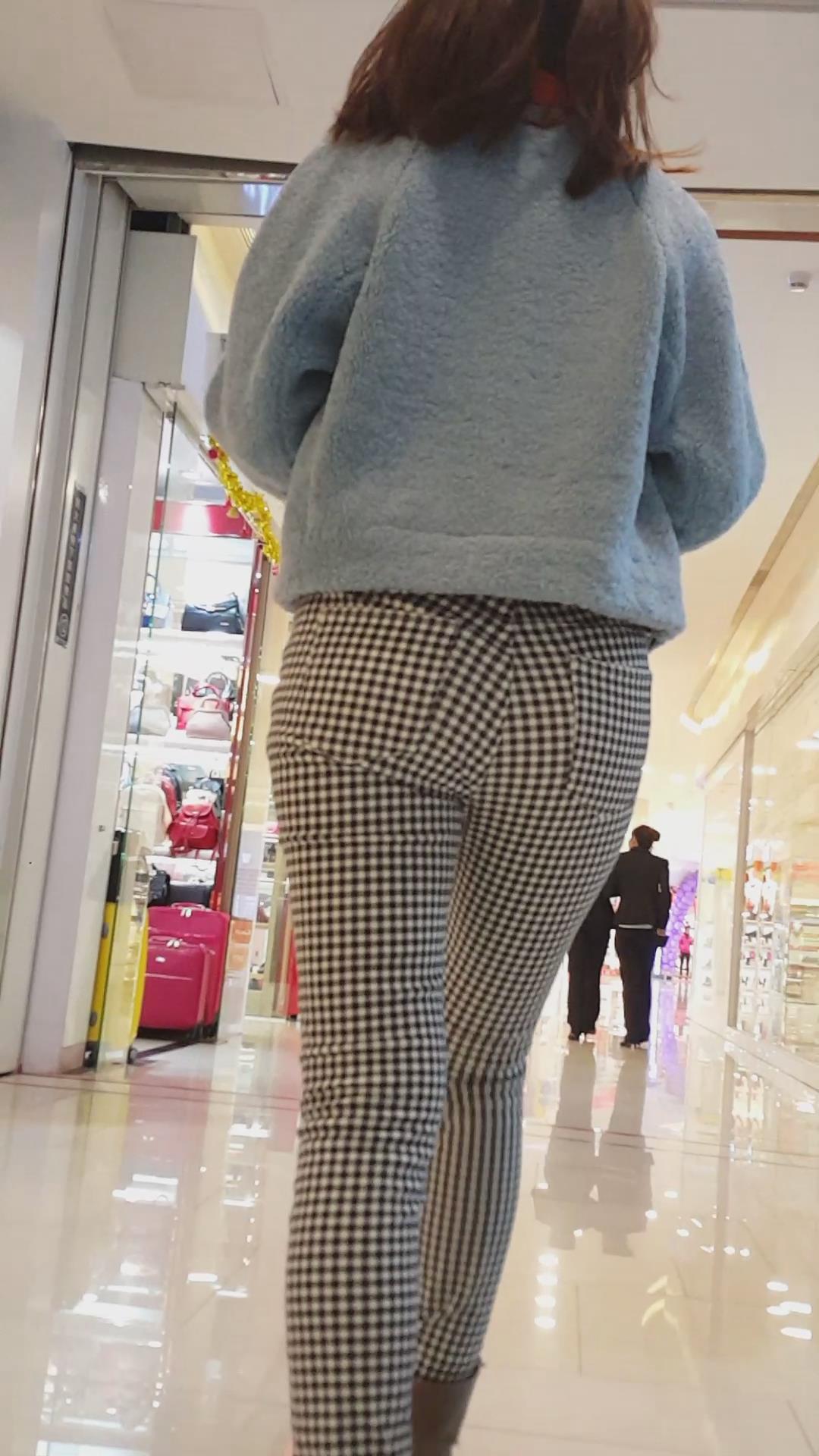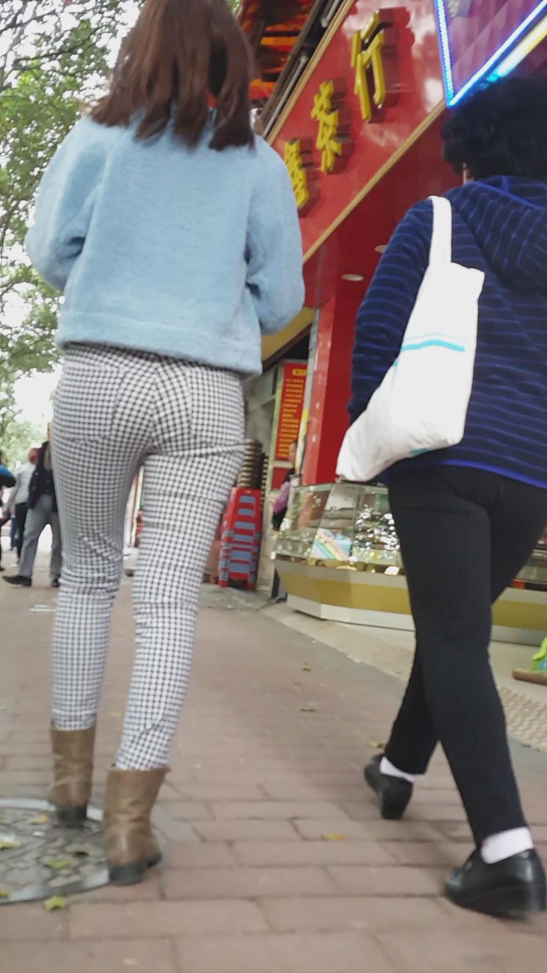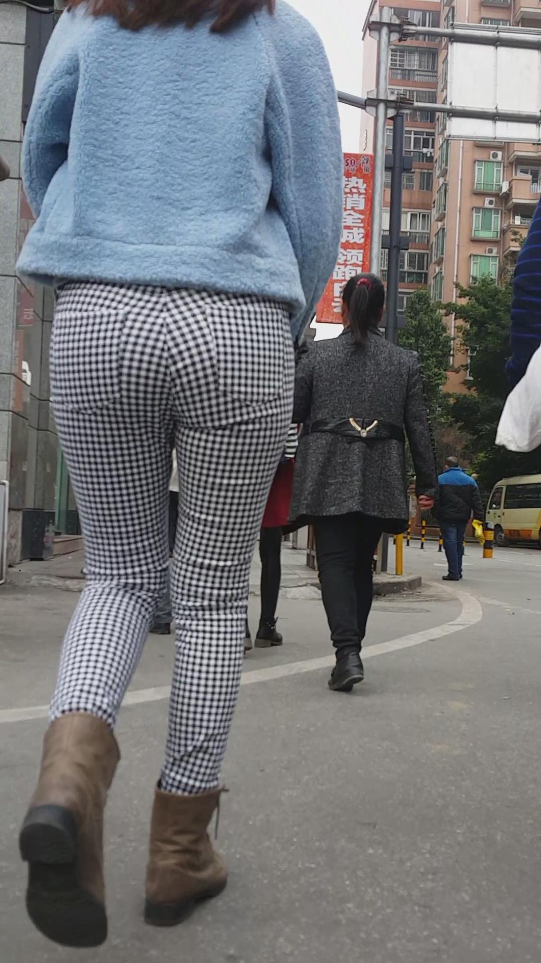街拍格子紧身裤美腿美女 编号5947