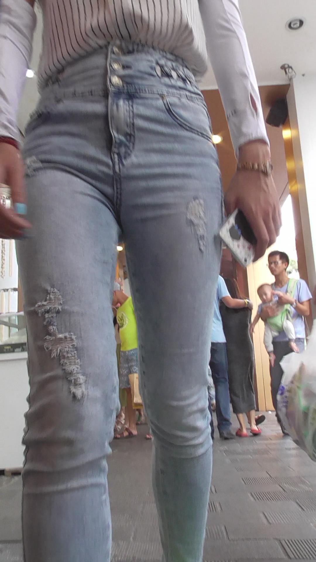 街拍紧身蓝牛美臀美女 编号5959