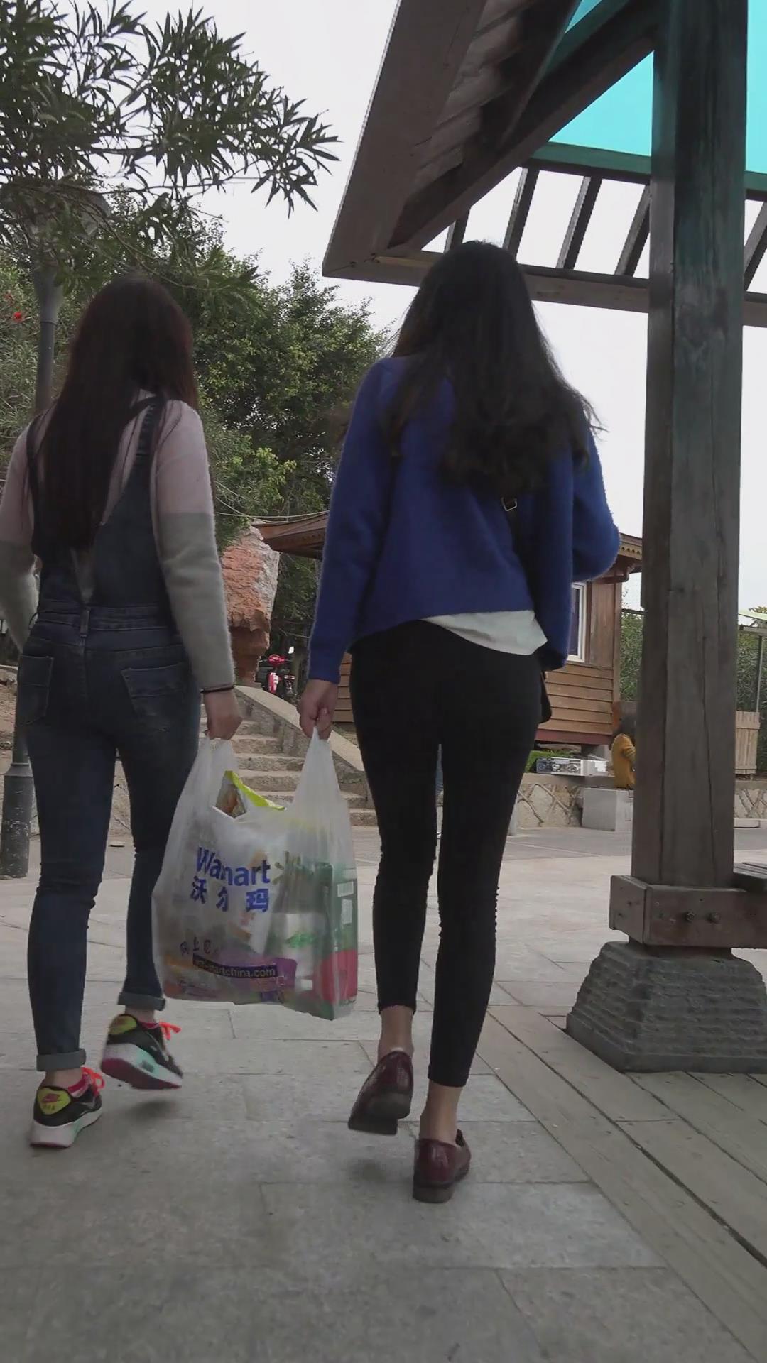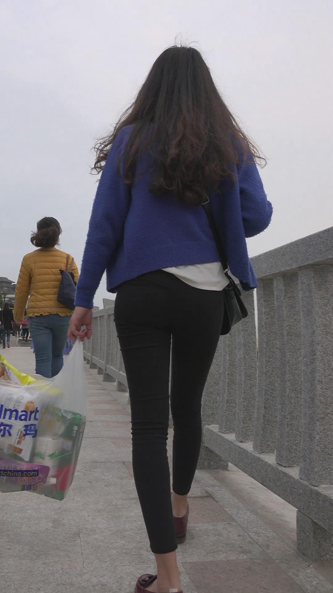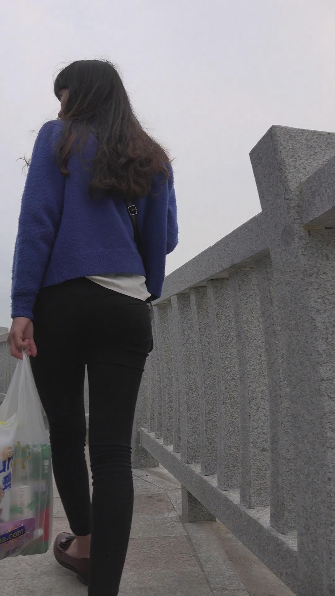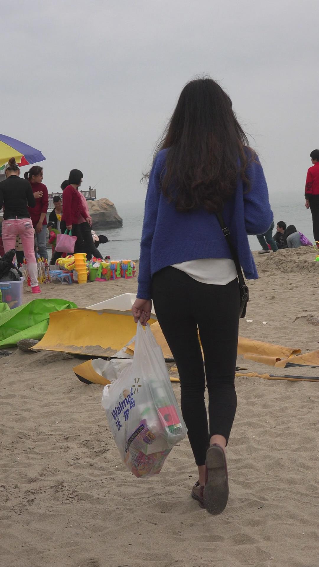 街拍海边玩耍的紧身黑牛美女 编号5960