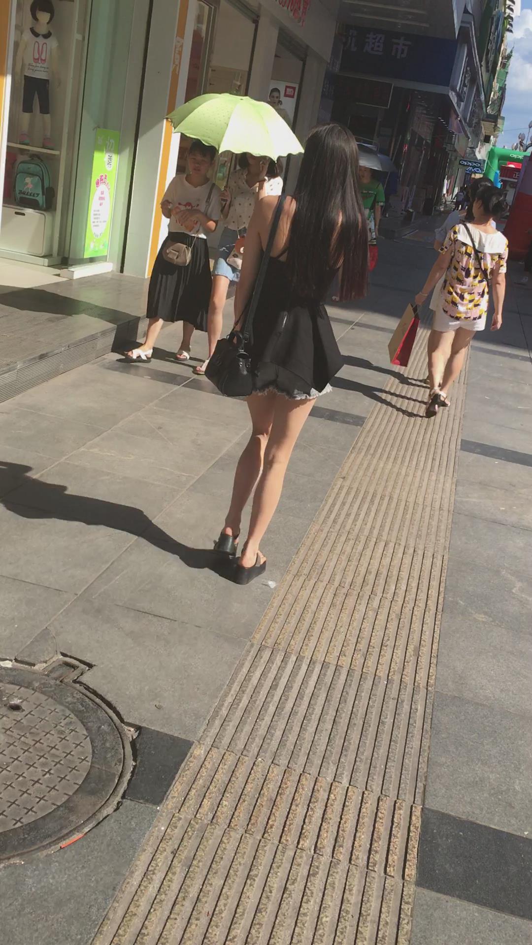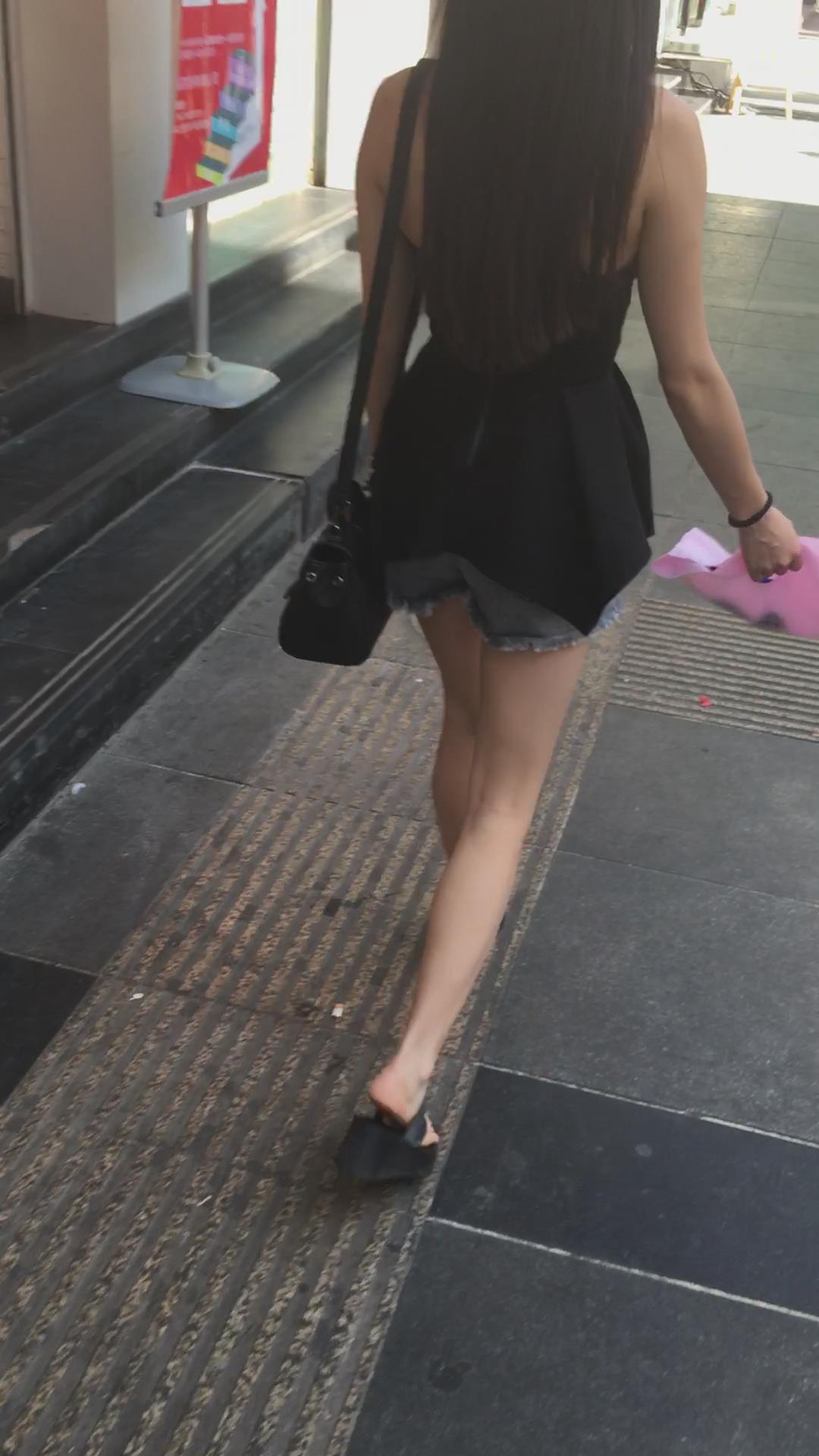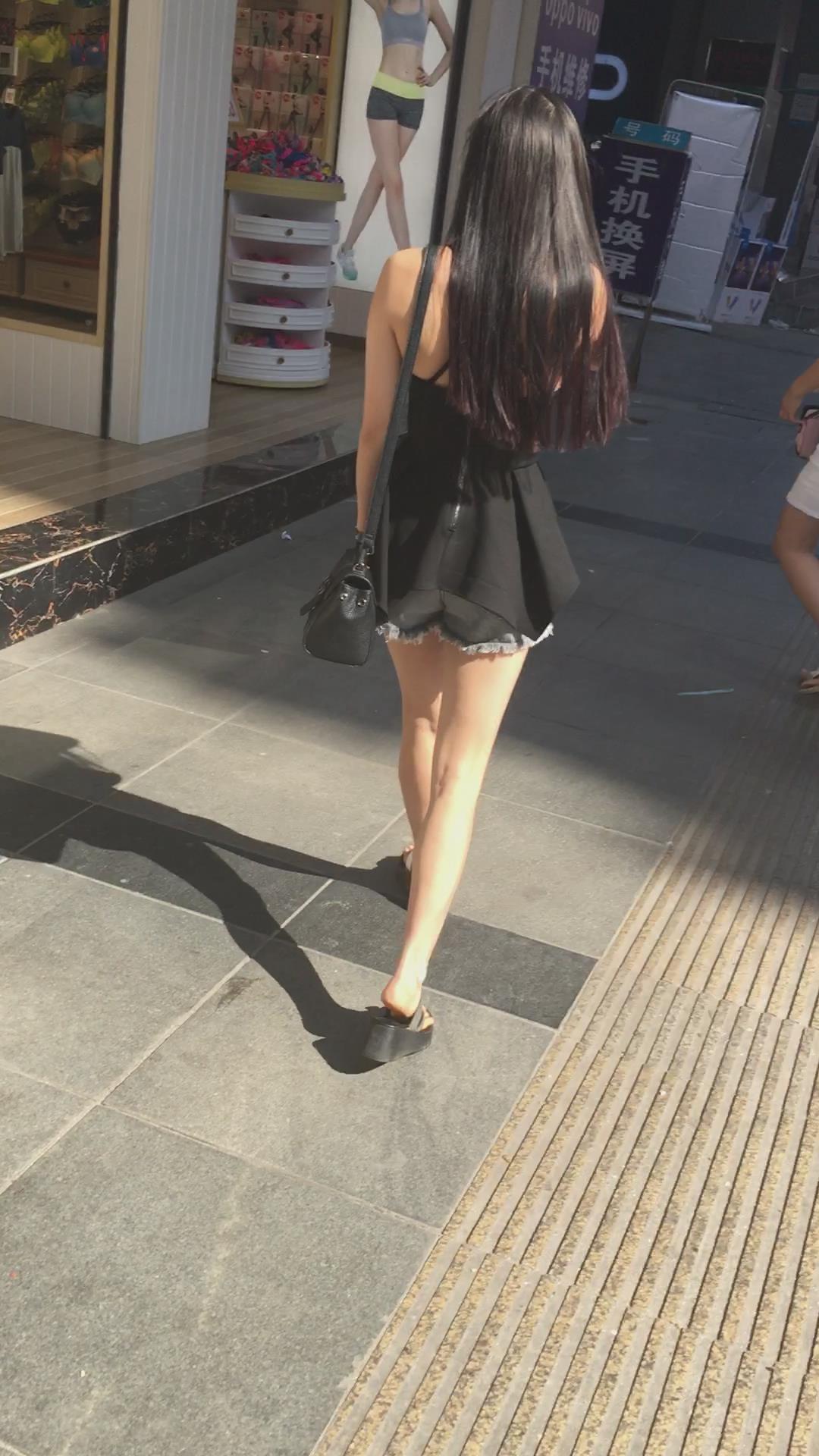 苗条好身材超短热裤吊带衫街拍美女小姐姐 编号4494
