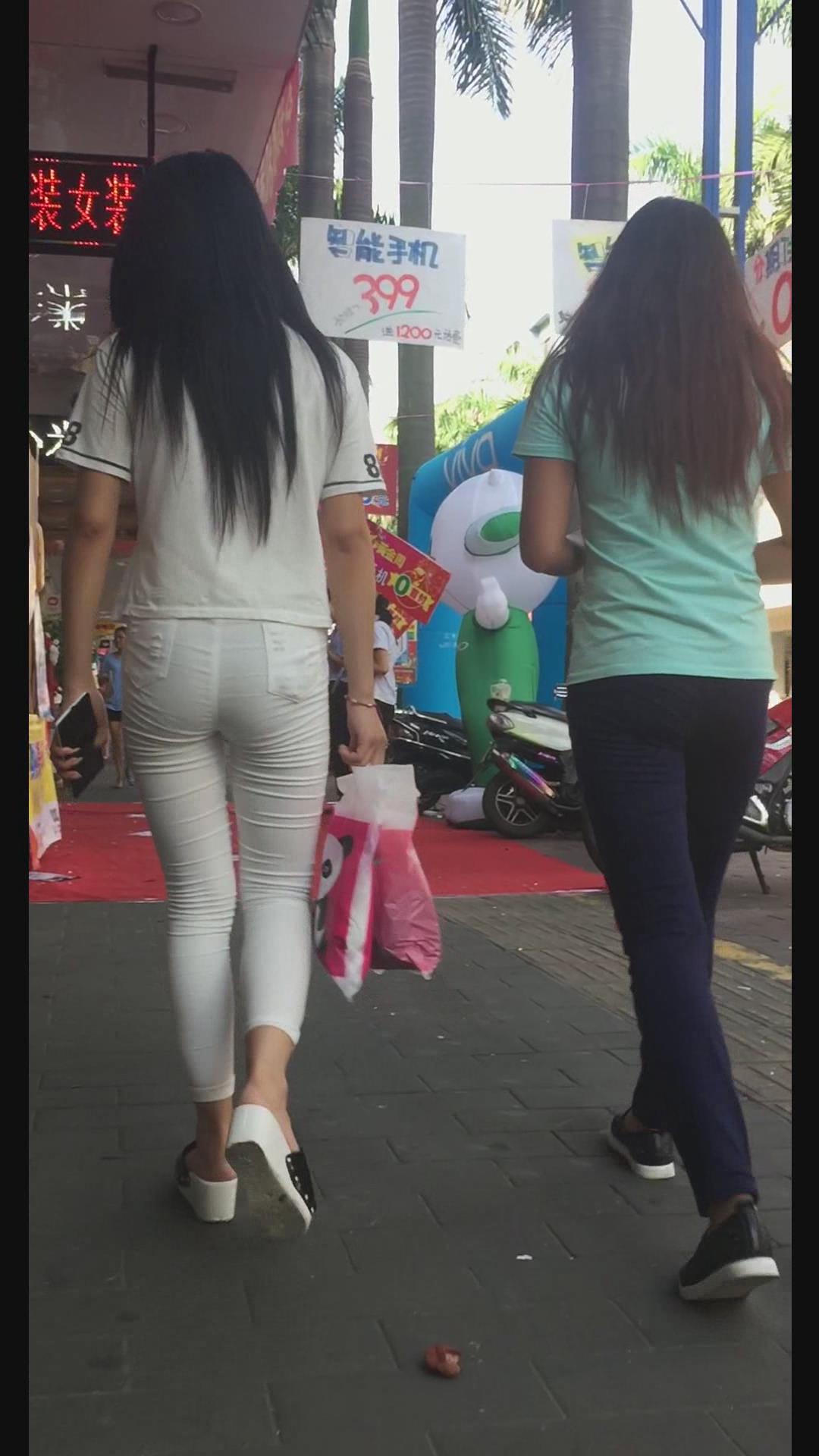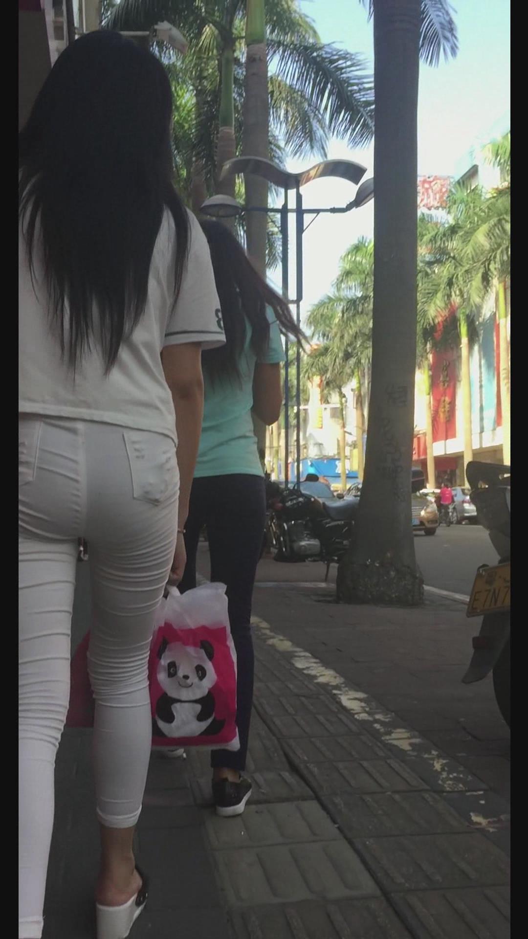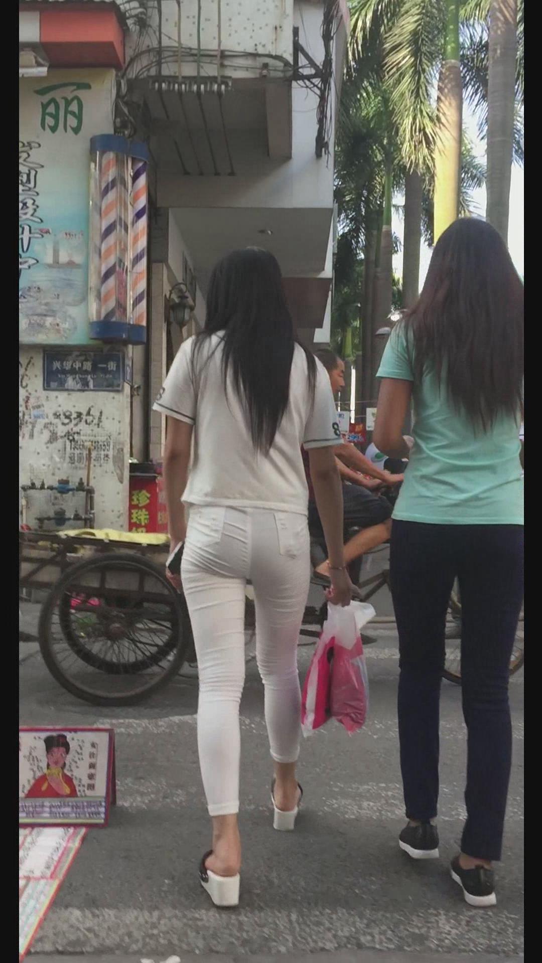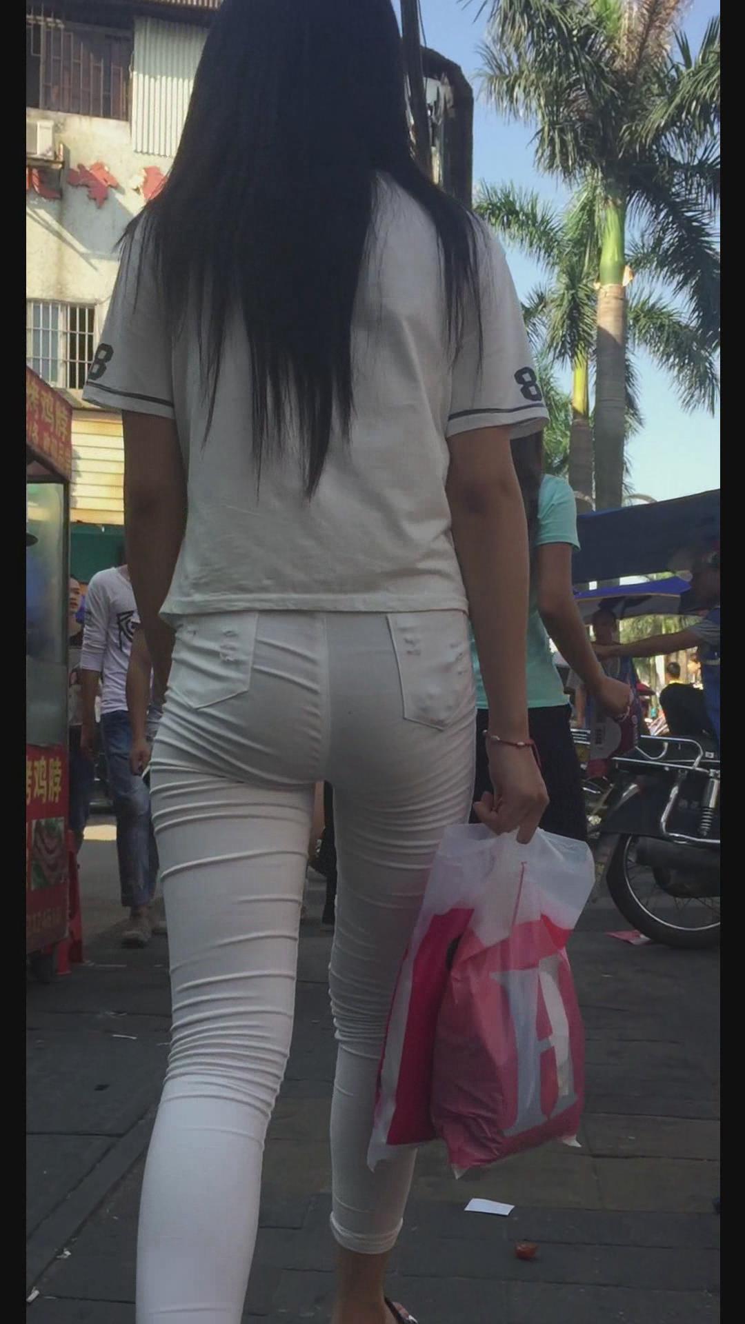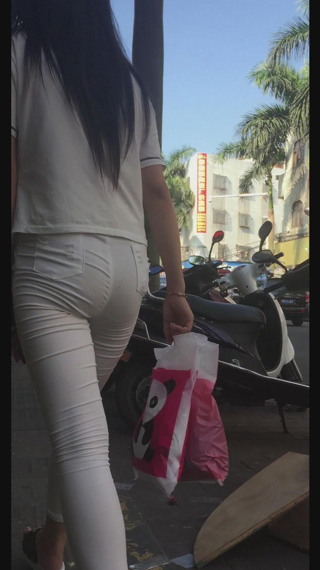 街拍白色紧身裤美臀漂亮美女。 编号5999
