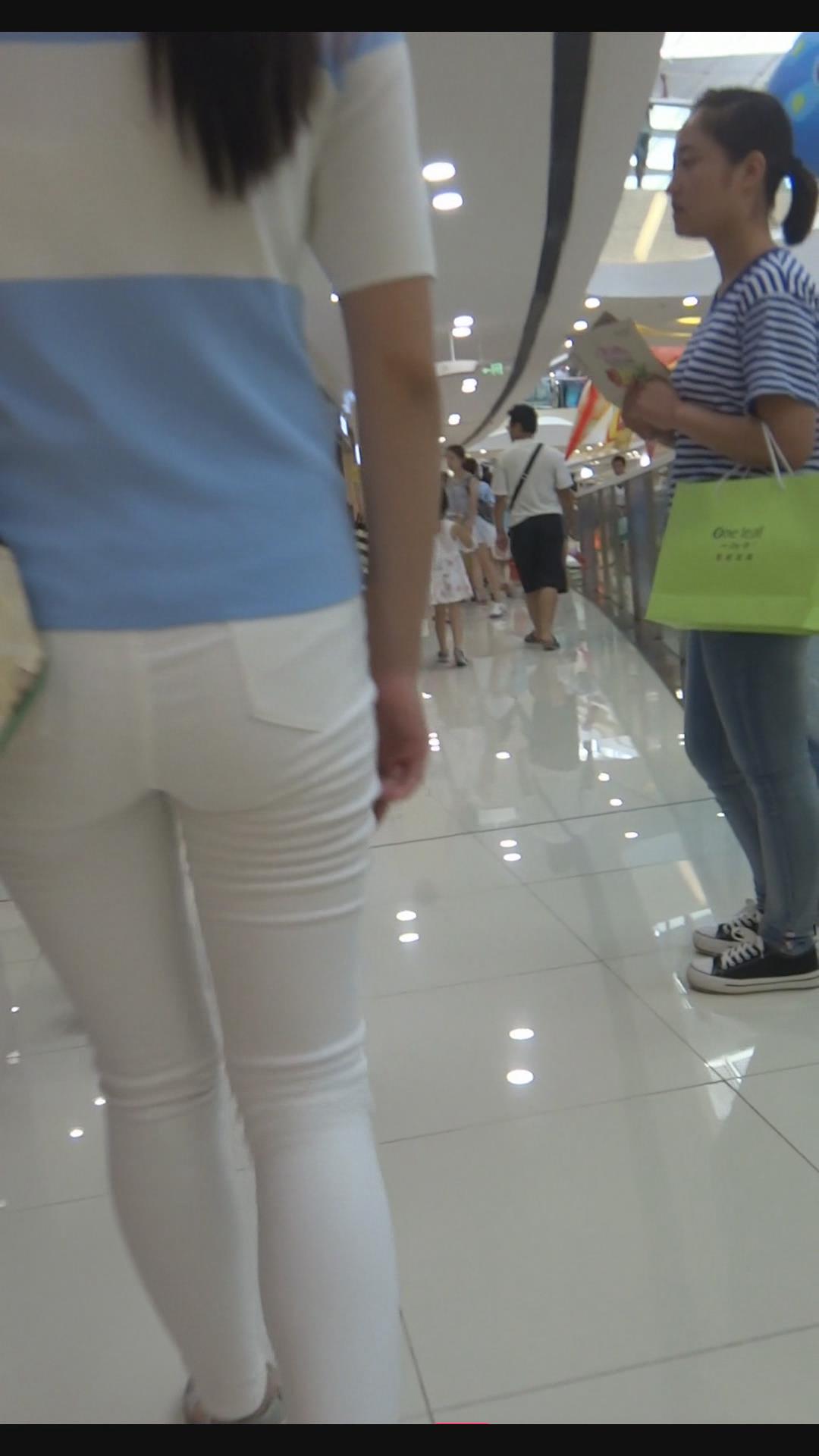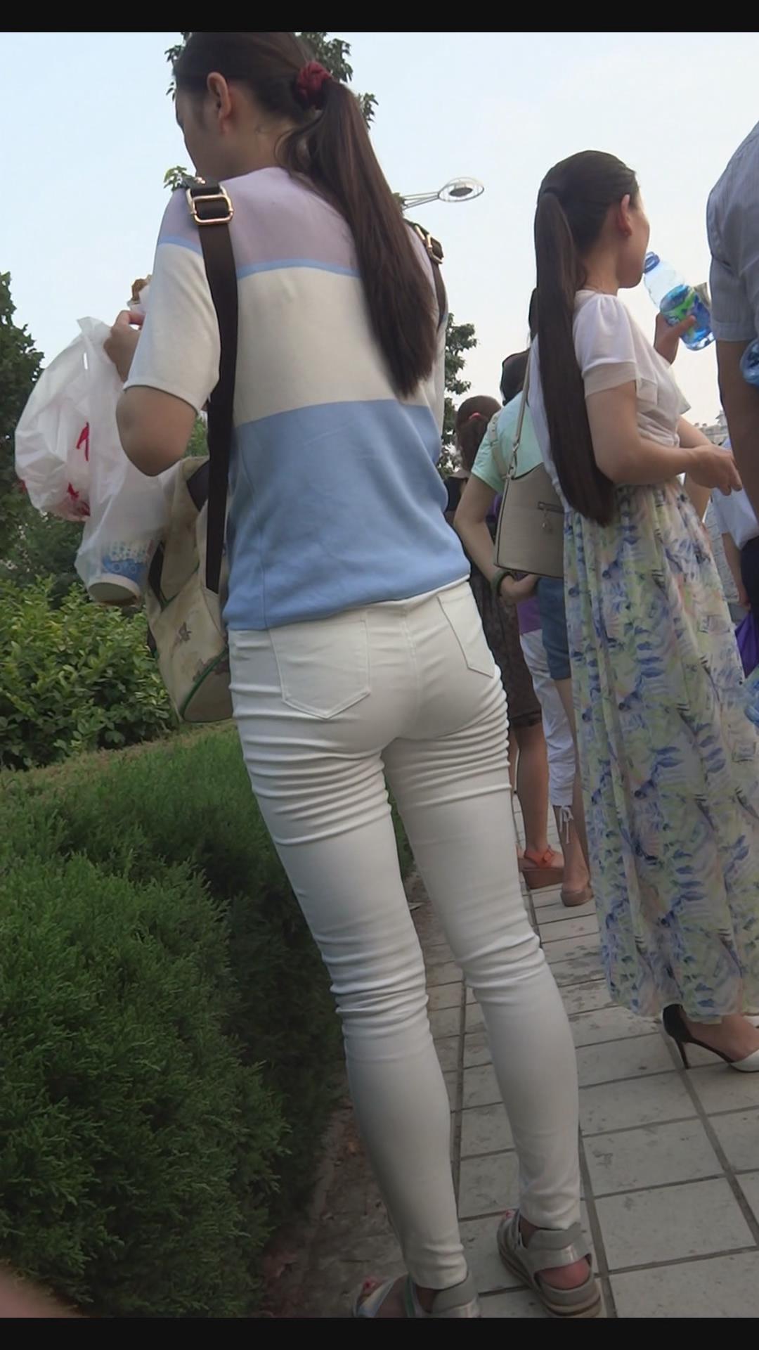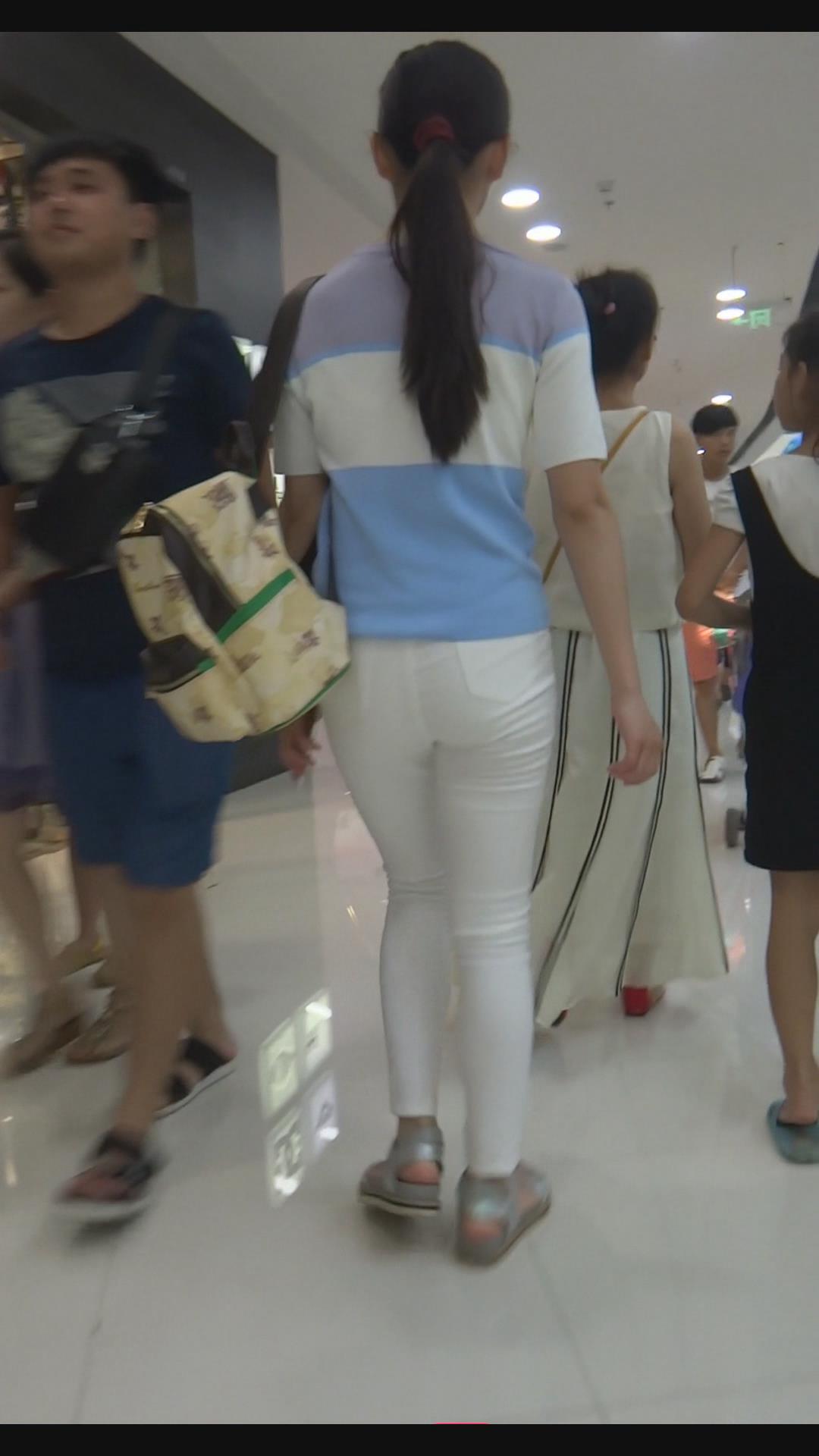 街拍紧身白裤青春美女。 编号6003