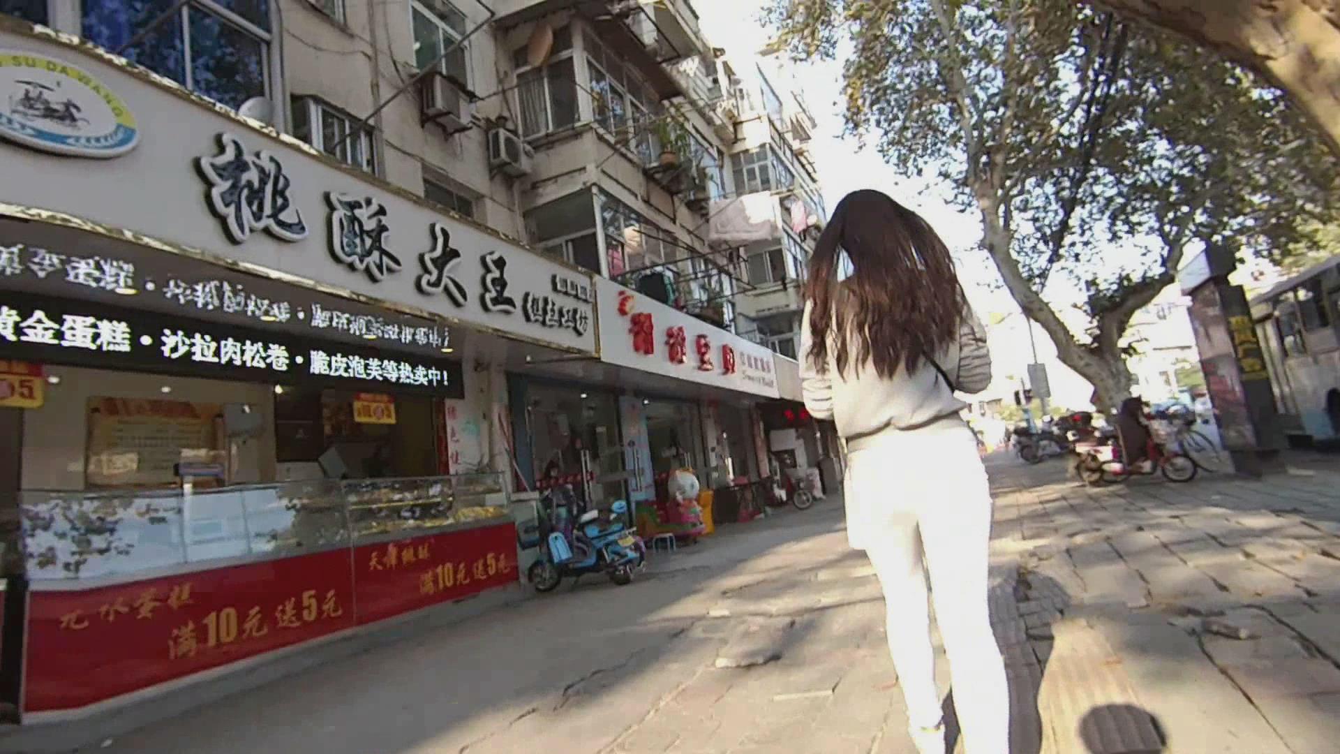 街拍紧身白裤土老妹 编号6014