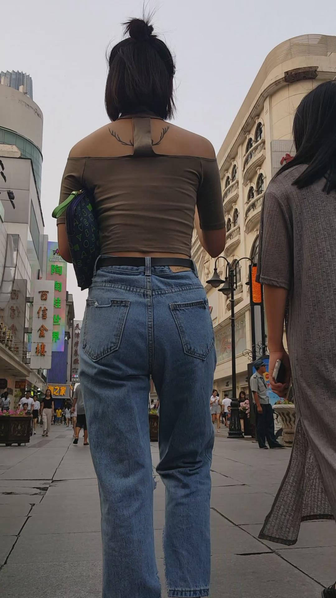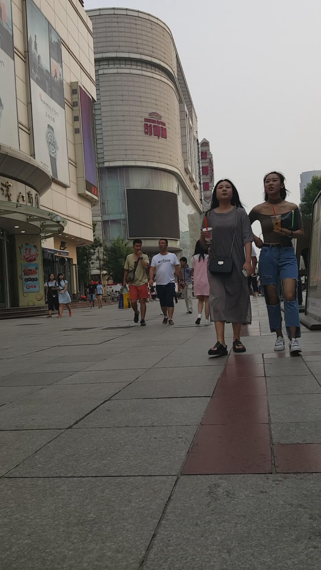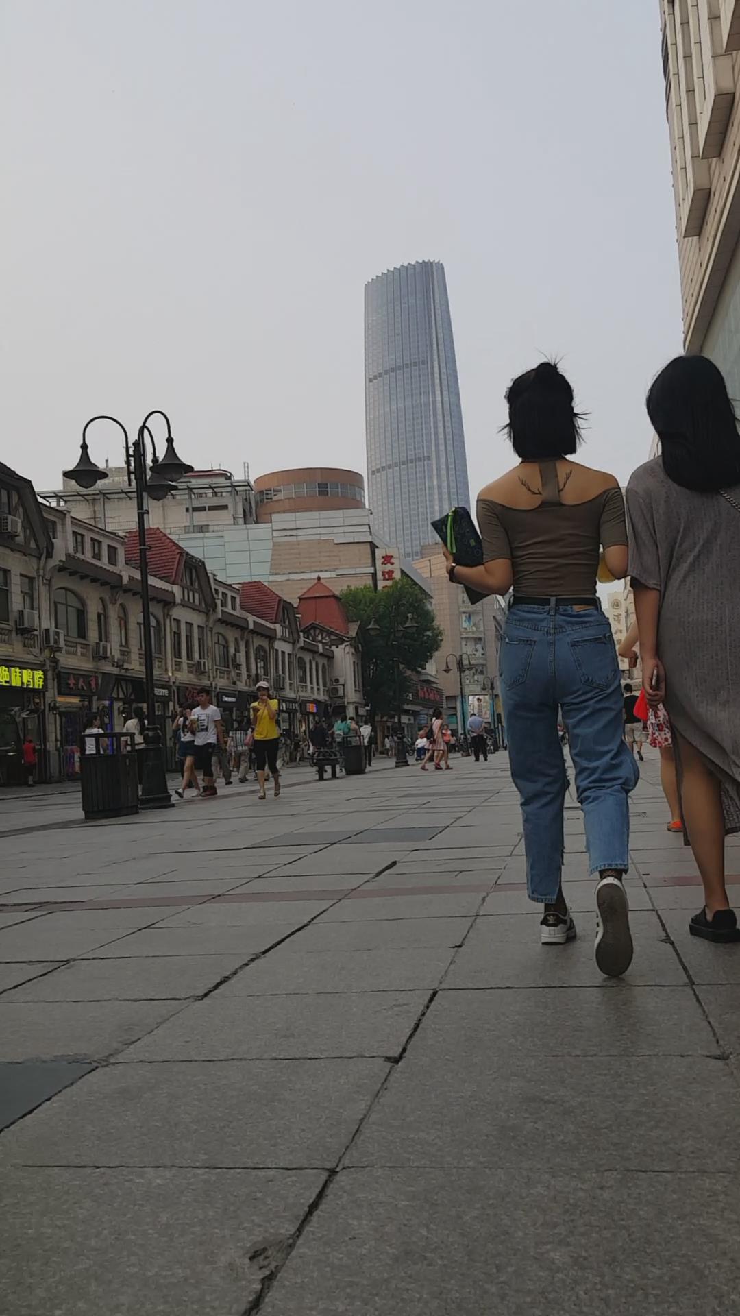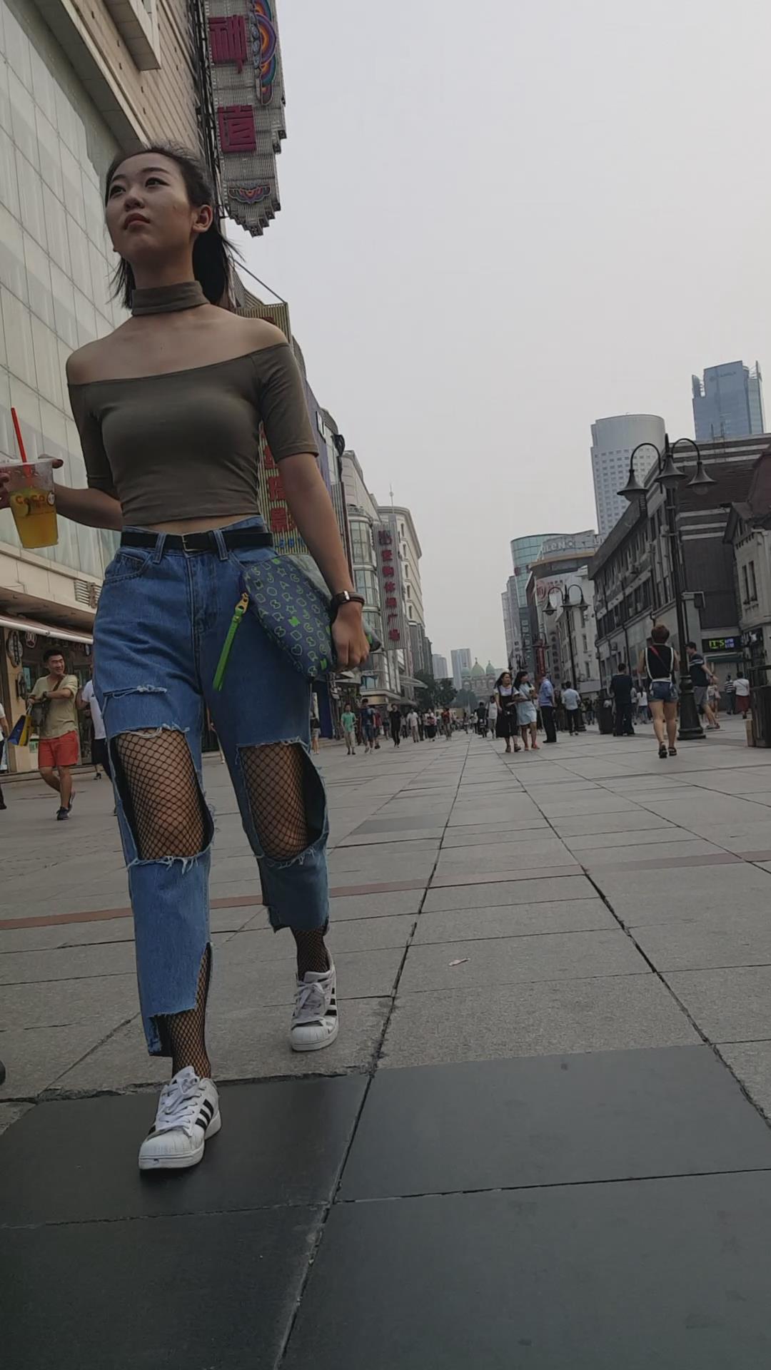 街拍丰满甜美破洞牛仔裤两闺蜜。 编号6015