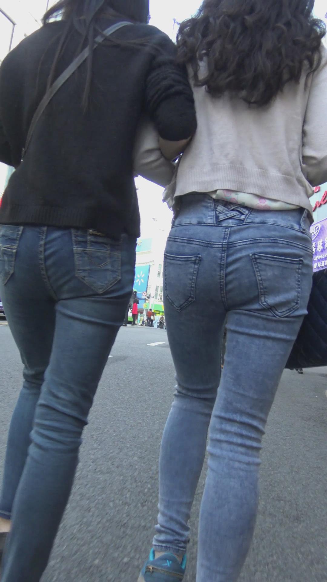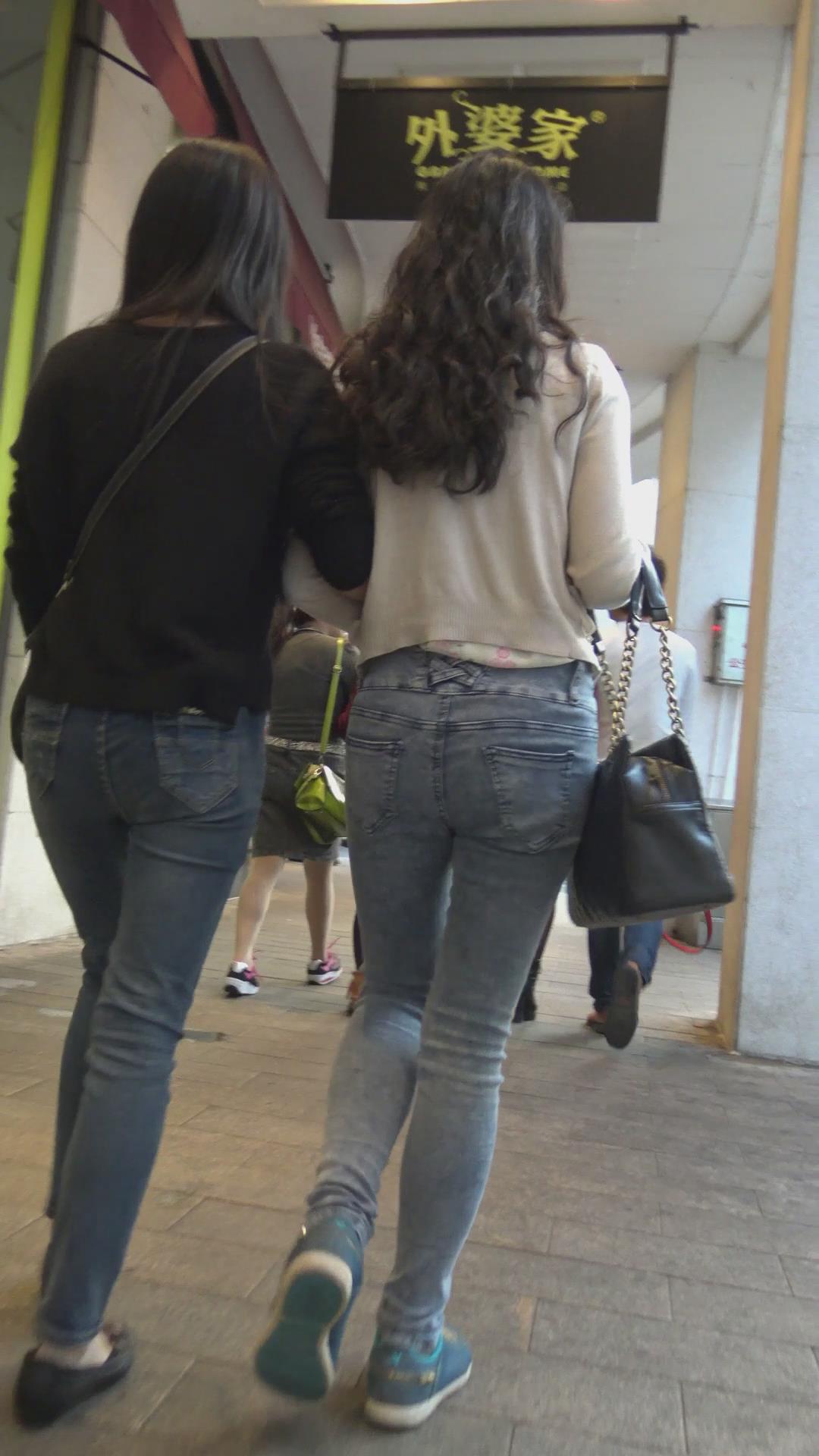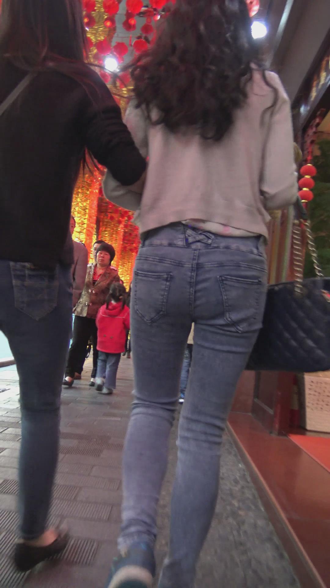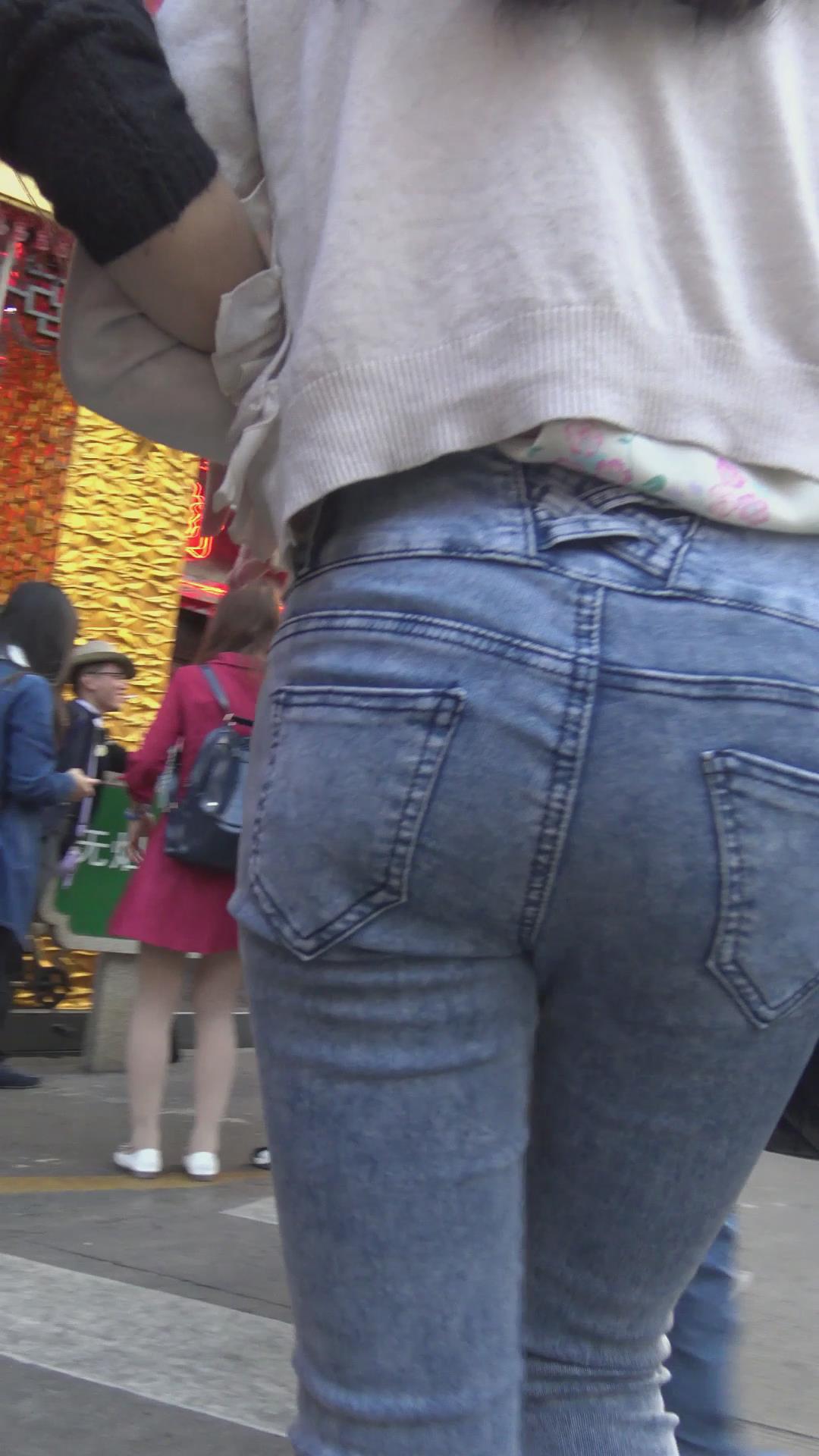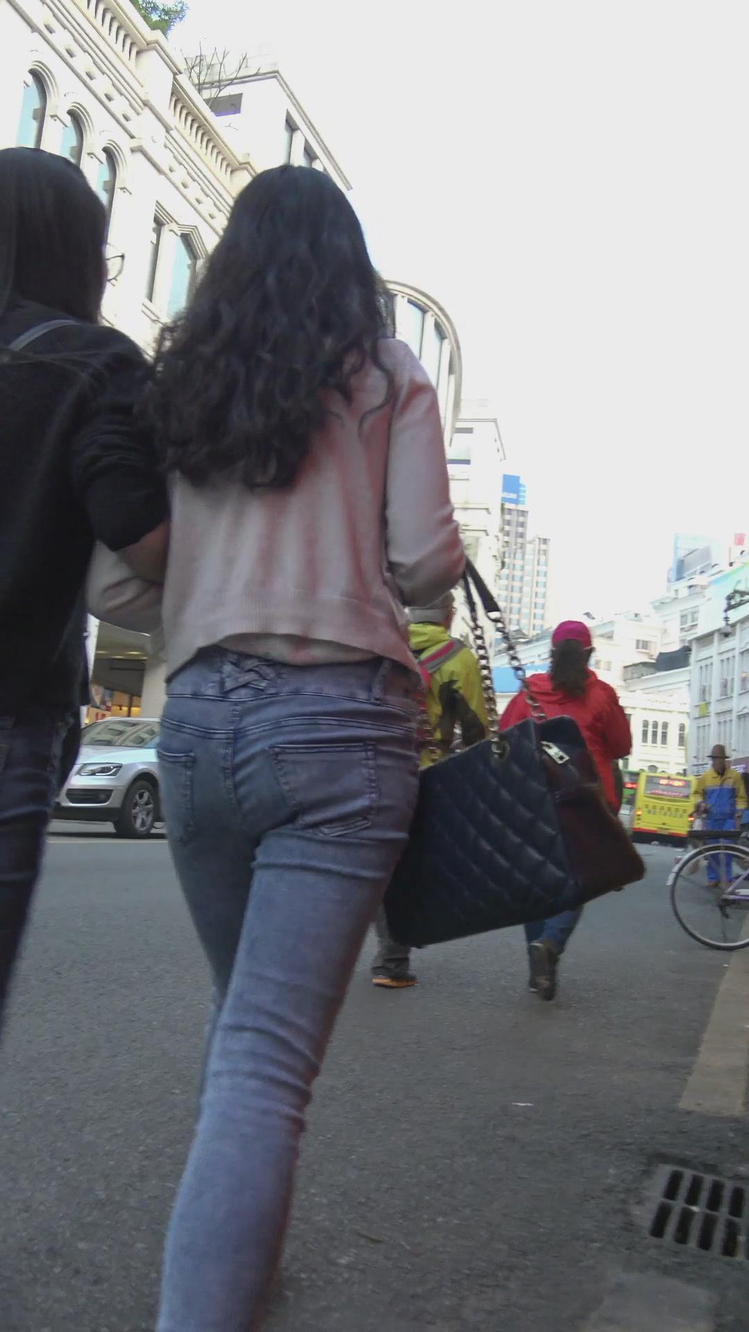 街拍紧身蓝牛圆臀女孩 编号6016
