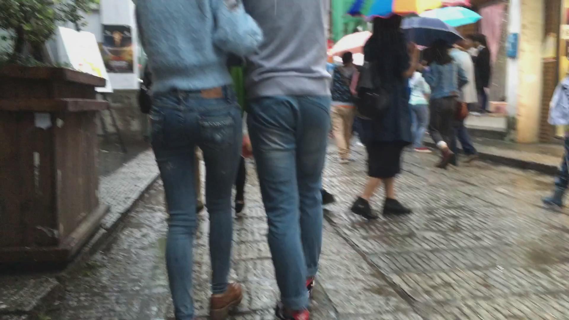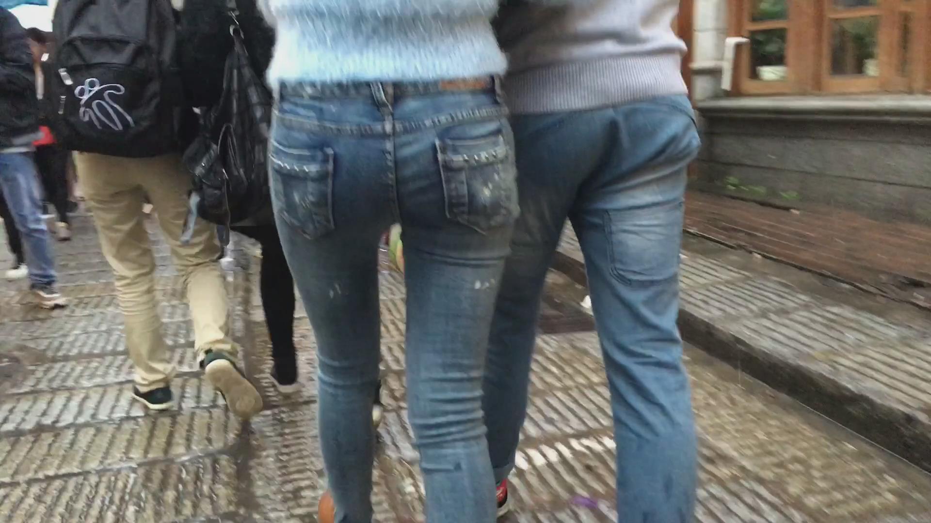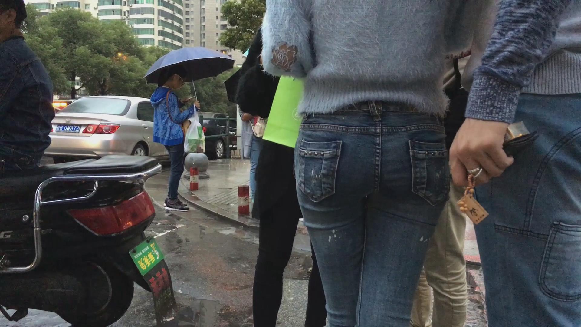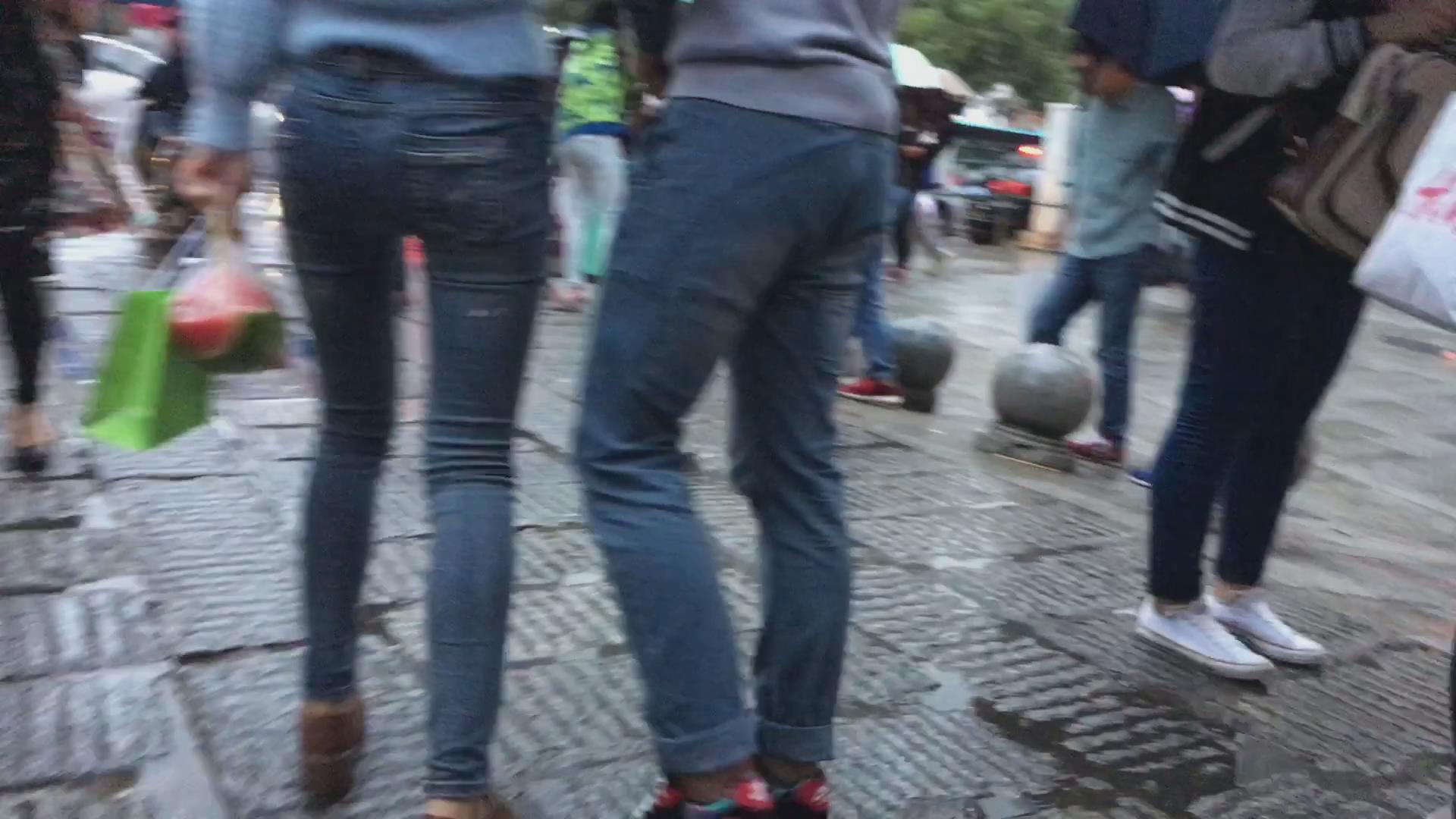 街拍极品紧身蓝牛美臀青春美女 编号6018