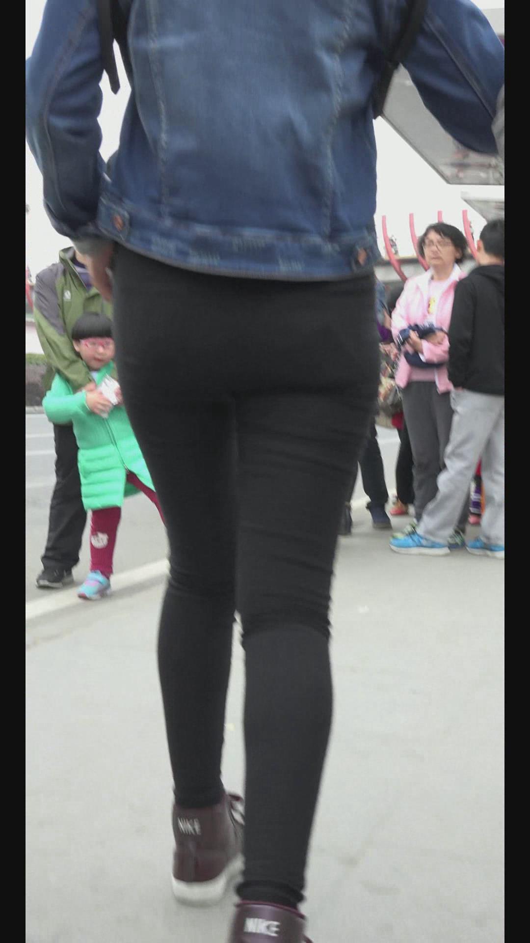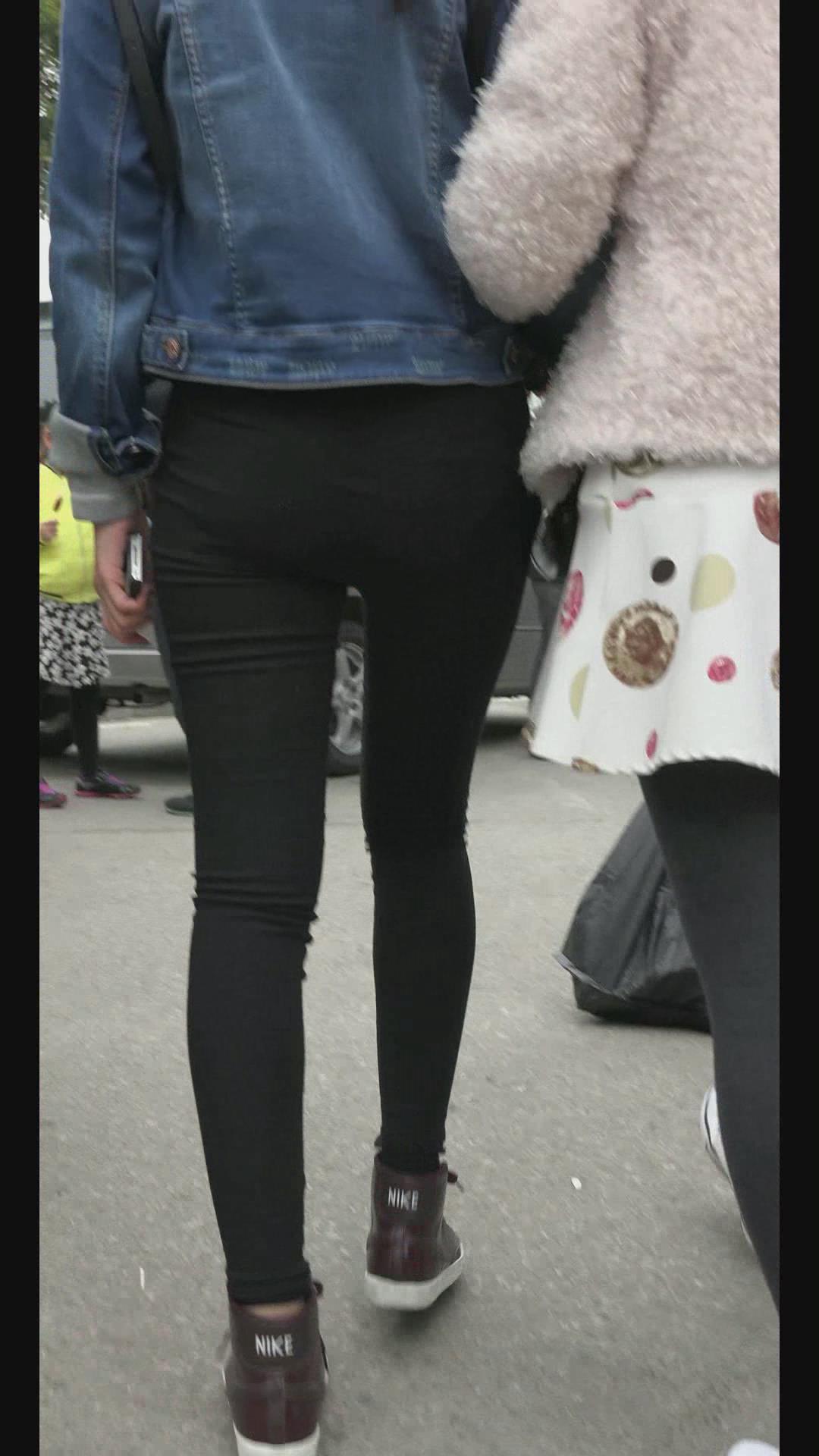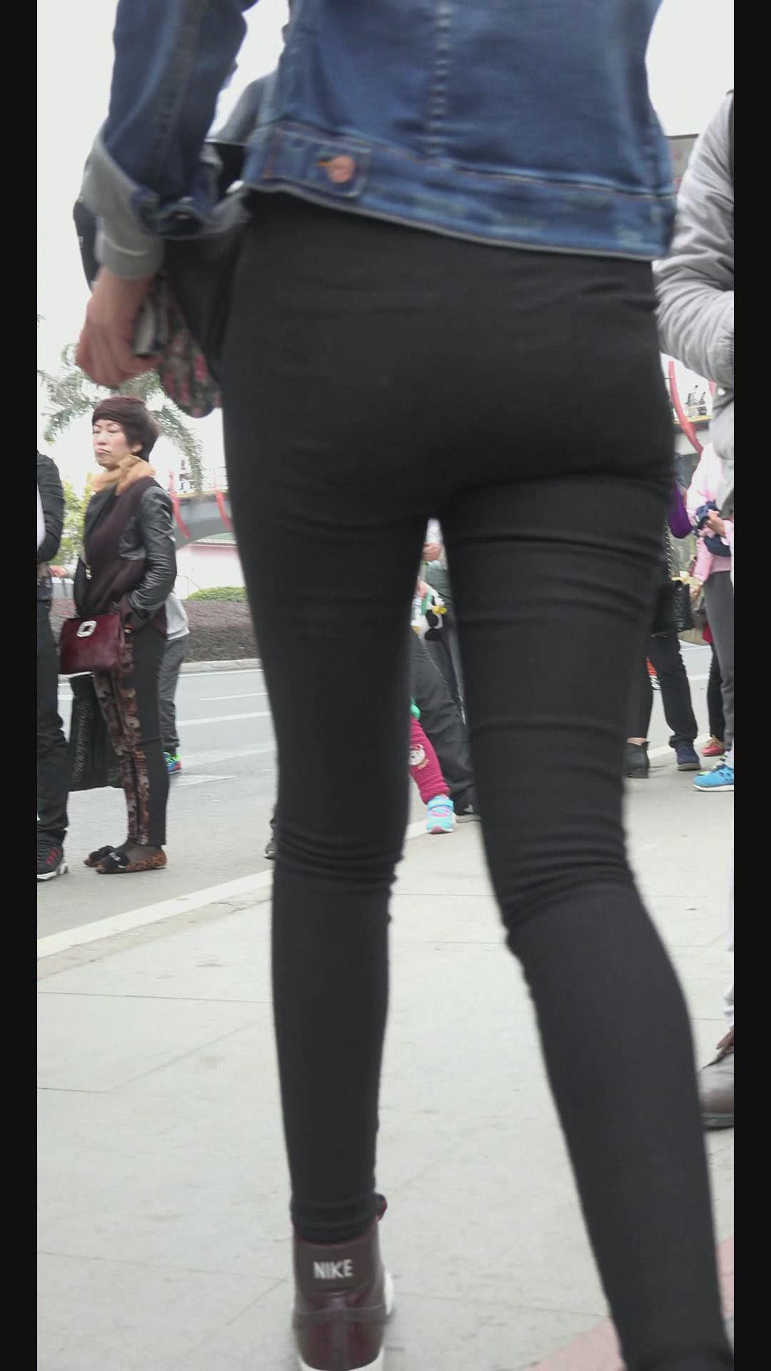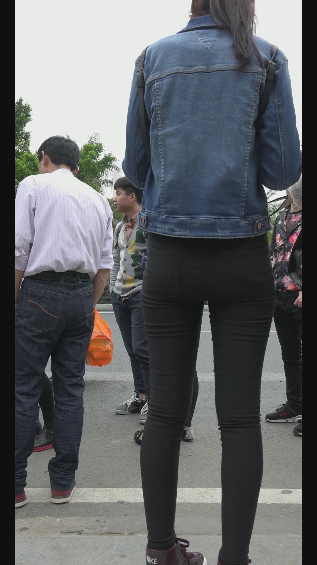 街拍牛仔小外套紧身黑裤清纯小美女 编号6020