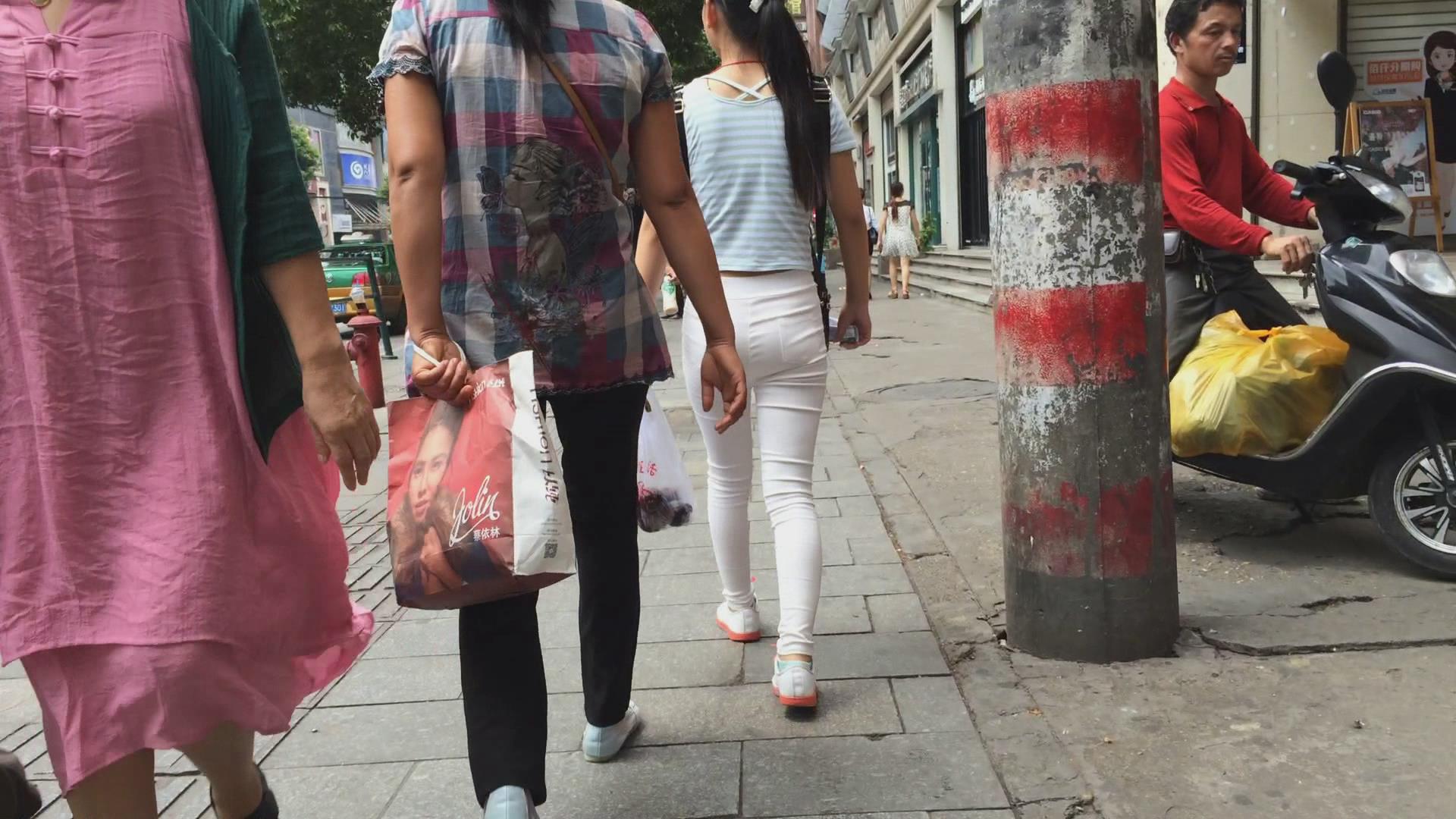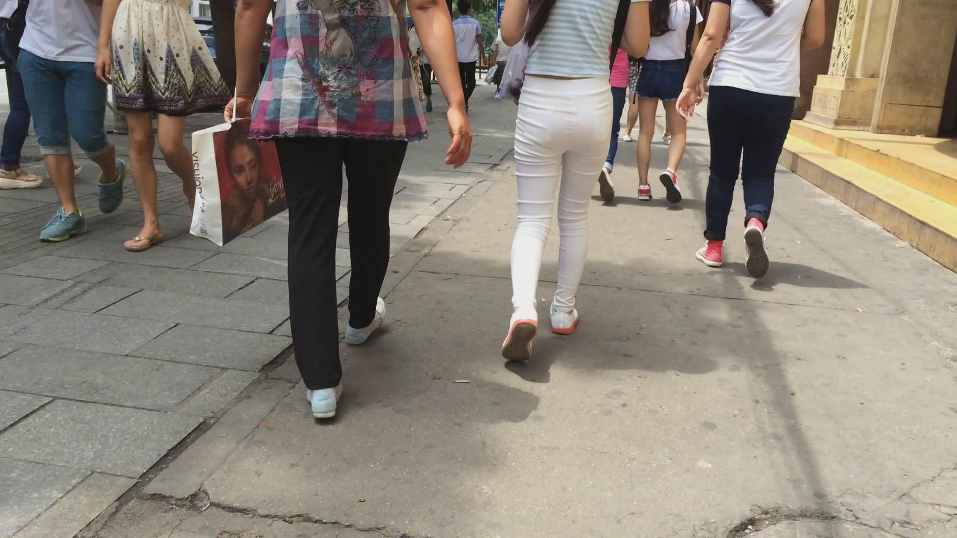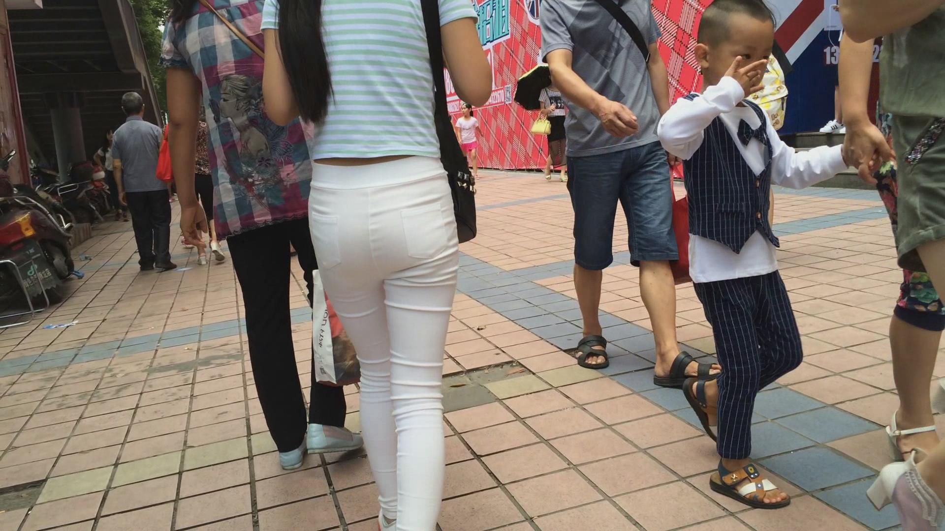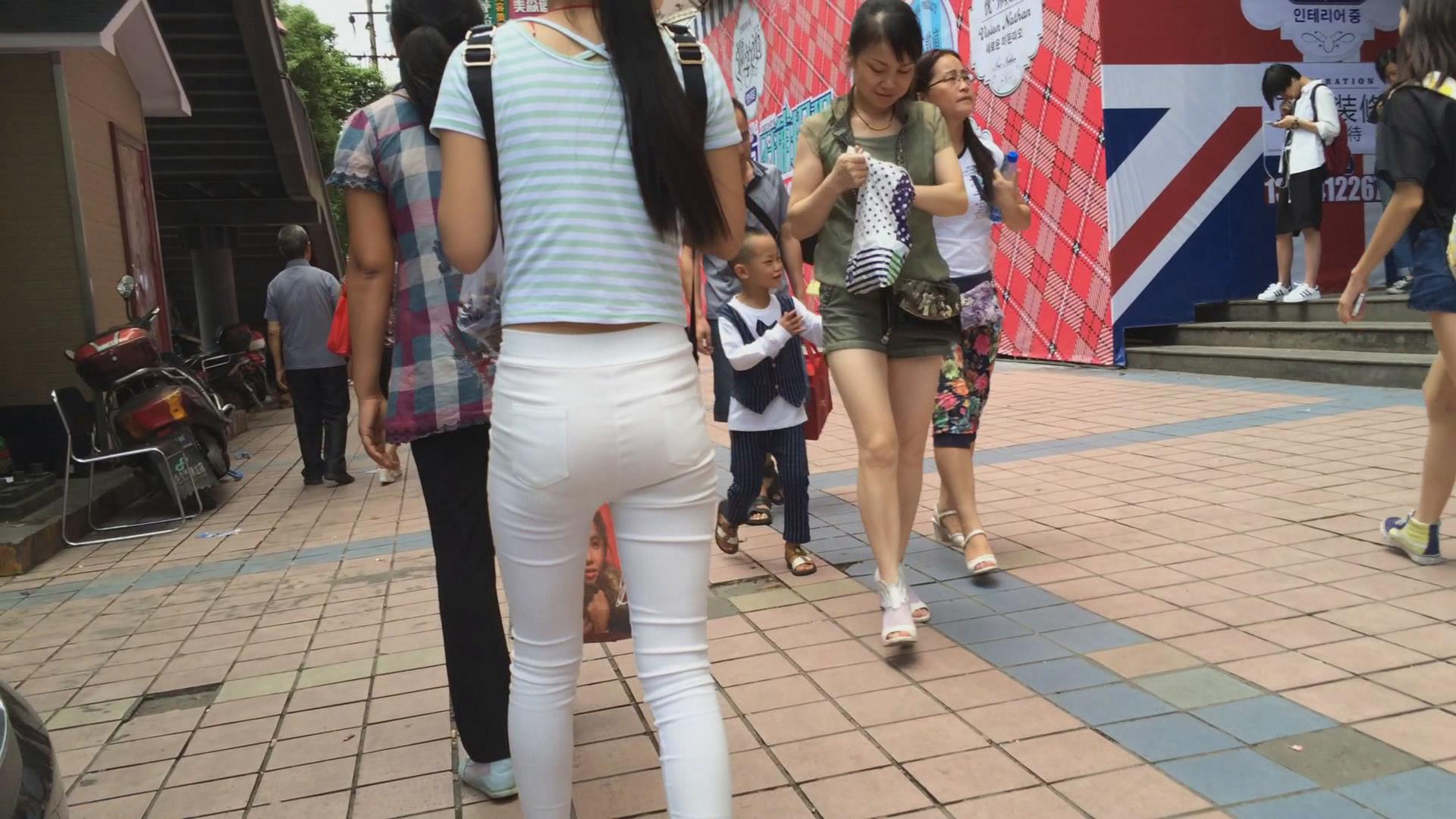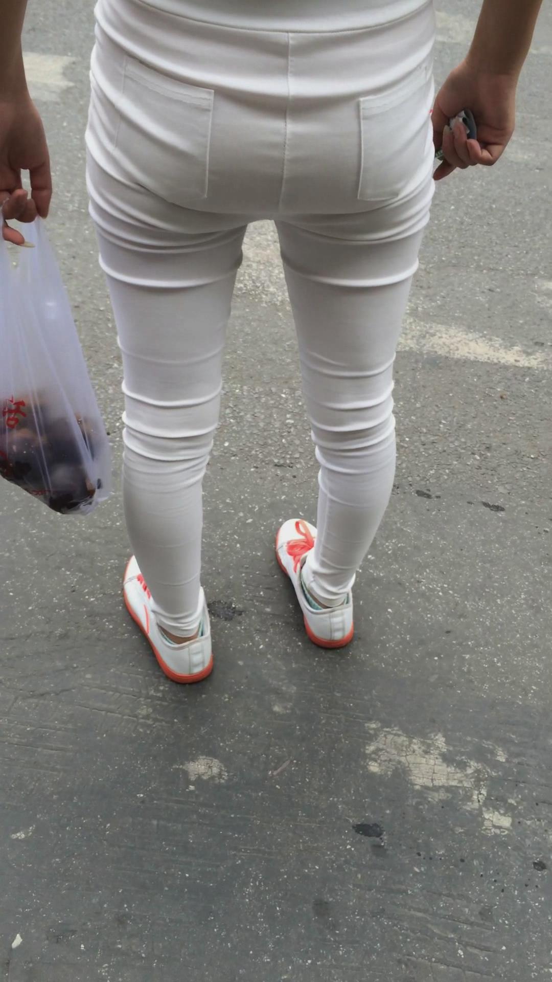 街拍白色紧身裤苗条美女 编号6022