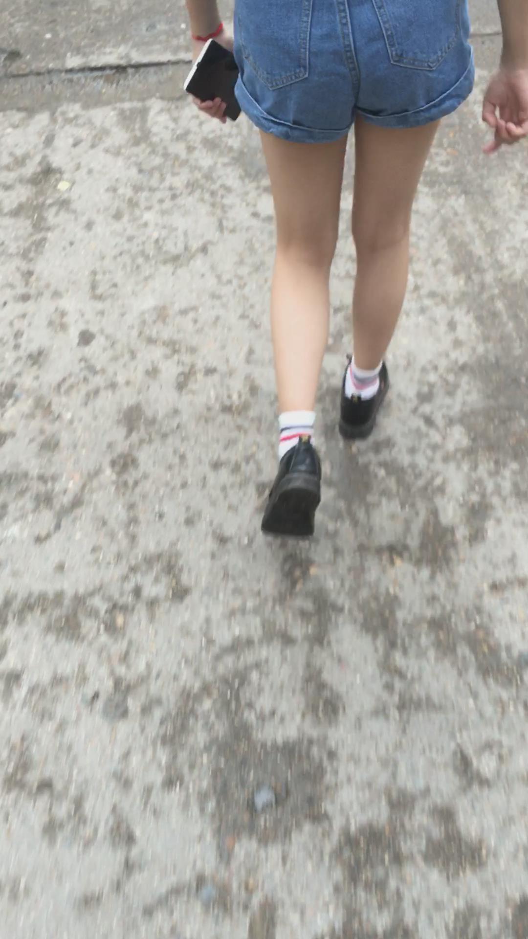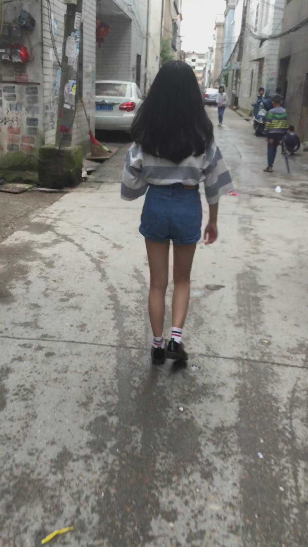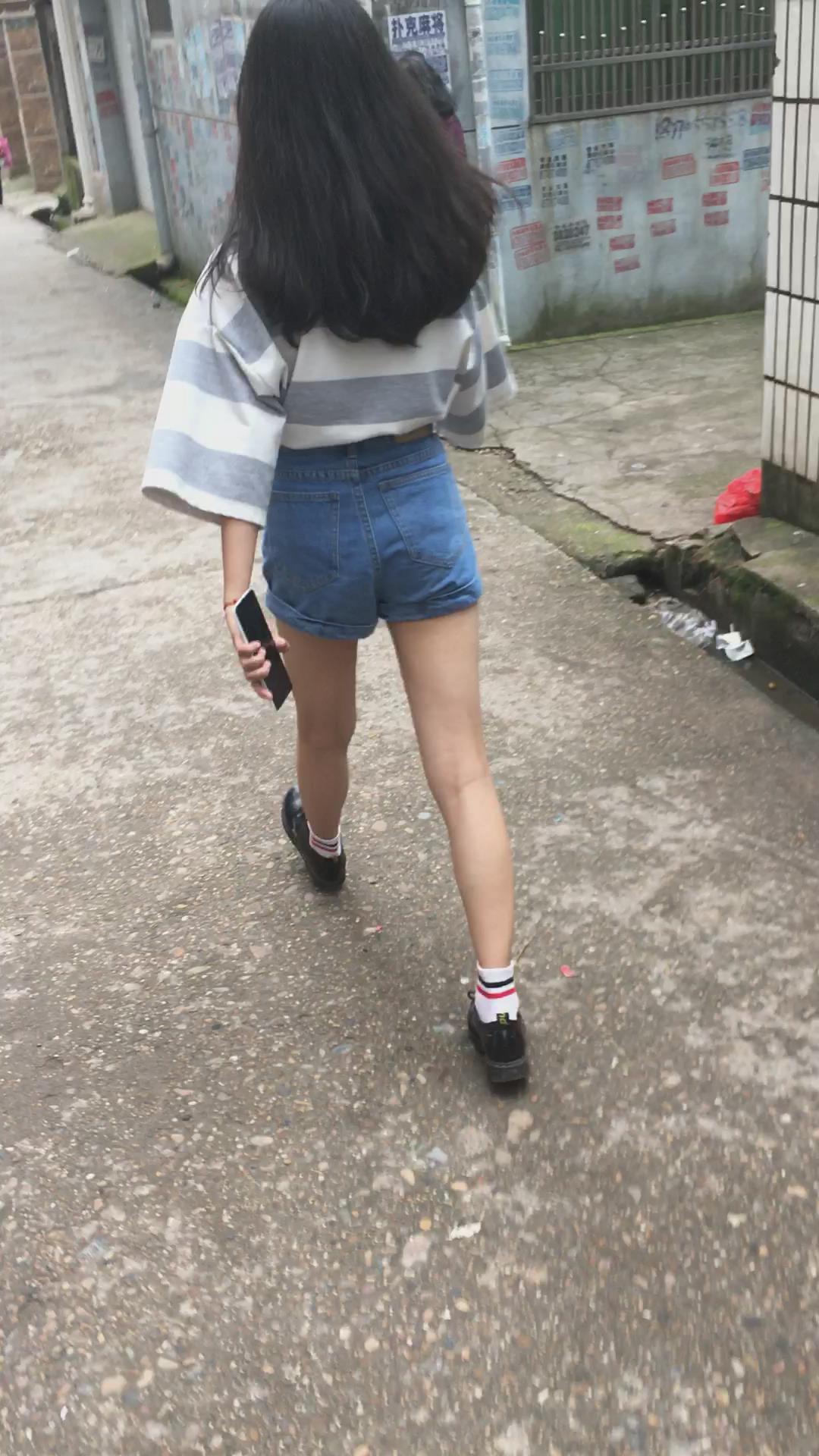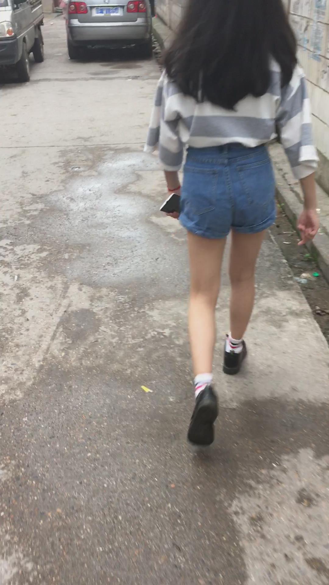 披肩发热裤街拍美眉 编号4499