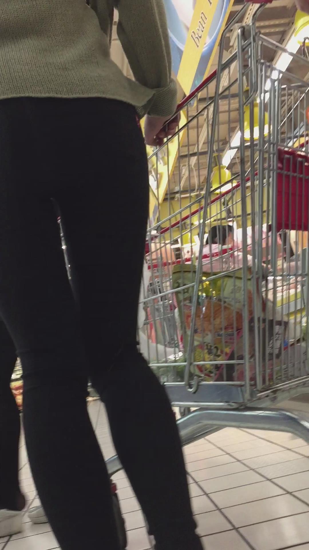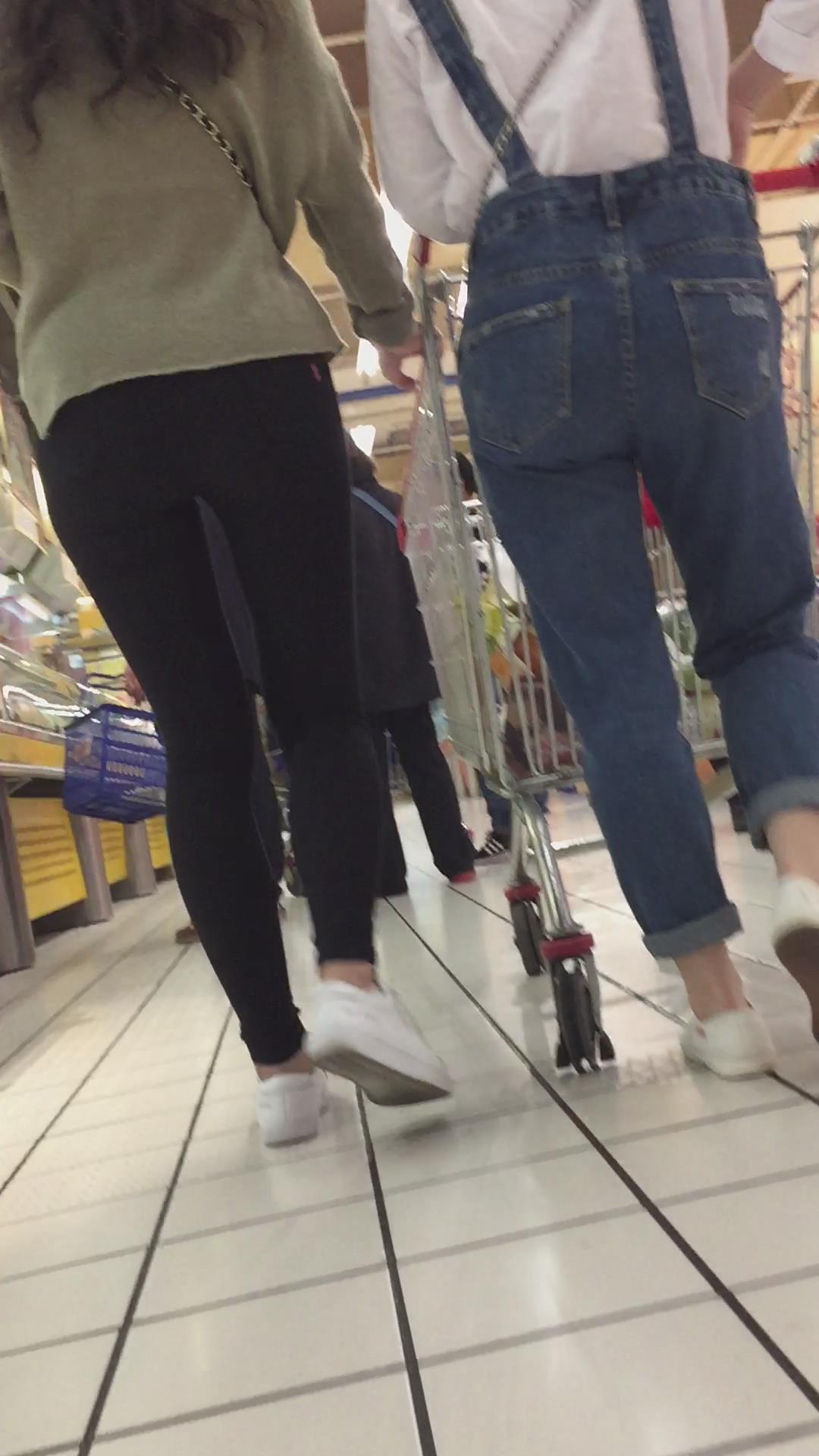 吊带牛仔裤小美女跟好姐妹逛超市。 编号6036