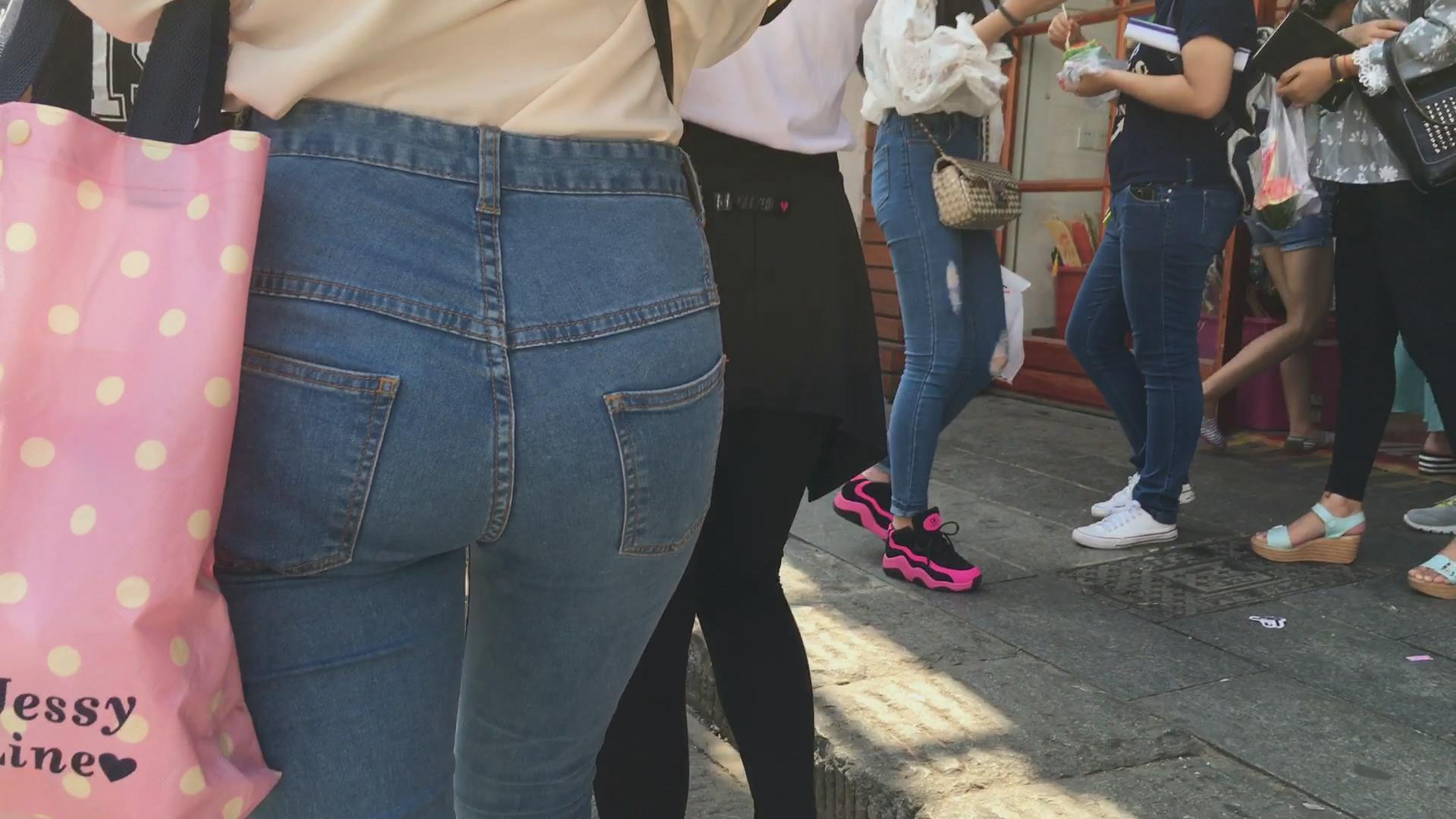 极品挺翘圆美臀紧身背带蓝牛美眉 编号6042