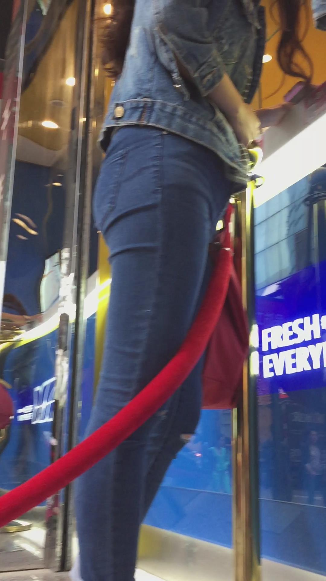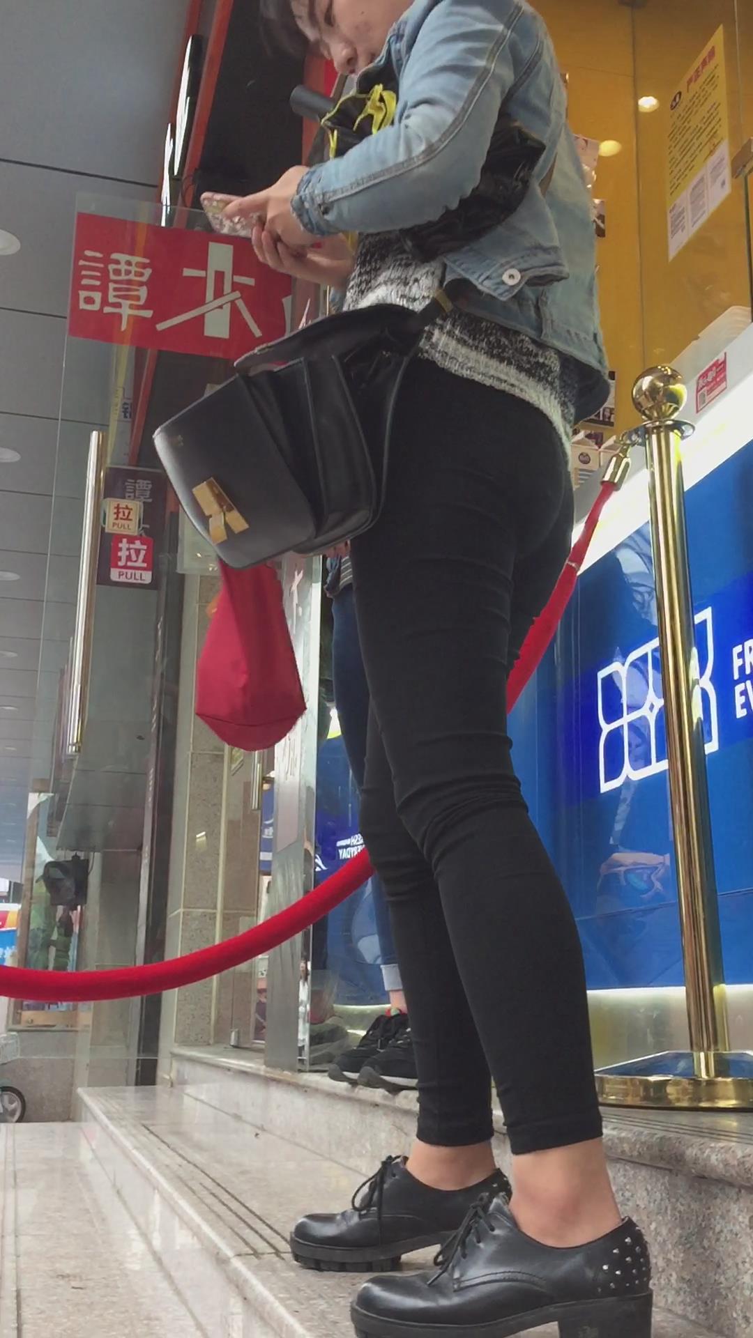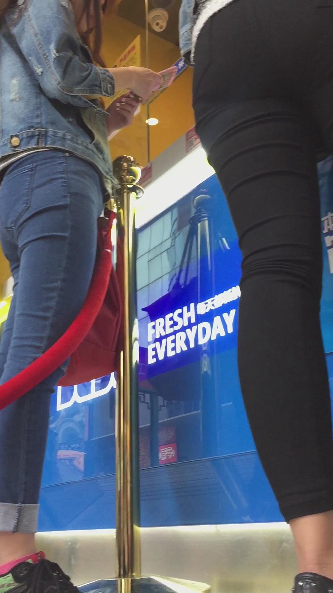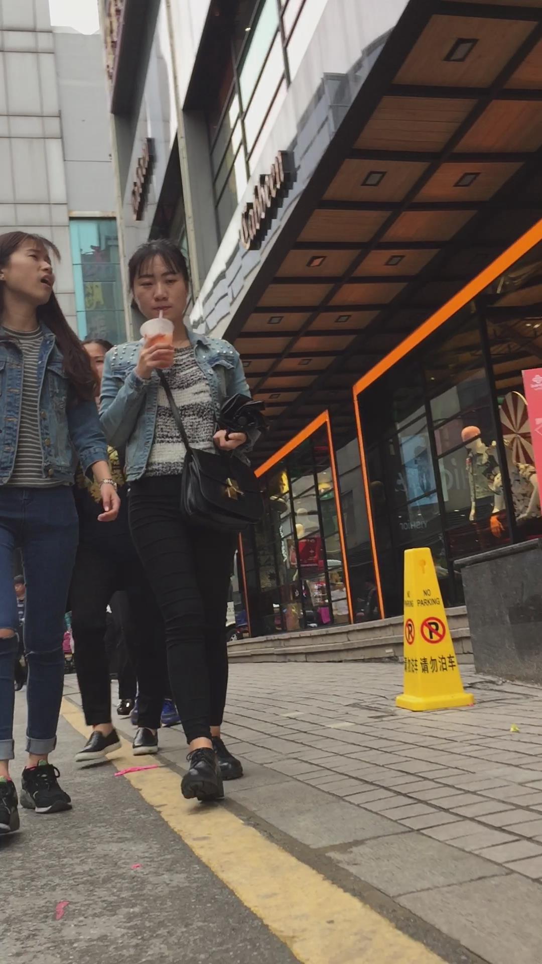 街拍买奶茶的紧身裤学生姐妹花。 编号6046