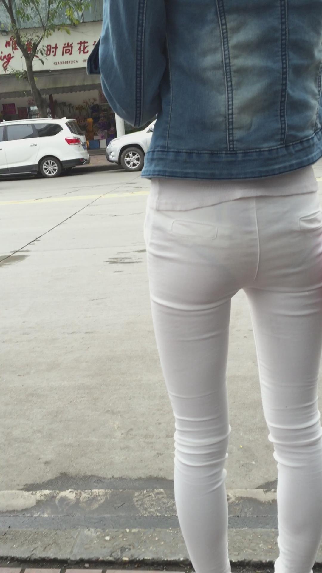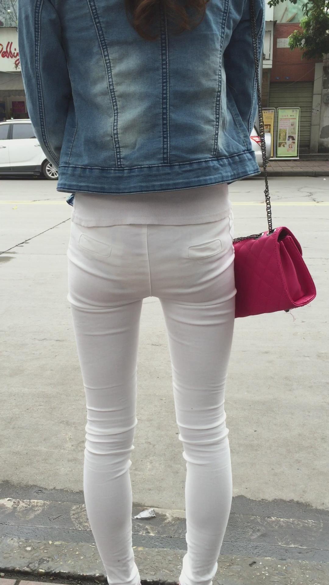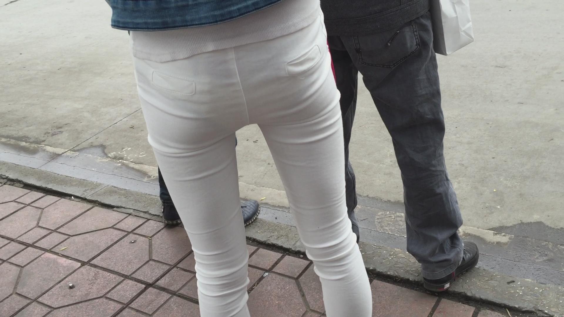 街拍透明白色紧身裤苗条美女,内内清晰可见 编号6054