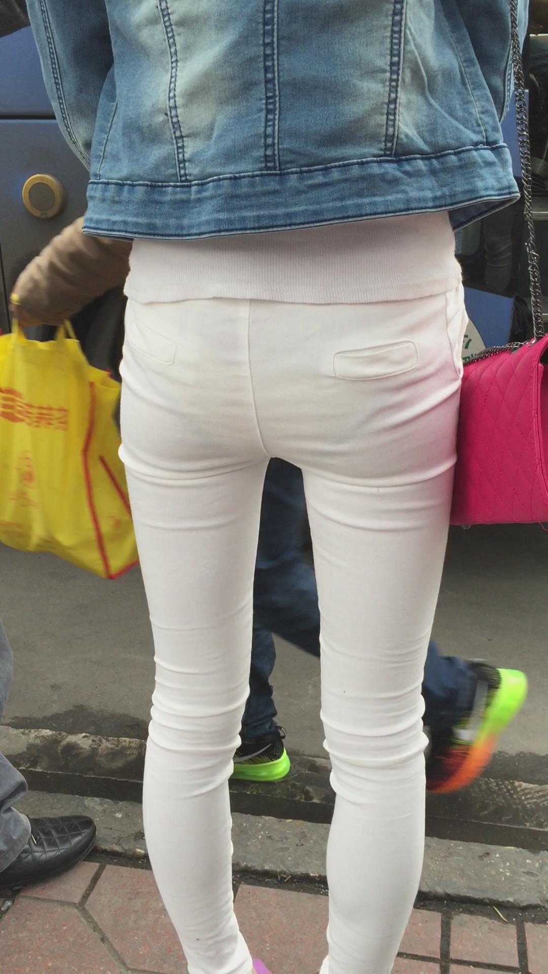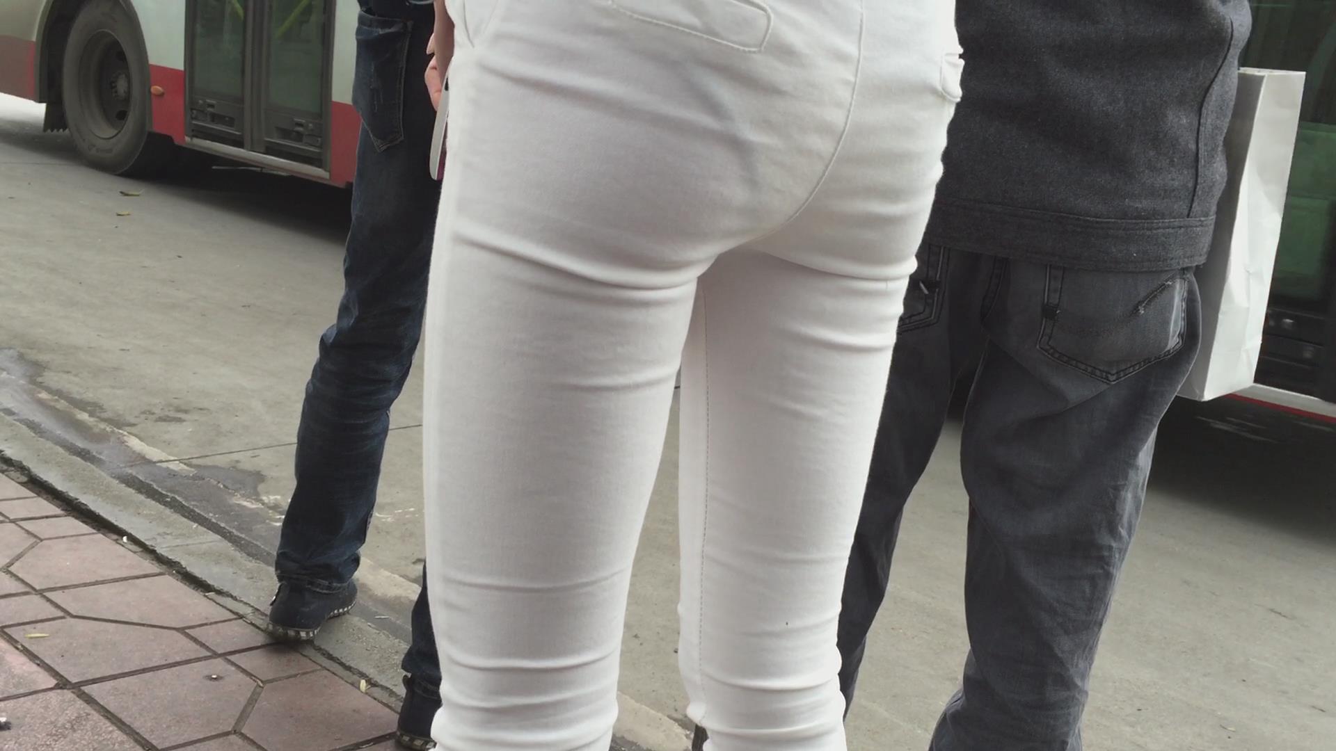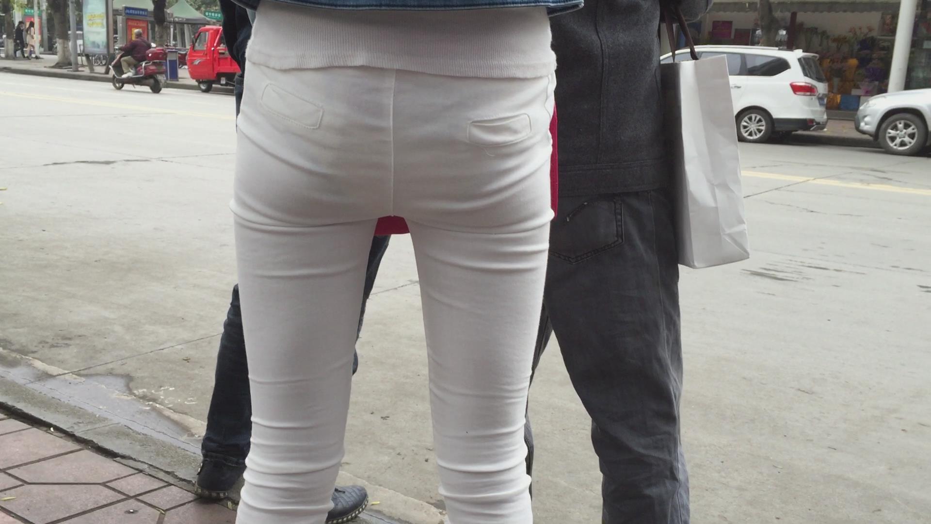 街拍透明白色紧身裤苗条美女,内内清晰可见 编号6054