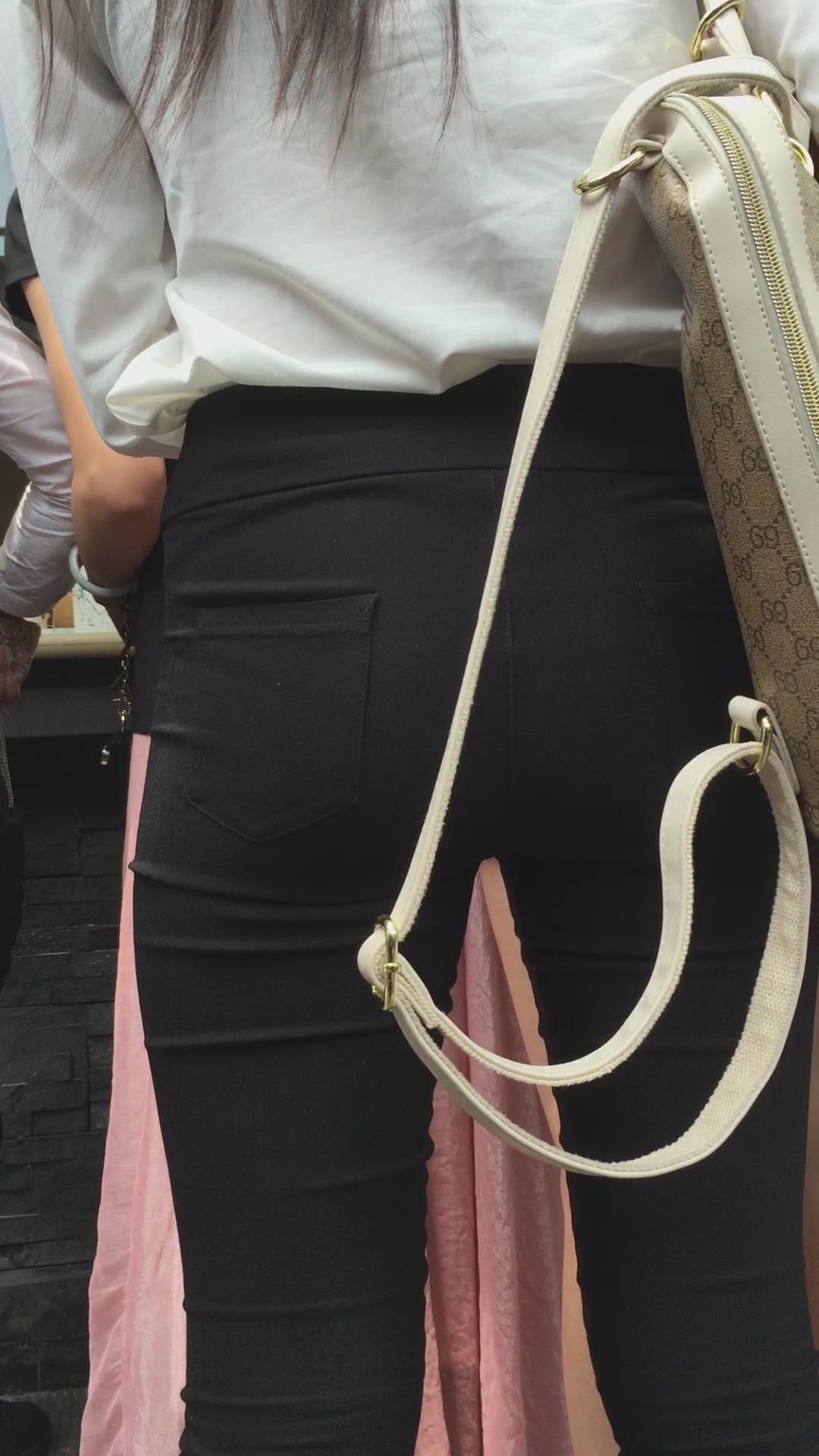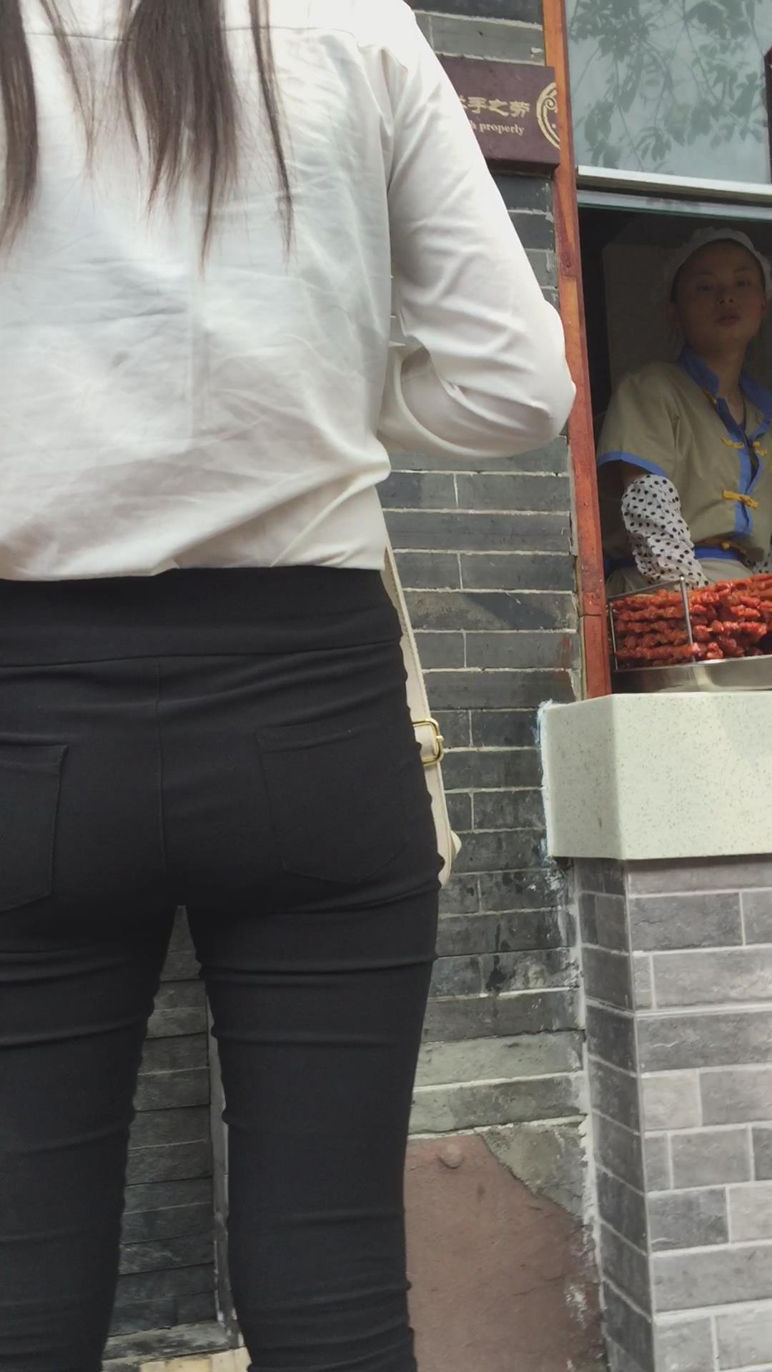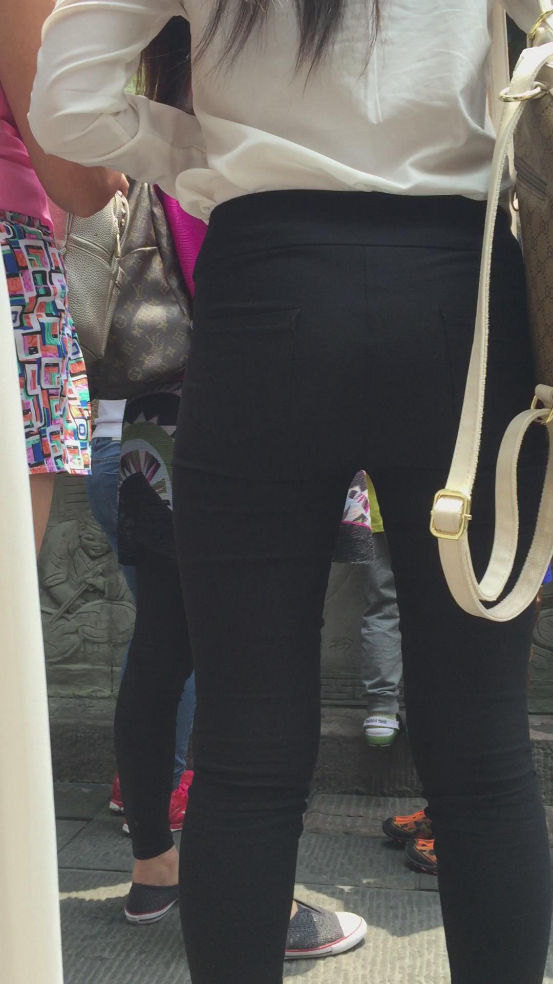 街拍黑色紧身裤白衬衫妹纸 编号6061