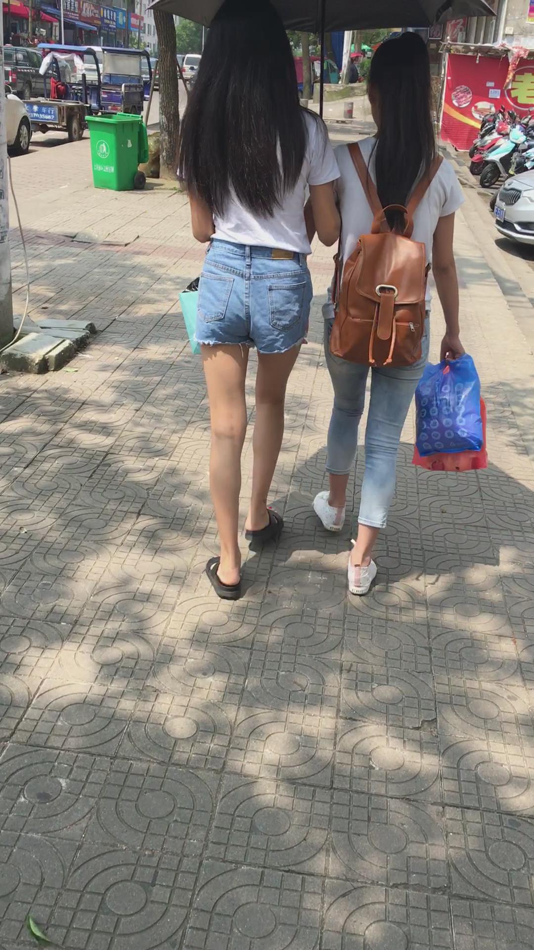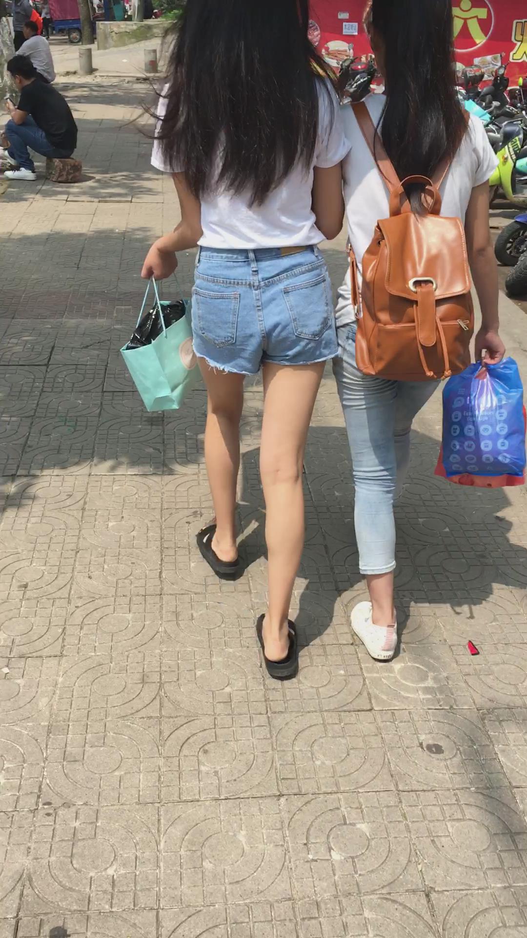 街拍小清新白T恤高腰热裤美女小姐姐 编号4502