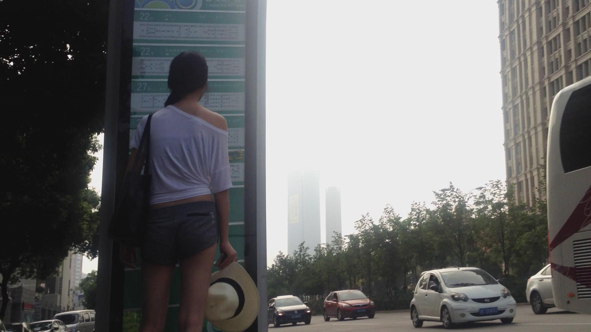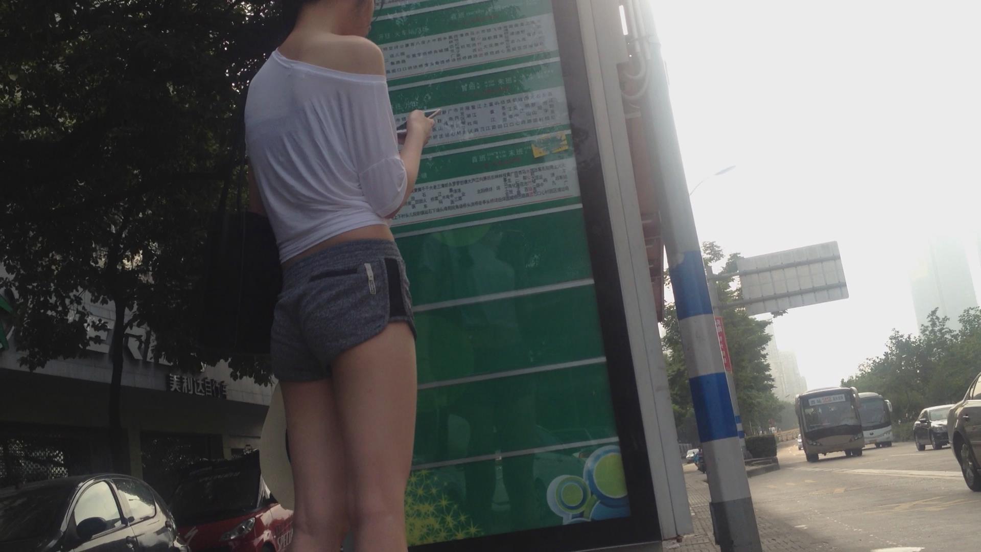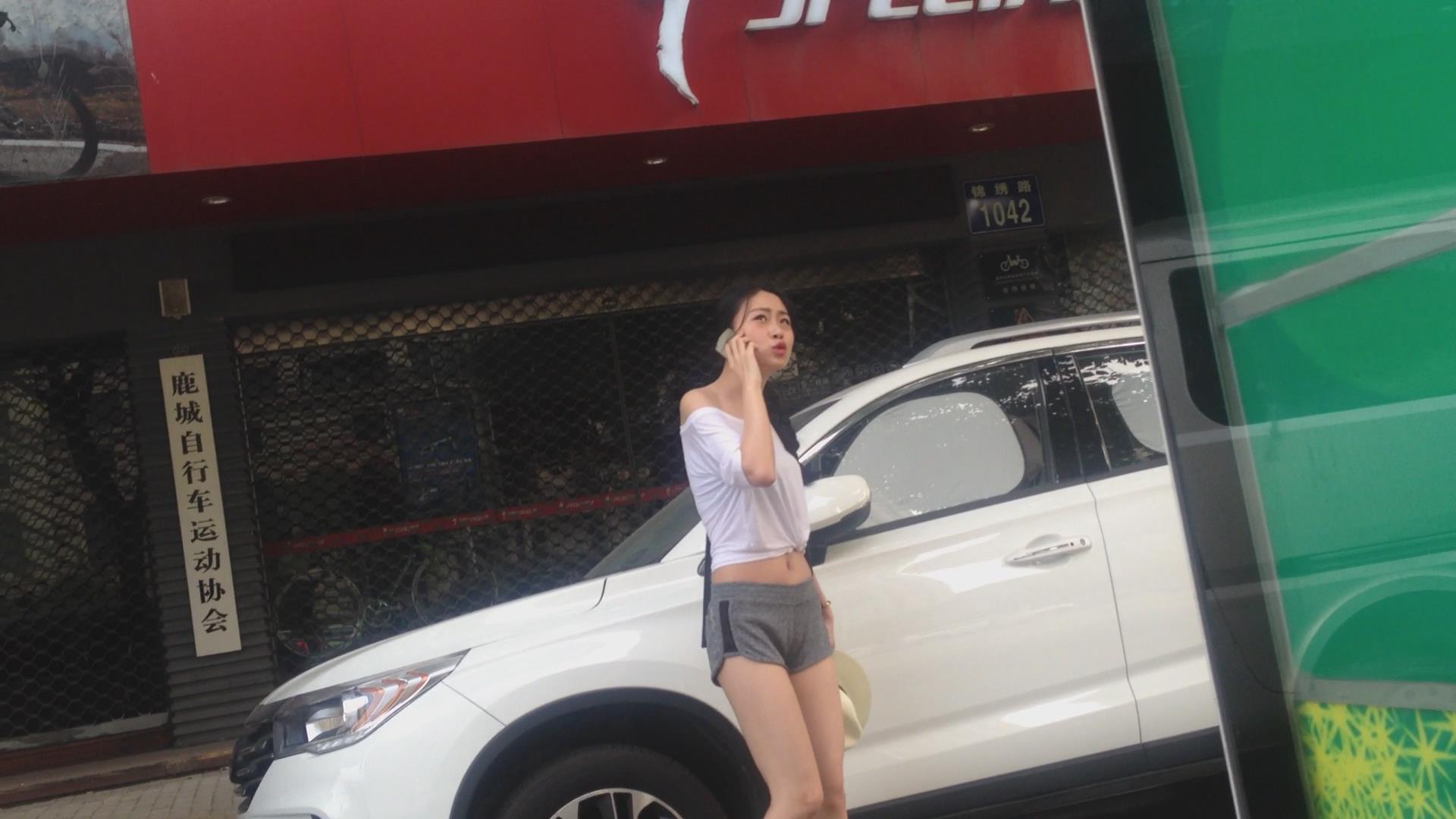 超短热裤白T恤露肩小美女街拍视频 编号4503