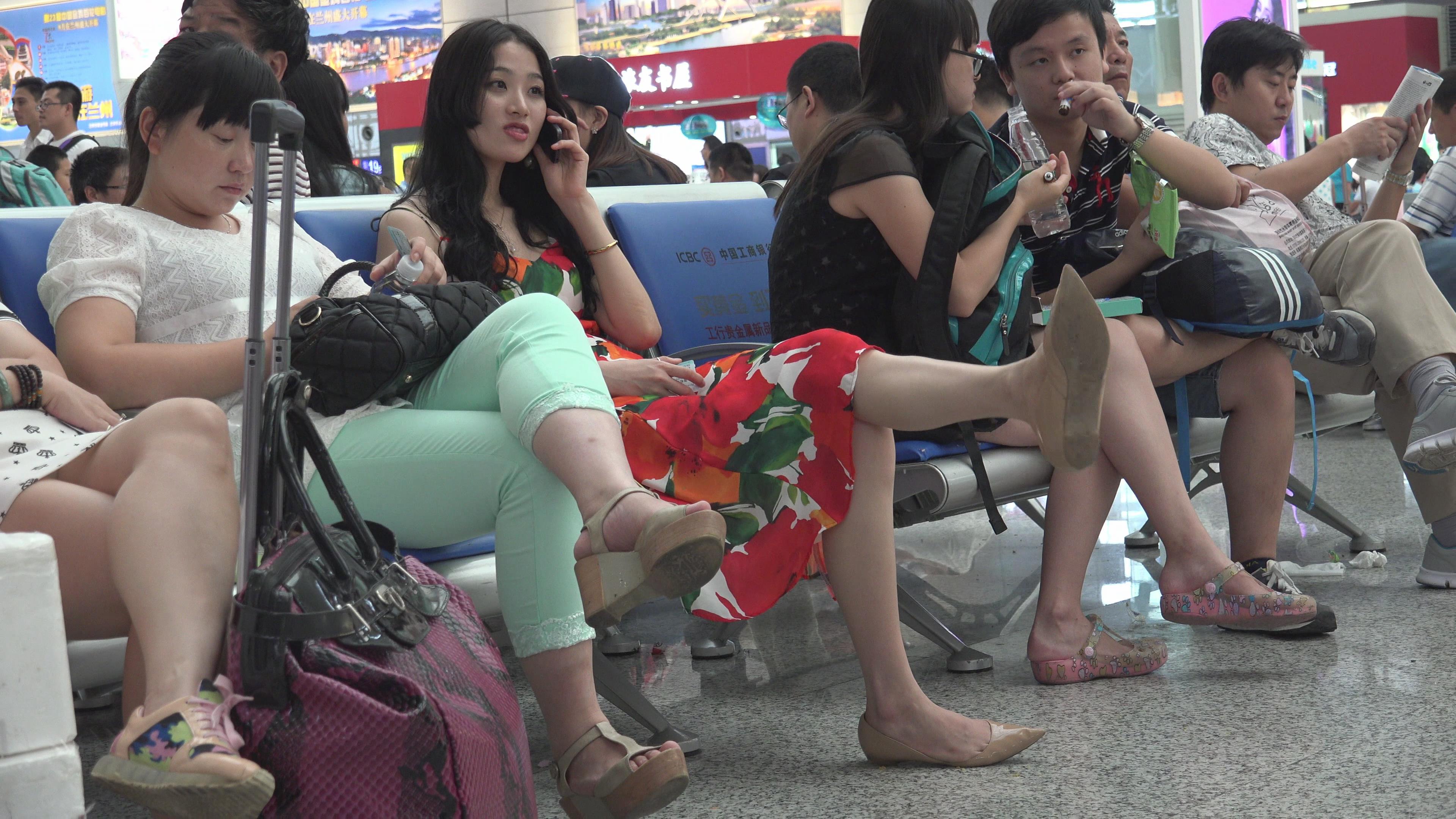 4K - 街拍美足连衣裙知性美女姐姐 编号2736