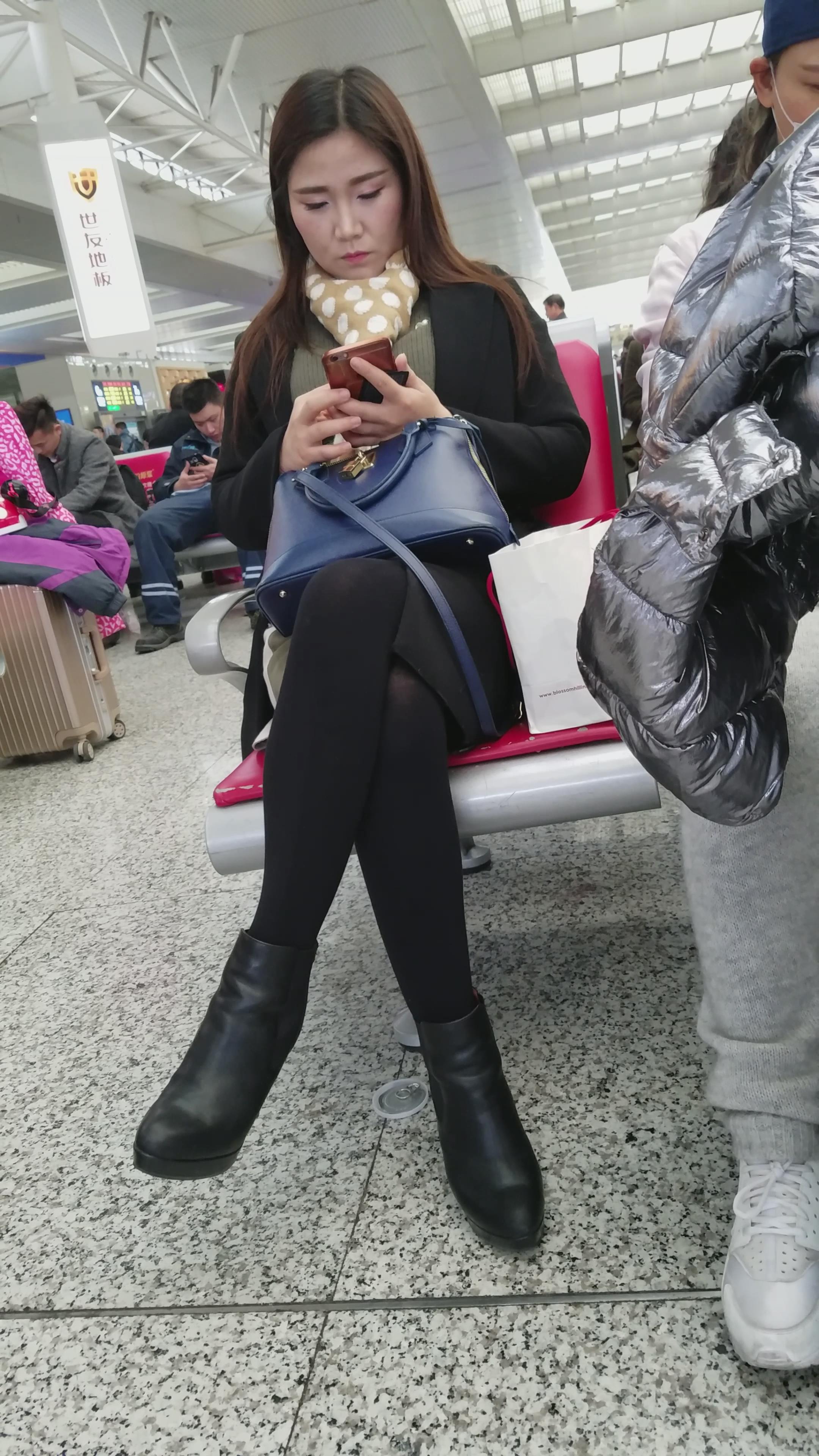 4K - 性感美腿皮鞋黑色裤袜美女 编号2742