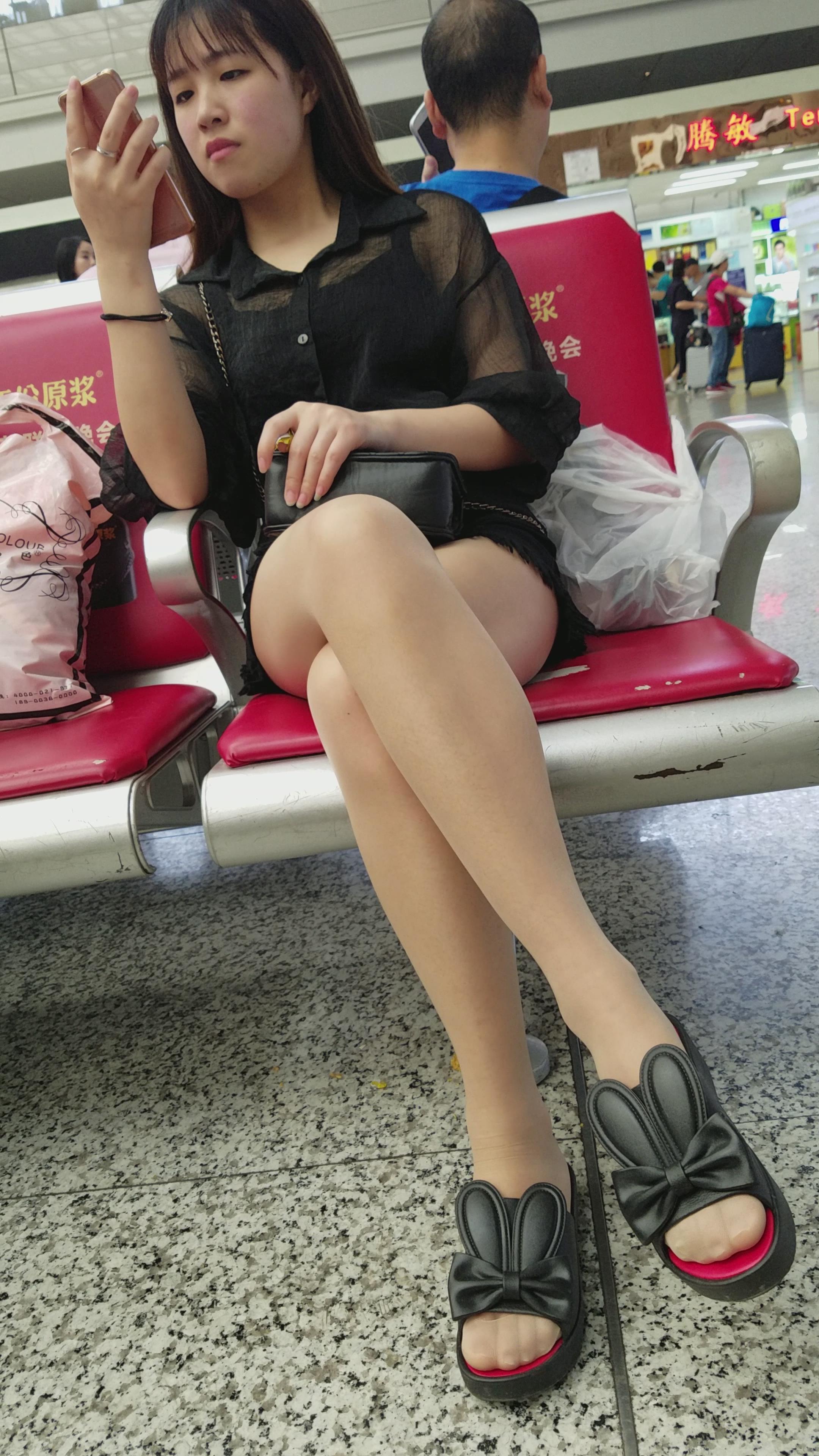 4K - 可爱兔子鞋街拍肉丝美腿气质漂亮美女 编号2746