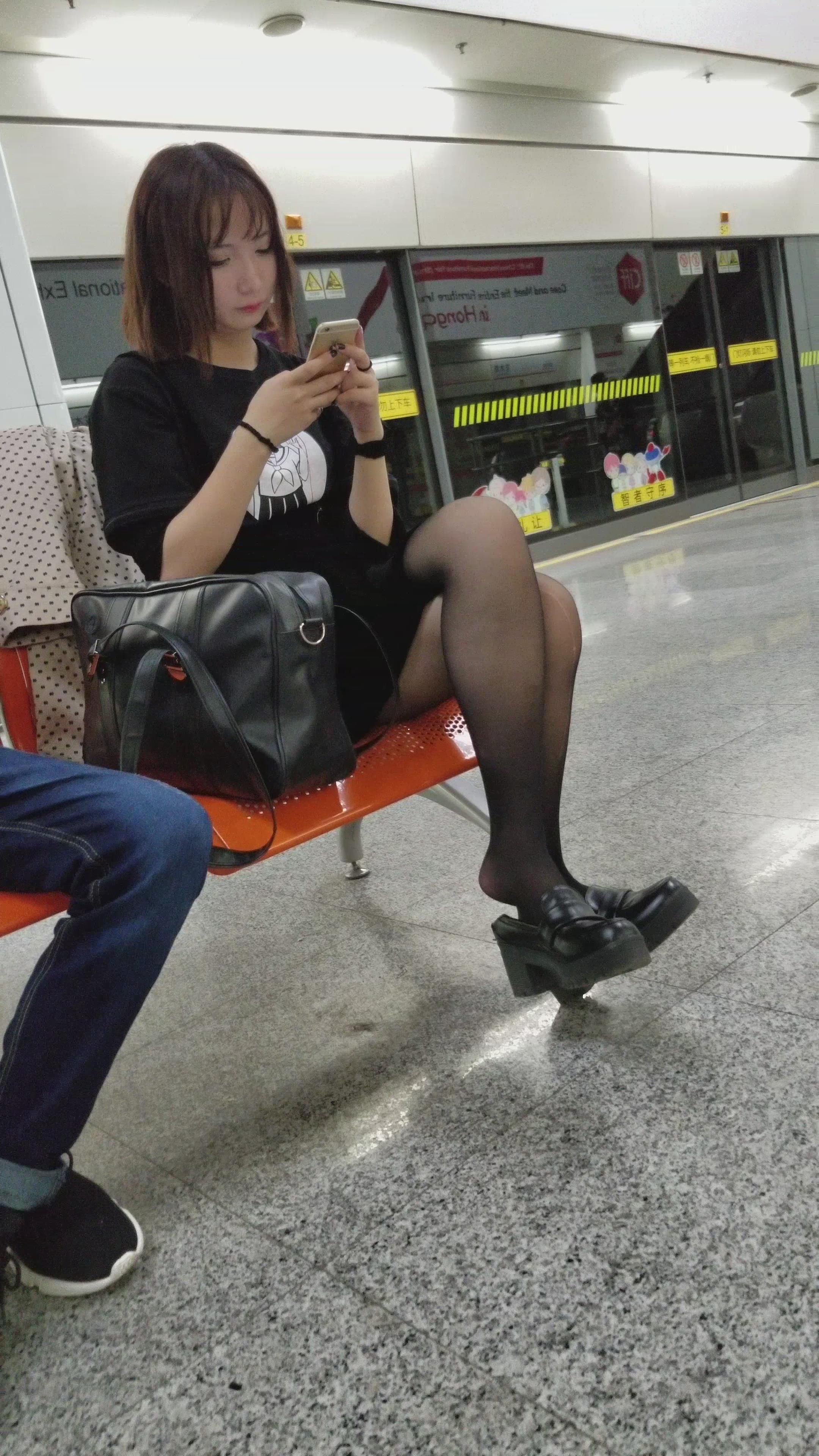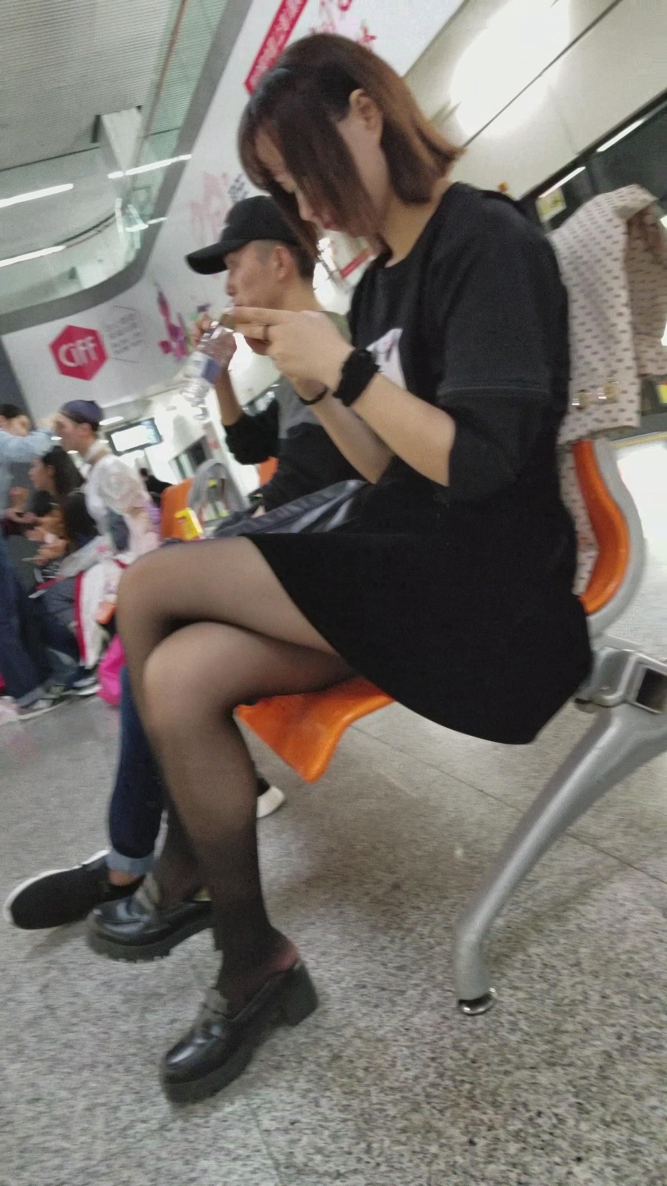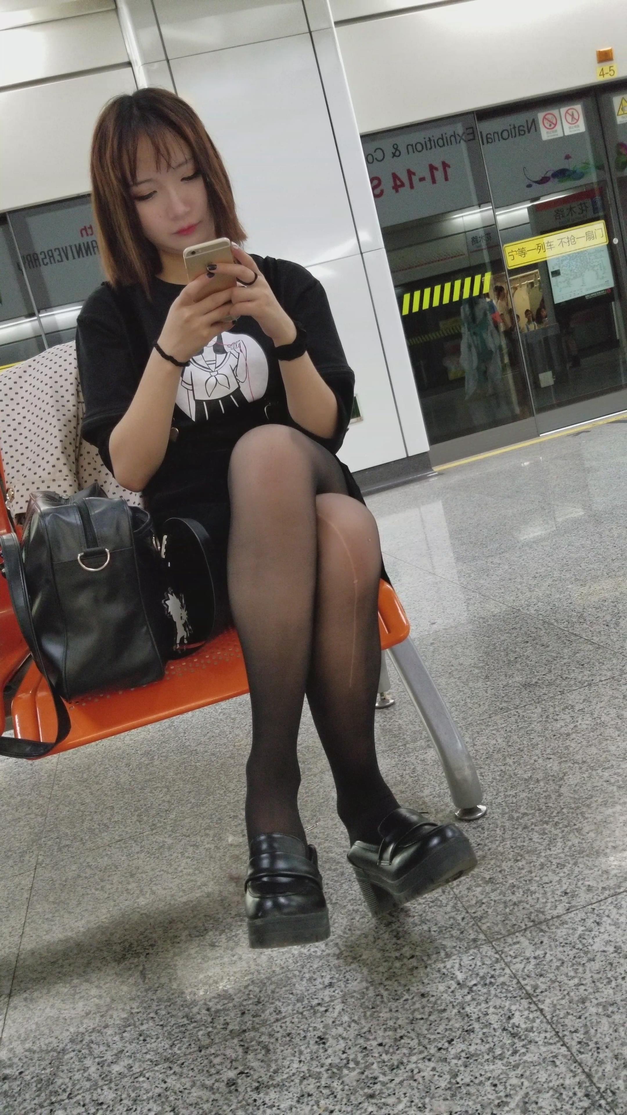 4K-外表很清纯的黑色连衣裙街拍黑丝高跟小姐姐 编号2748