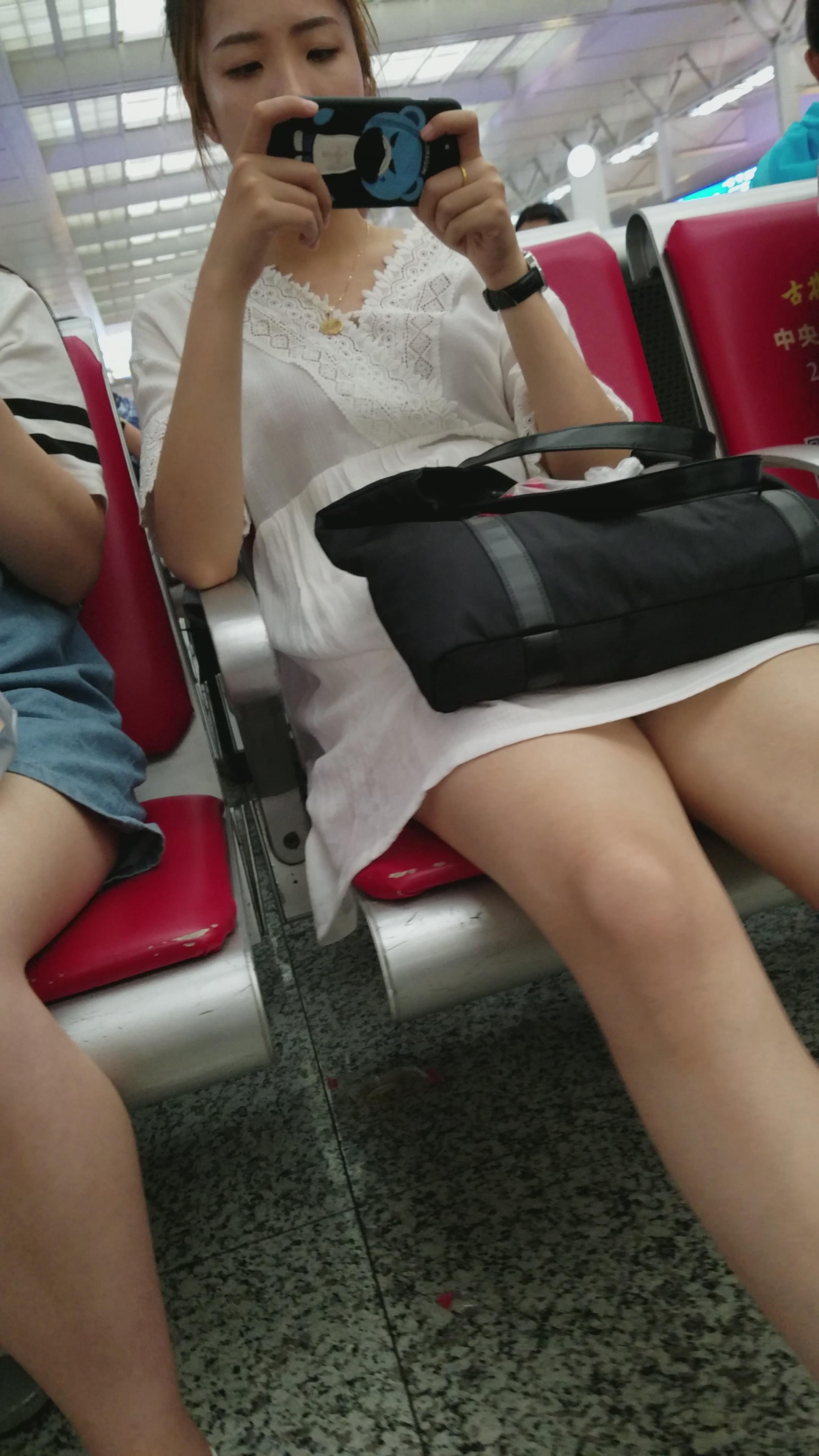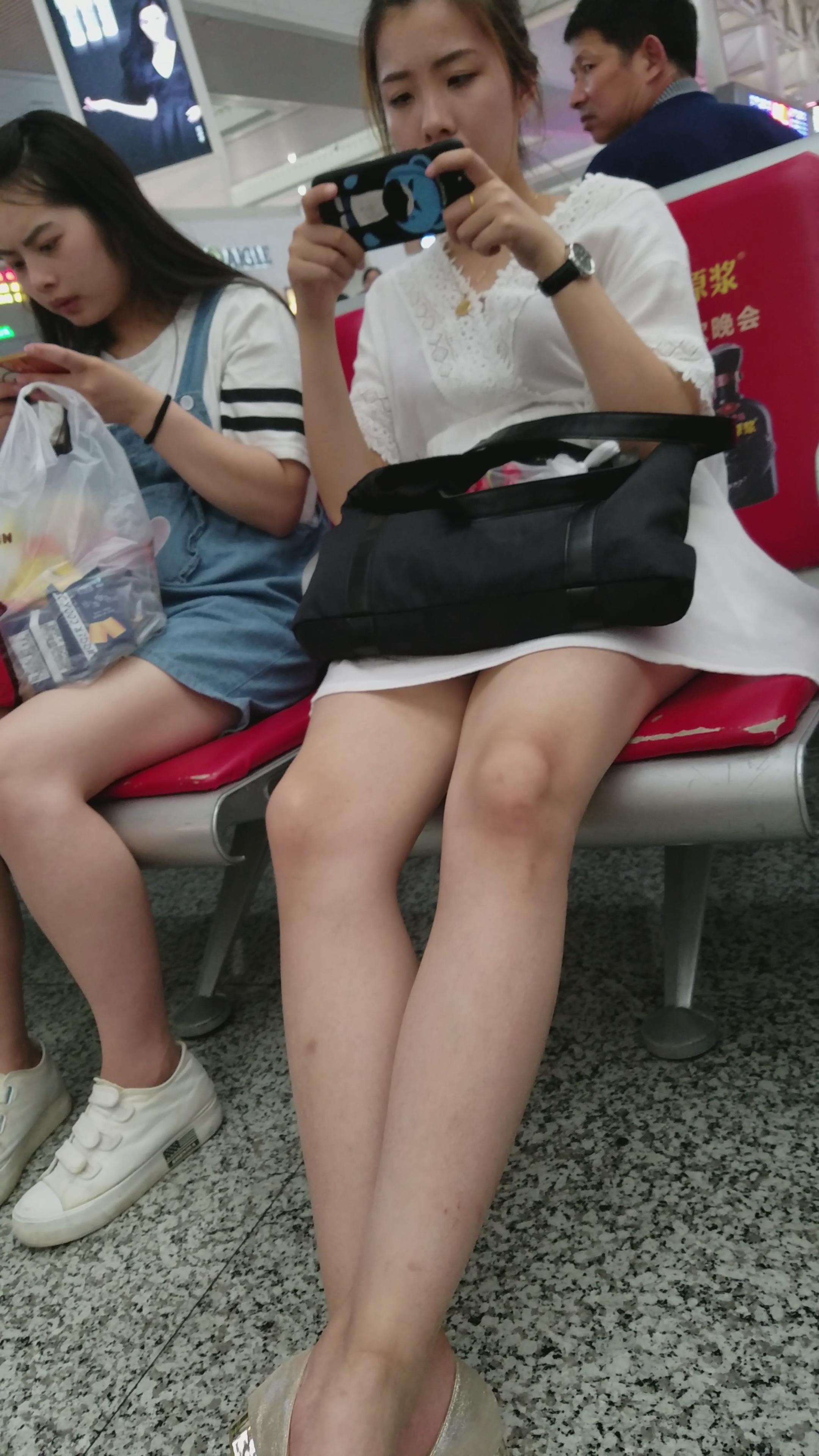 4K-玩王者荣耀的白色连衣裙靓丽容颜美腿美女姐姐 编号2756