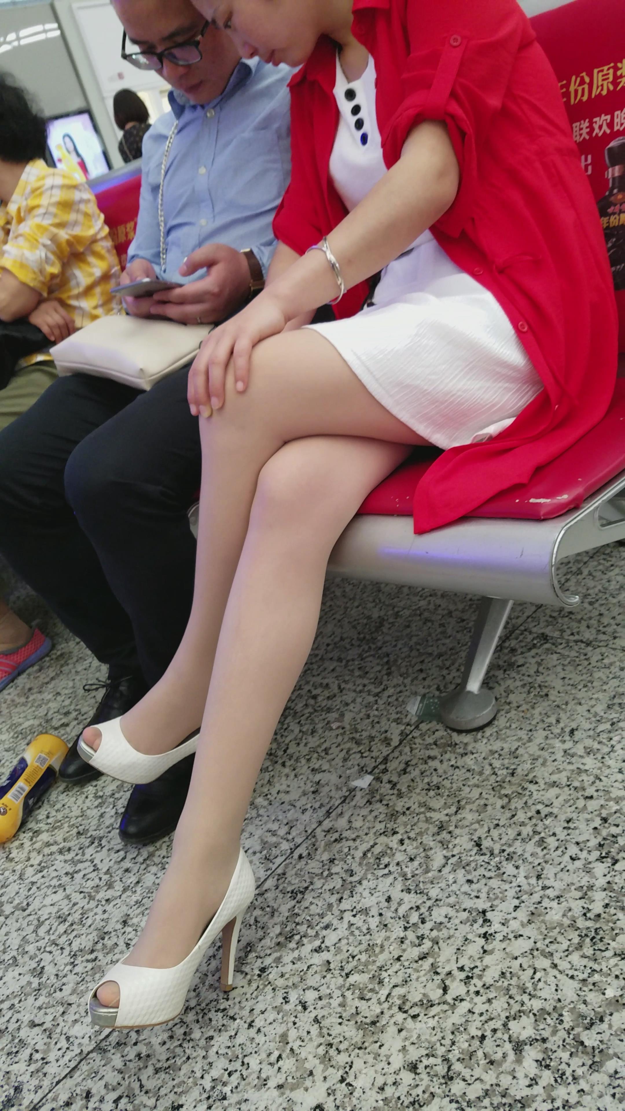 4K-红衣鱼嘴高跟鞋街拍肉丝长腿美女姐姐 编号2762