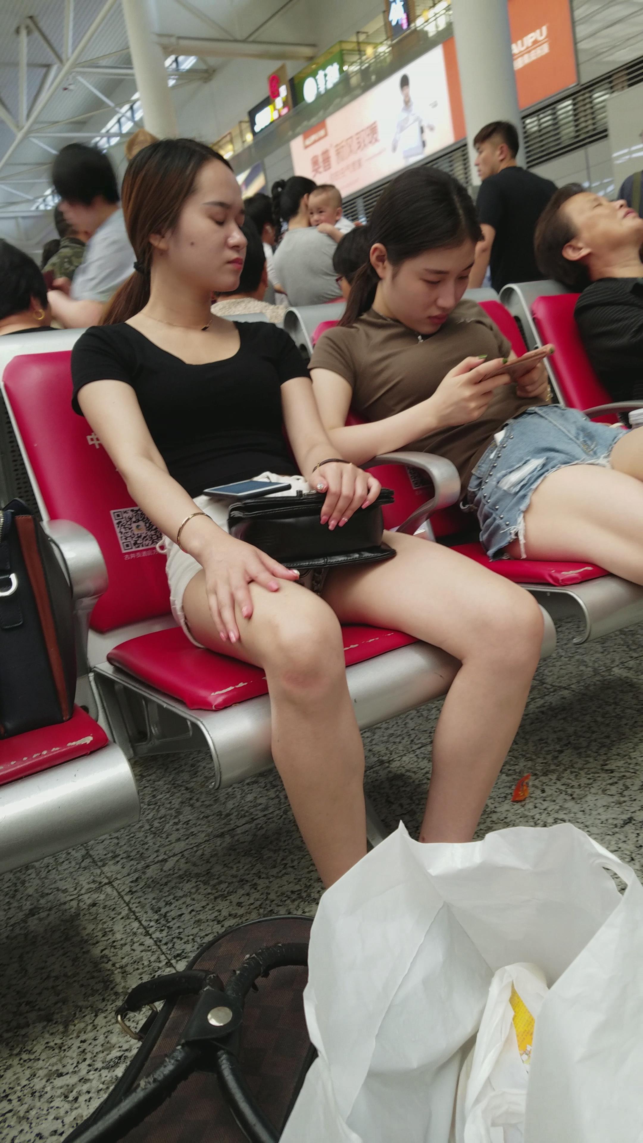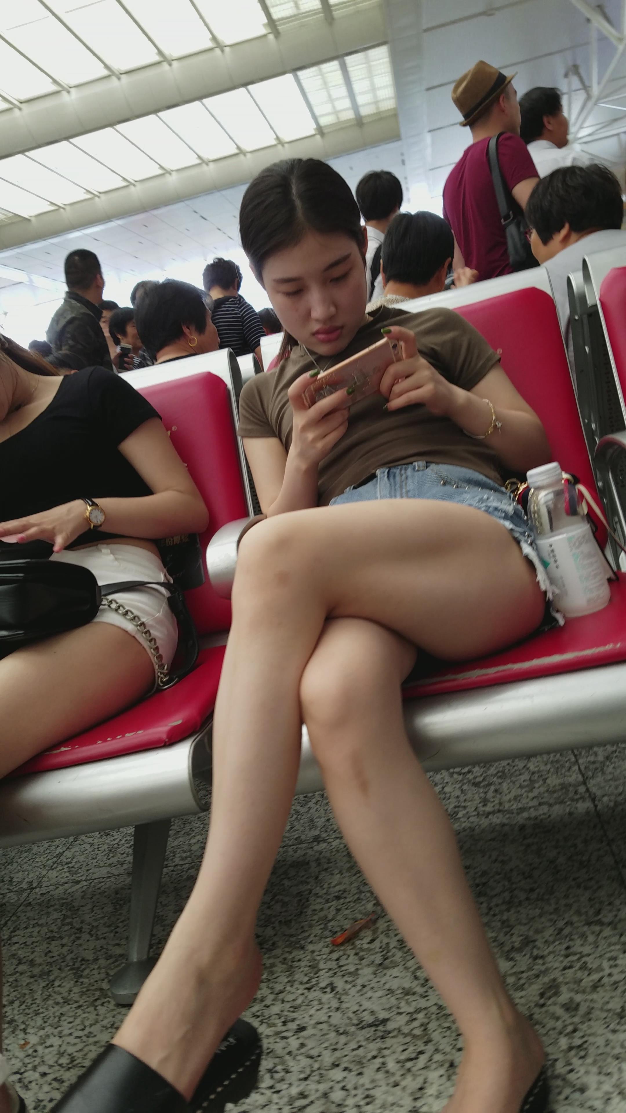 4K-牛仔热裤长腿墨绿T恤衫街拍美女 编号2765