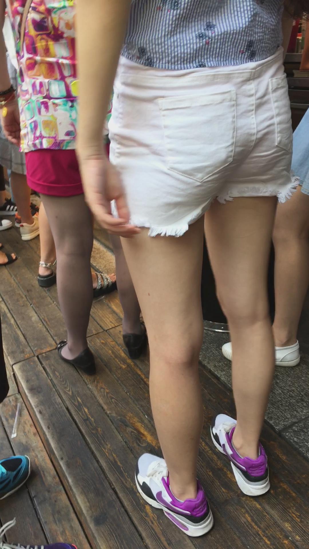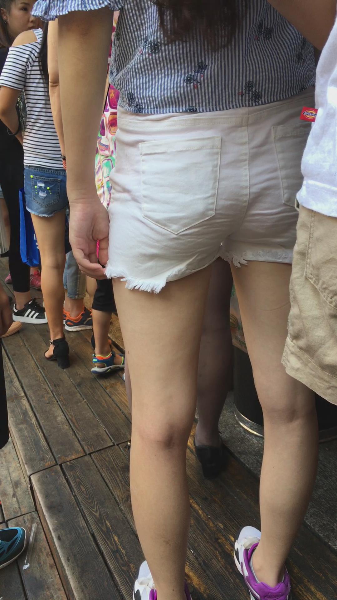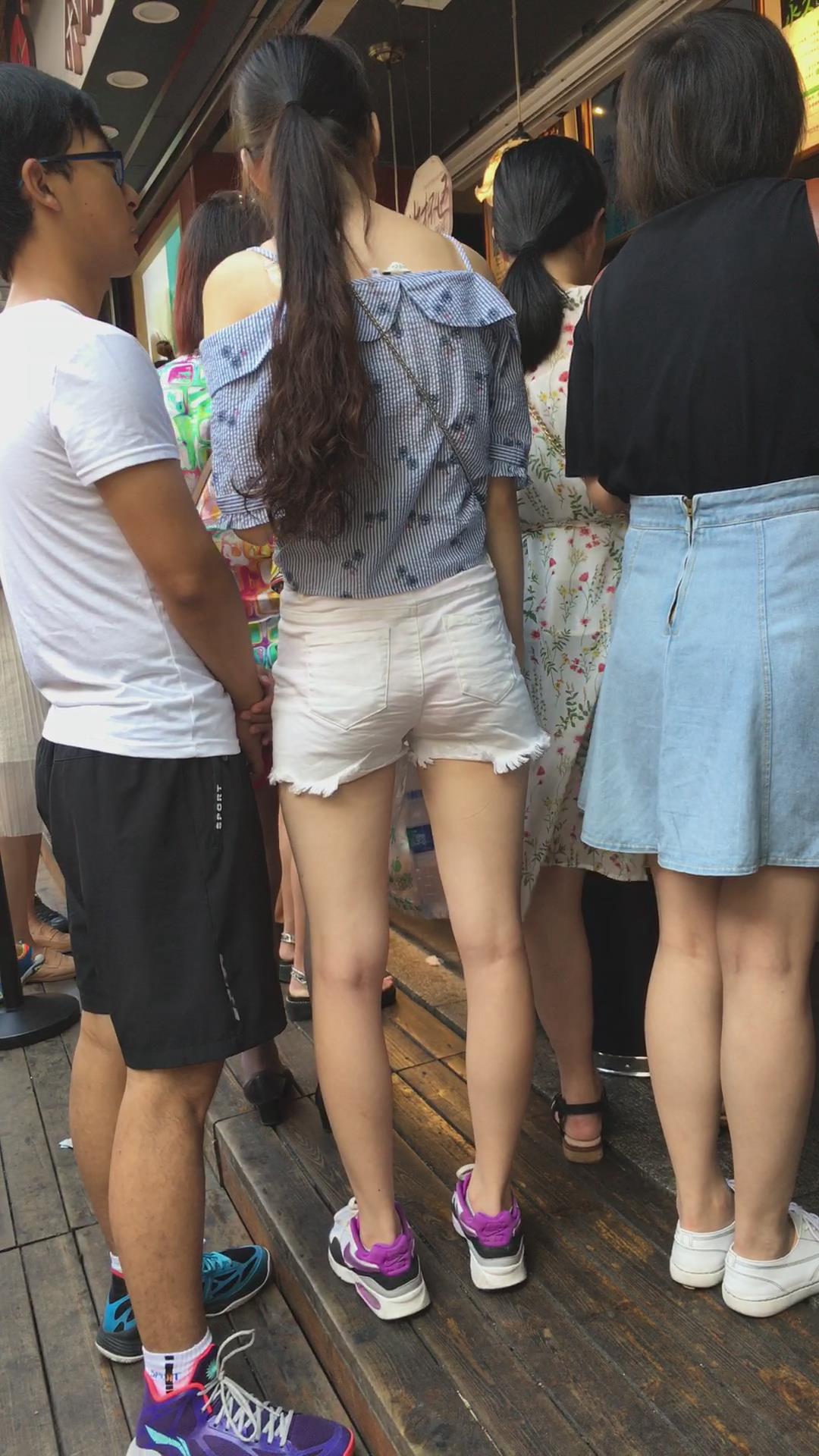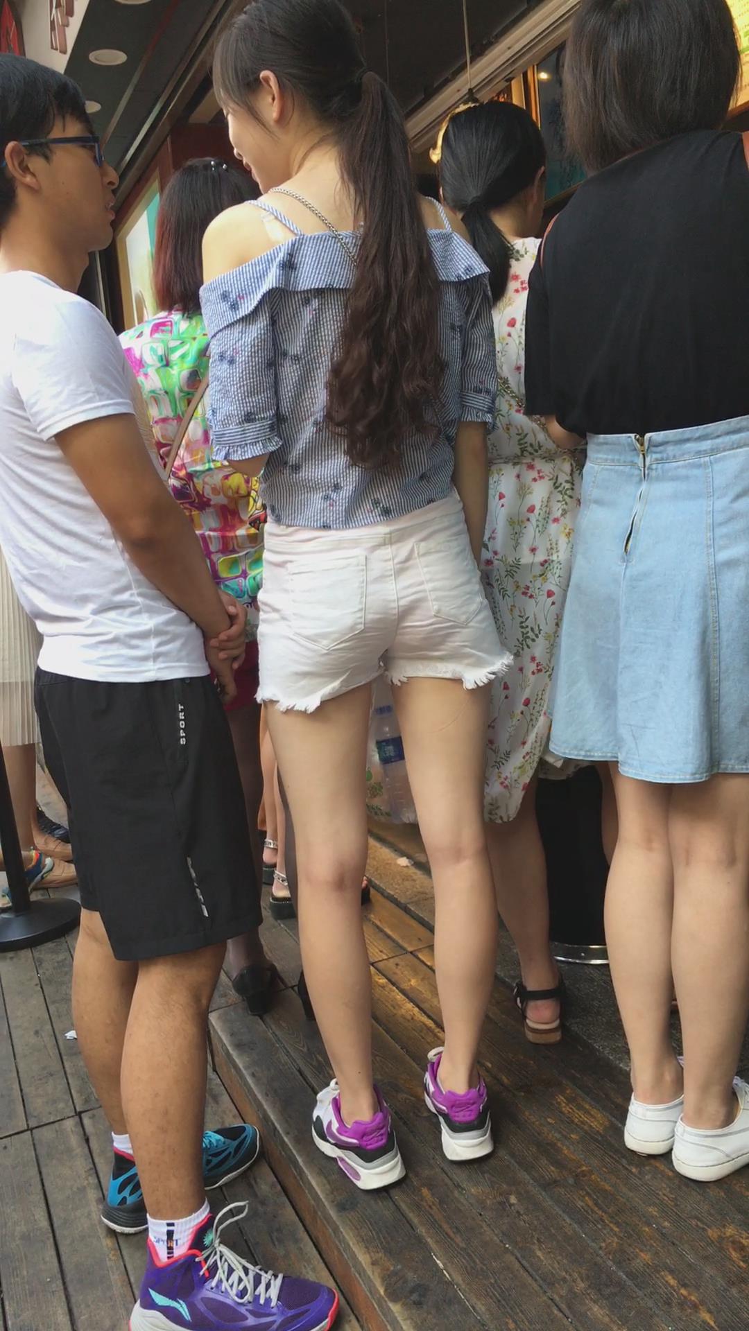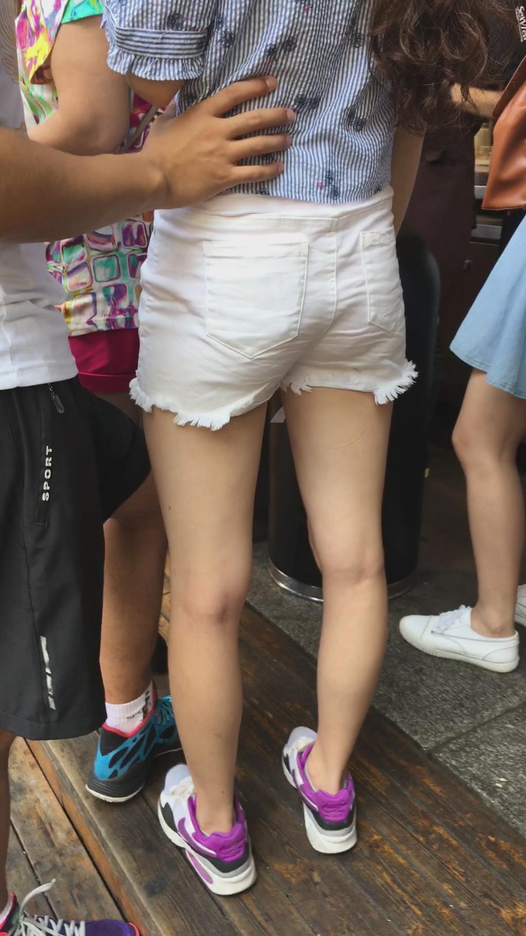 街拍白短热裤清纯马尾辫小姐姐 编号4509