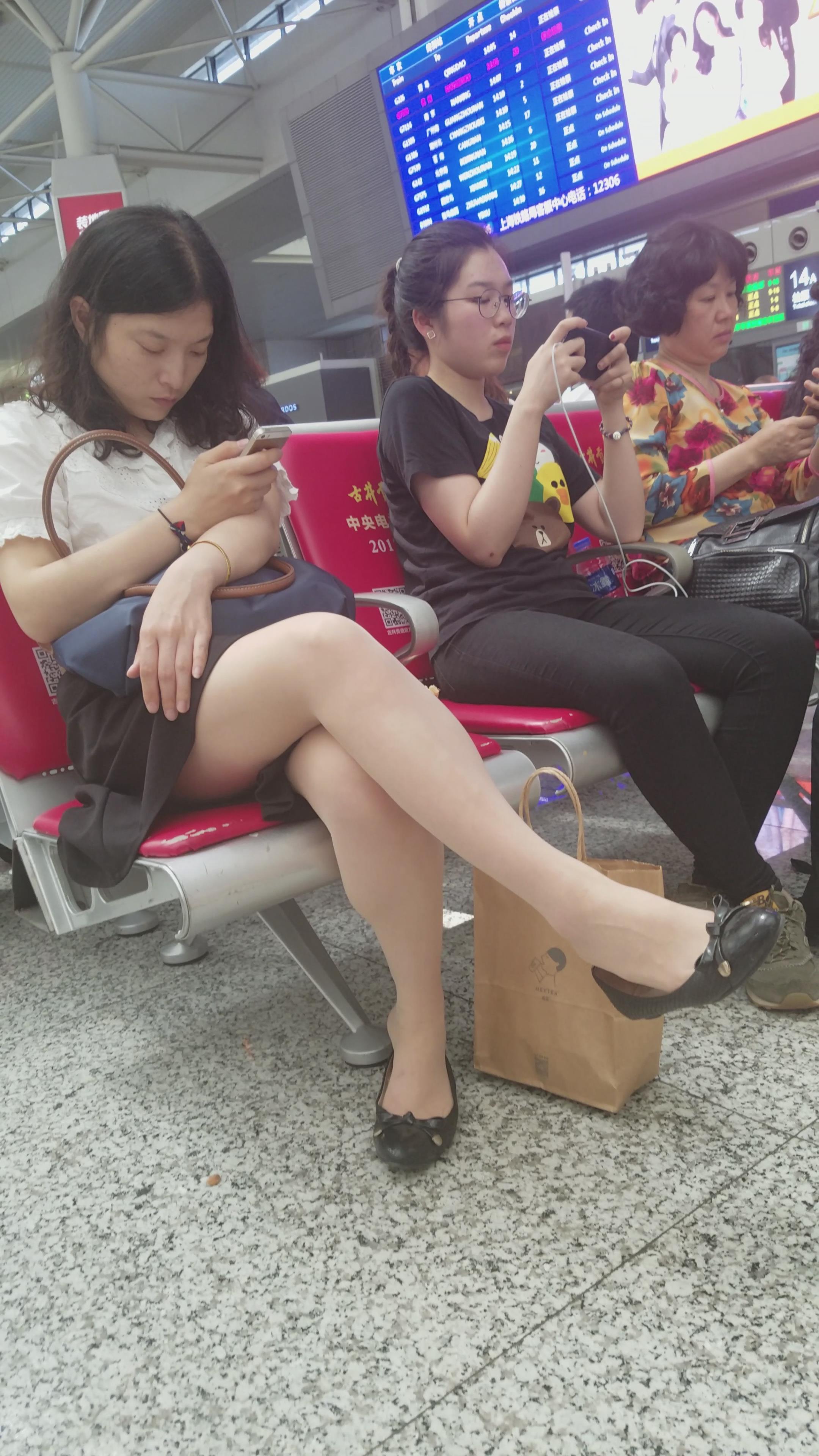 4k-候车室专心玩手机的小姐姐,趁人不备偷偷晾脚 编号2806