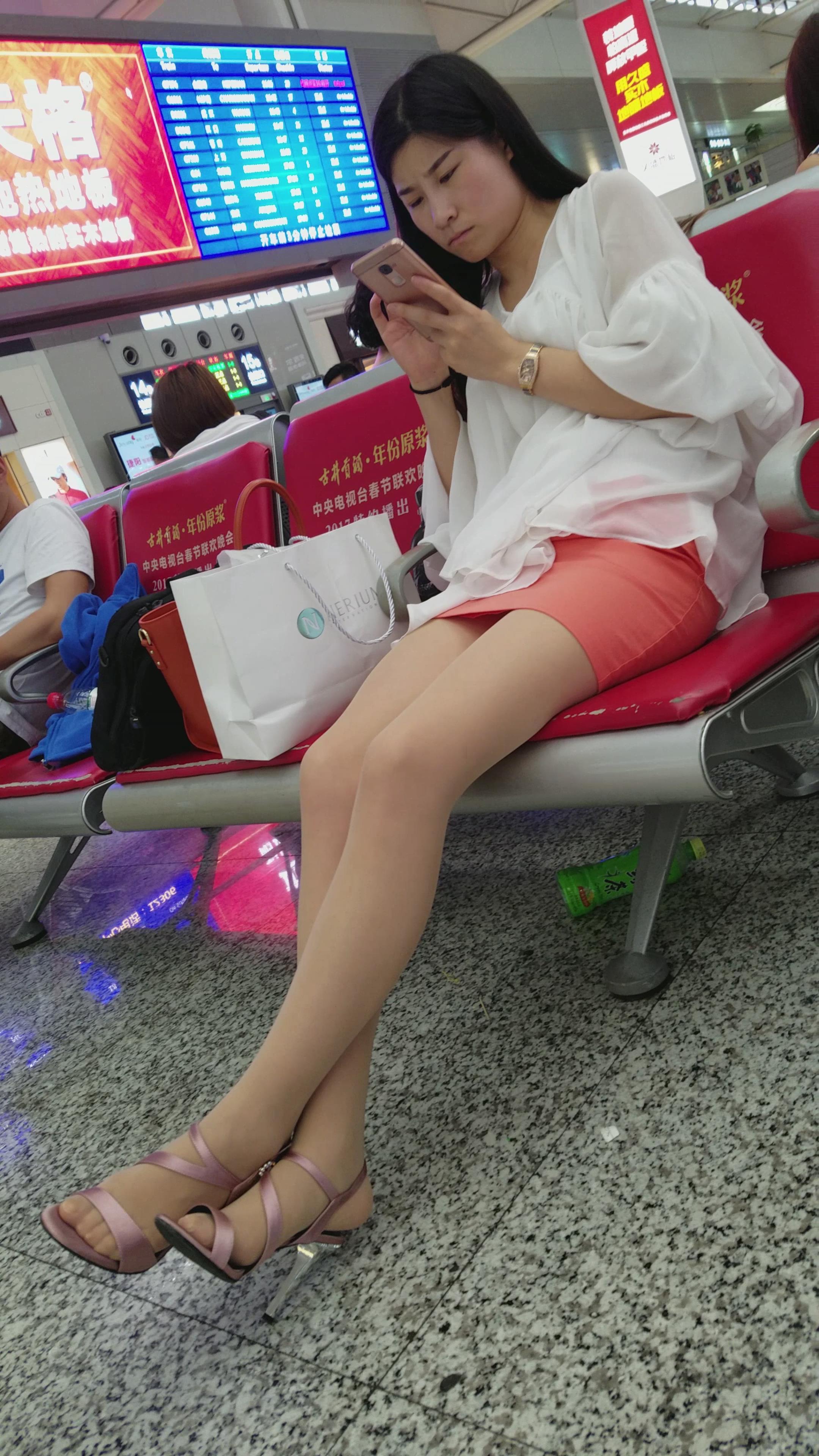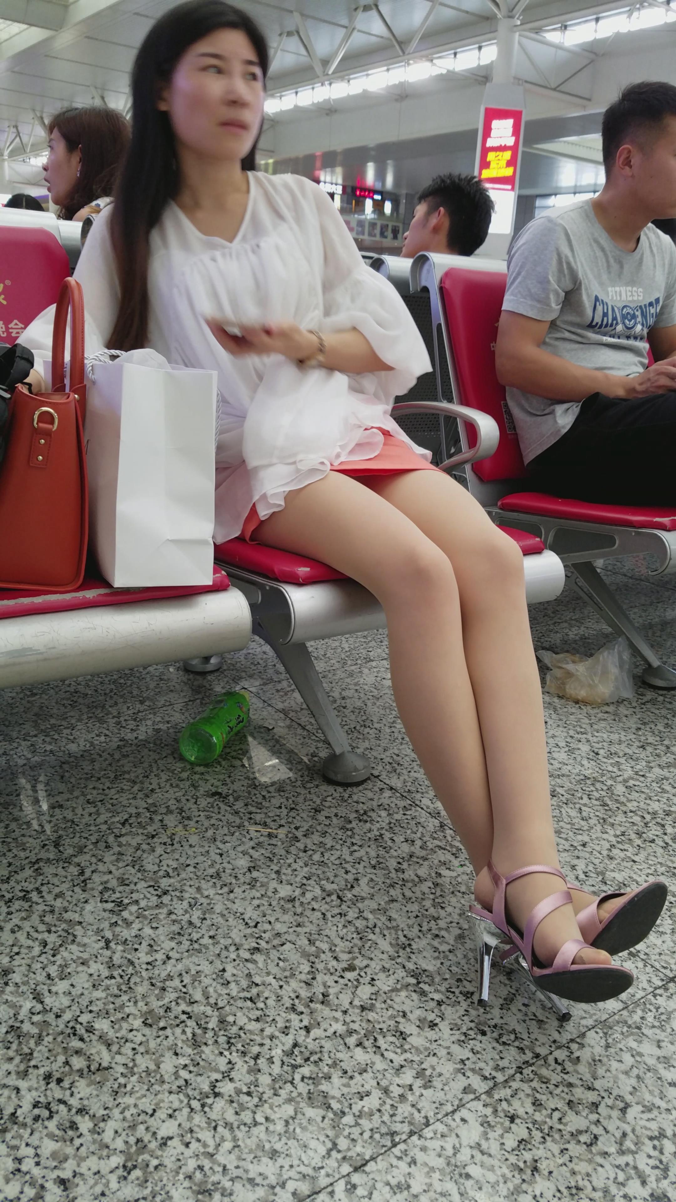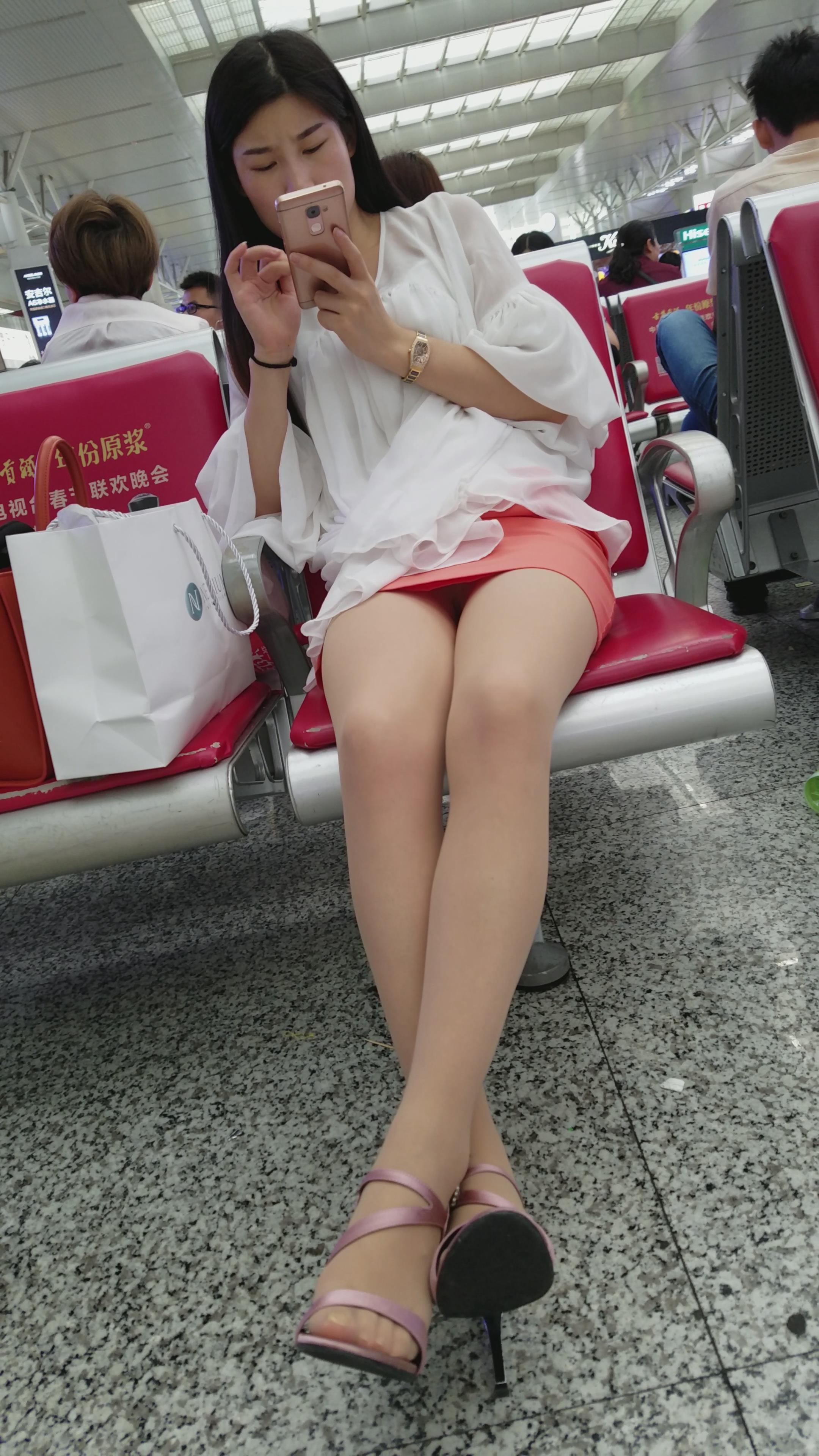 4k超清,粉裙丝袜长腿美女玩手机认真,走光了都不知道 编号2858