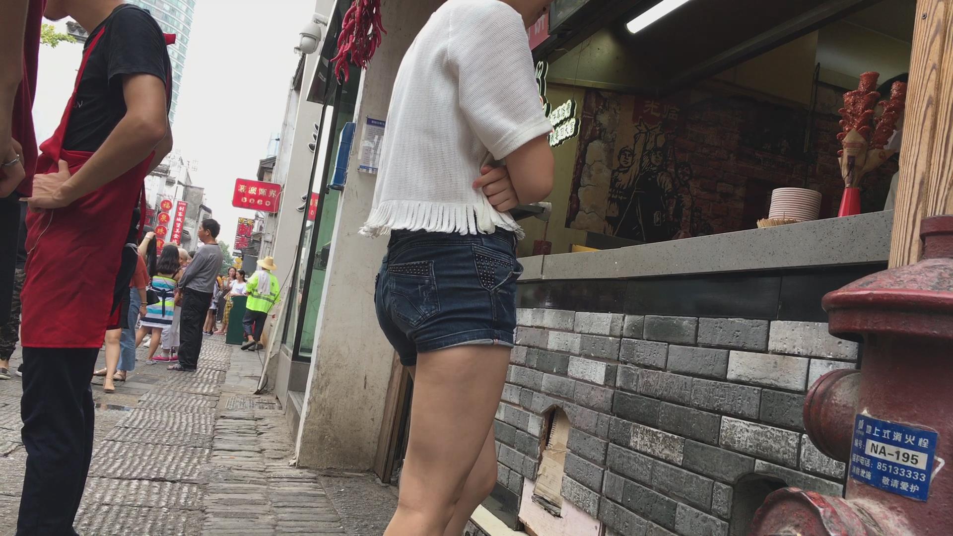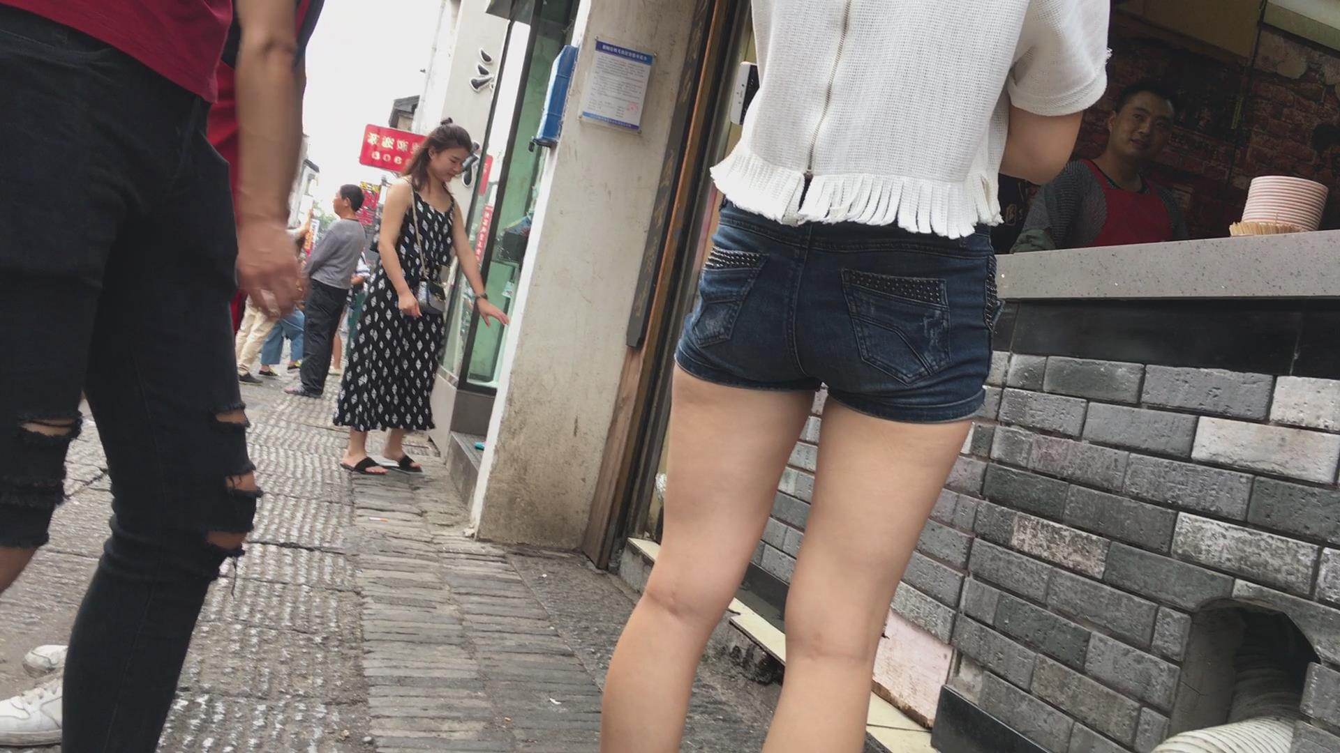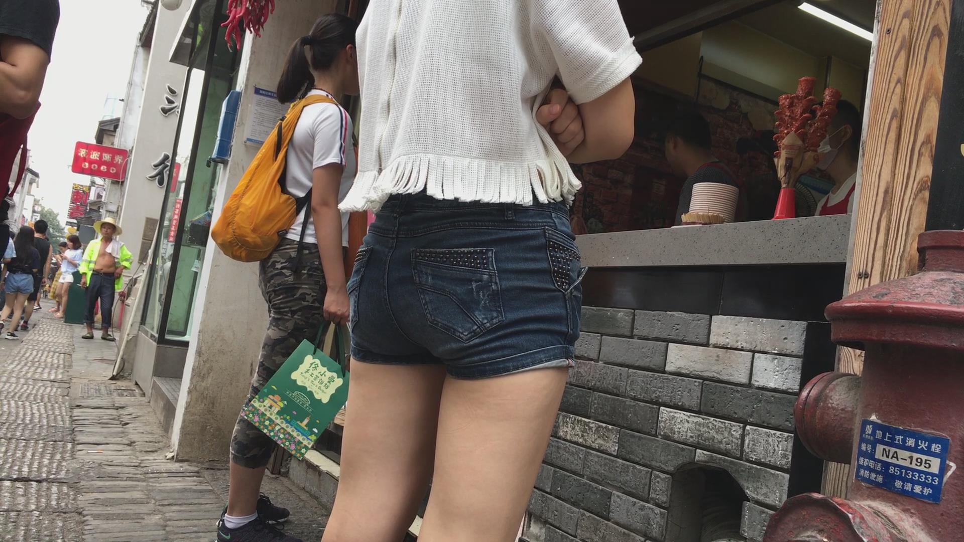 街拍牛仔短裤苹果臀美眉 编号4519