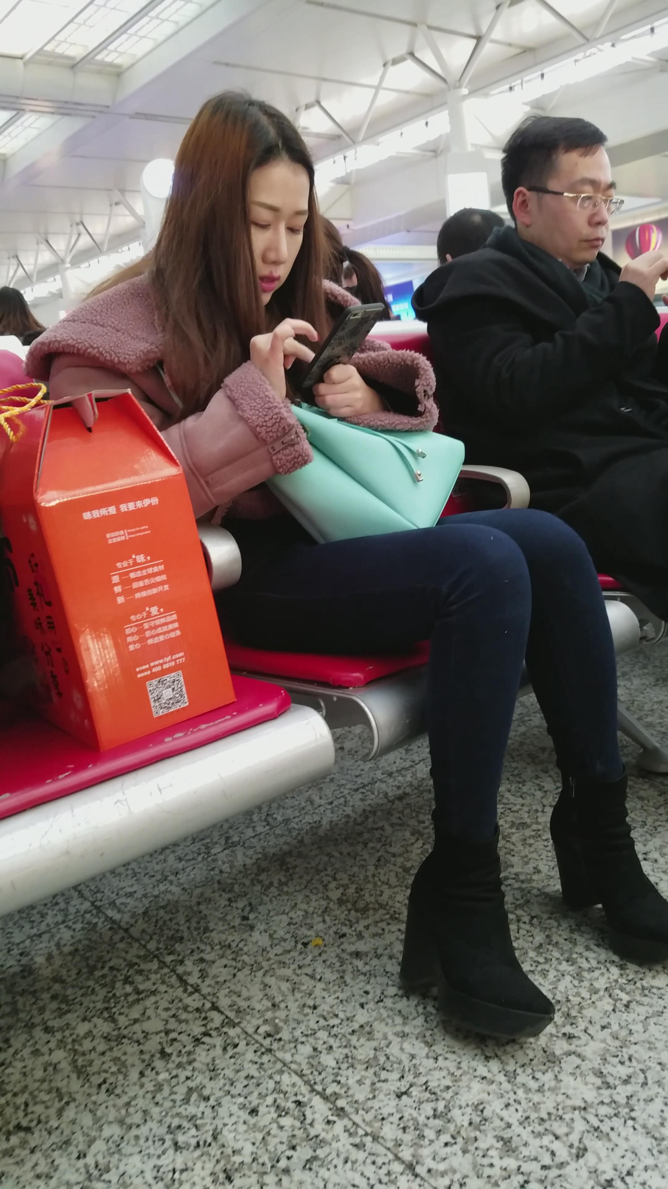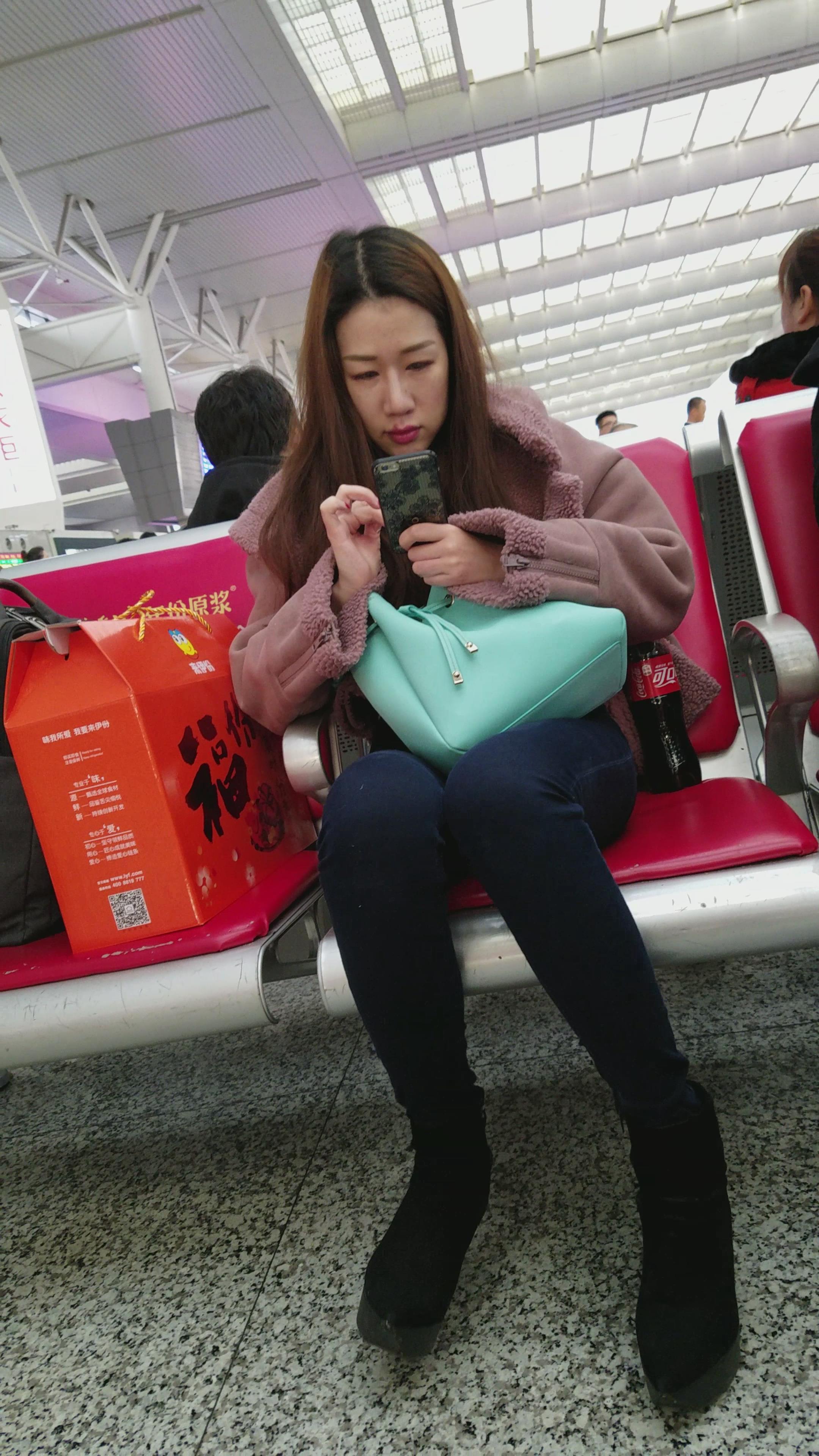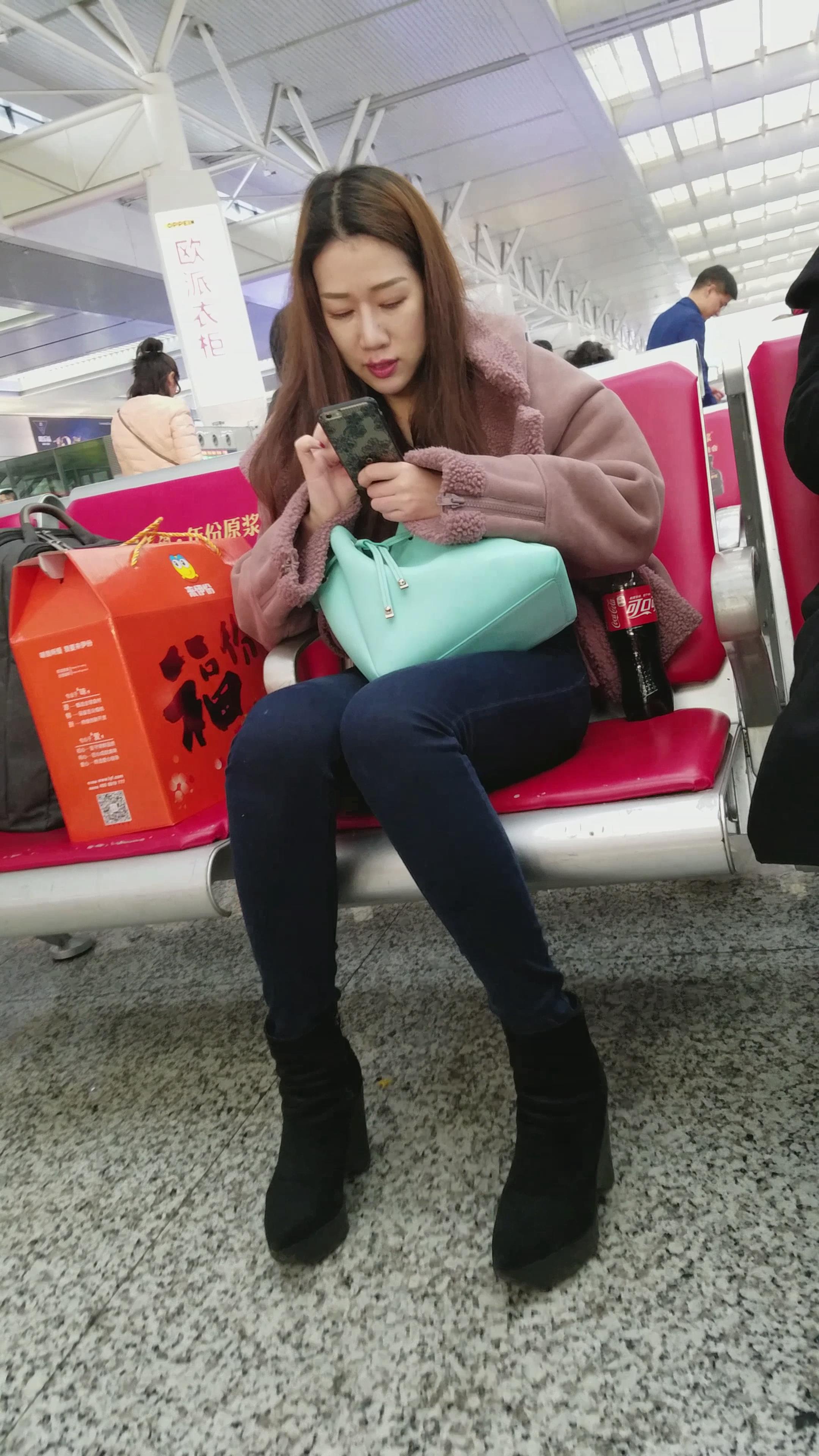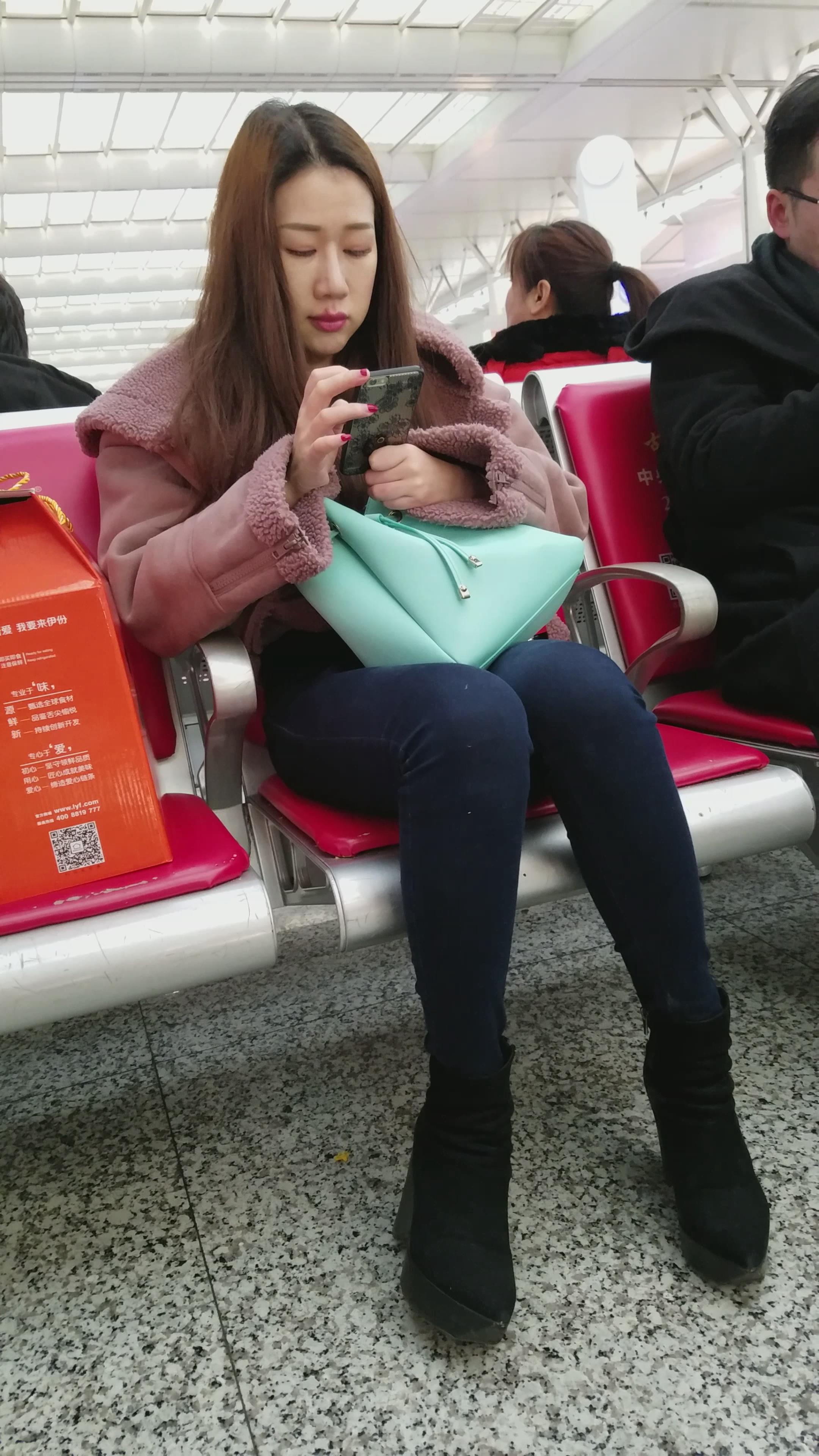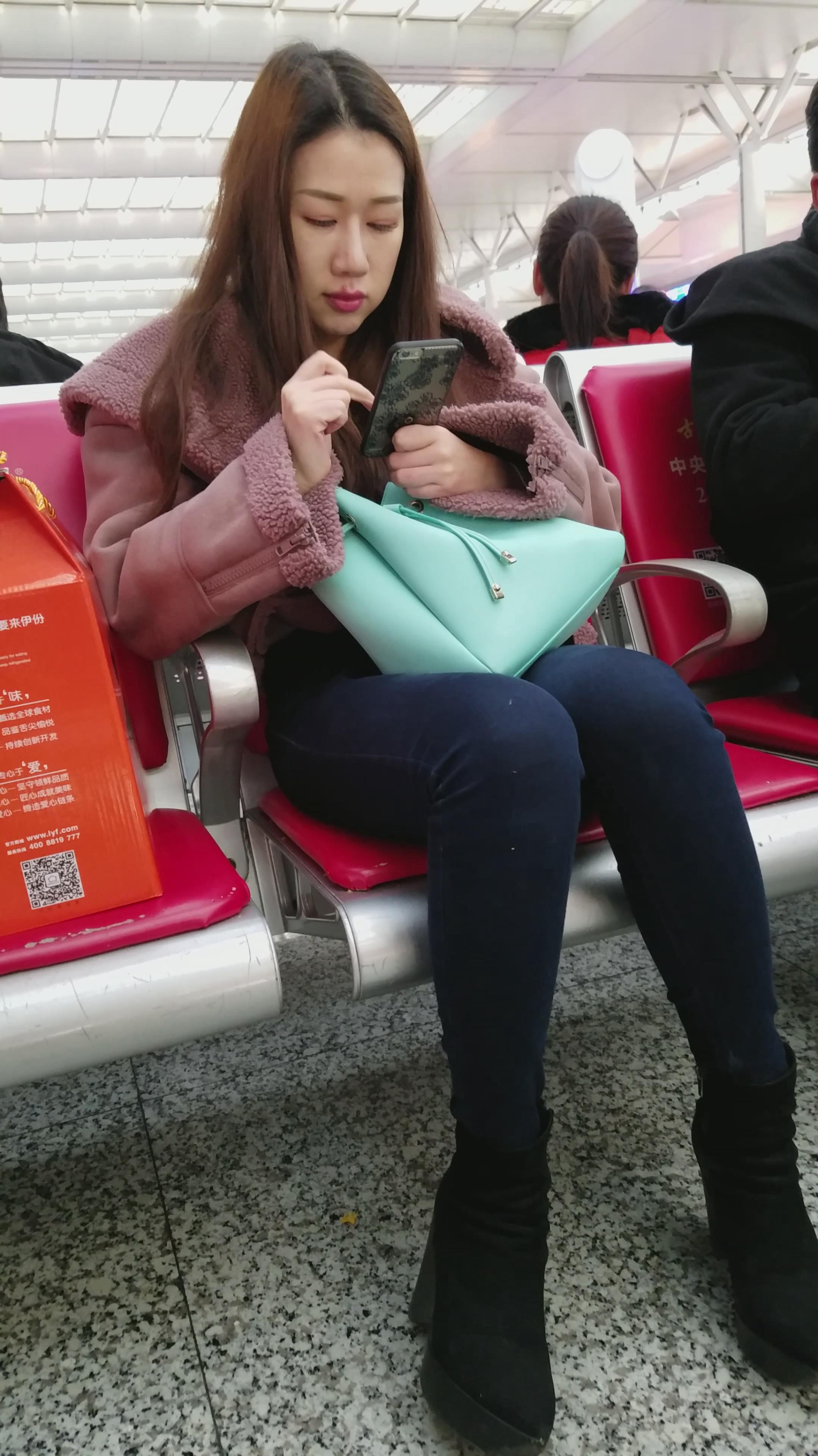 4k-候车室拍摄小清新颜值紧身蓝牛美女 编号2932