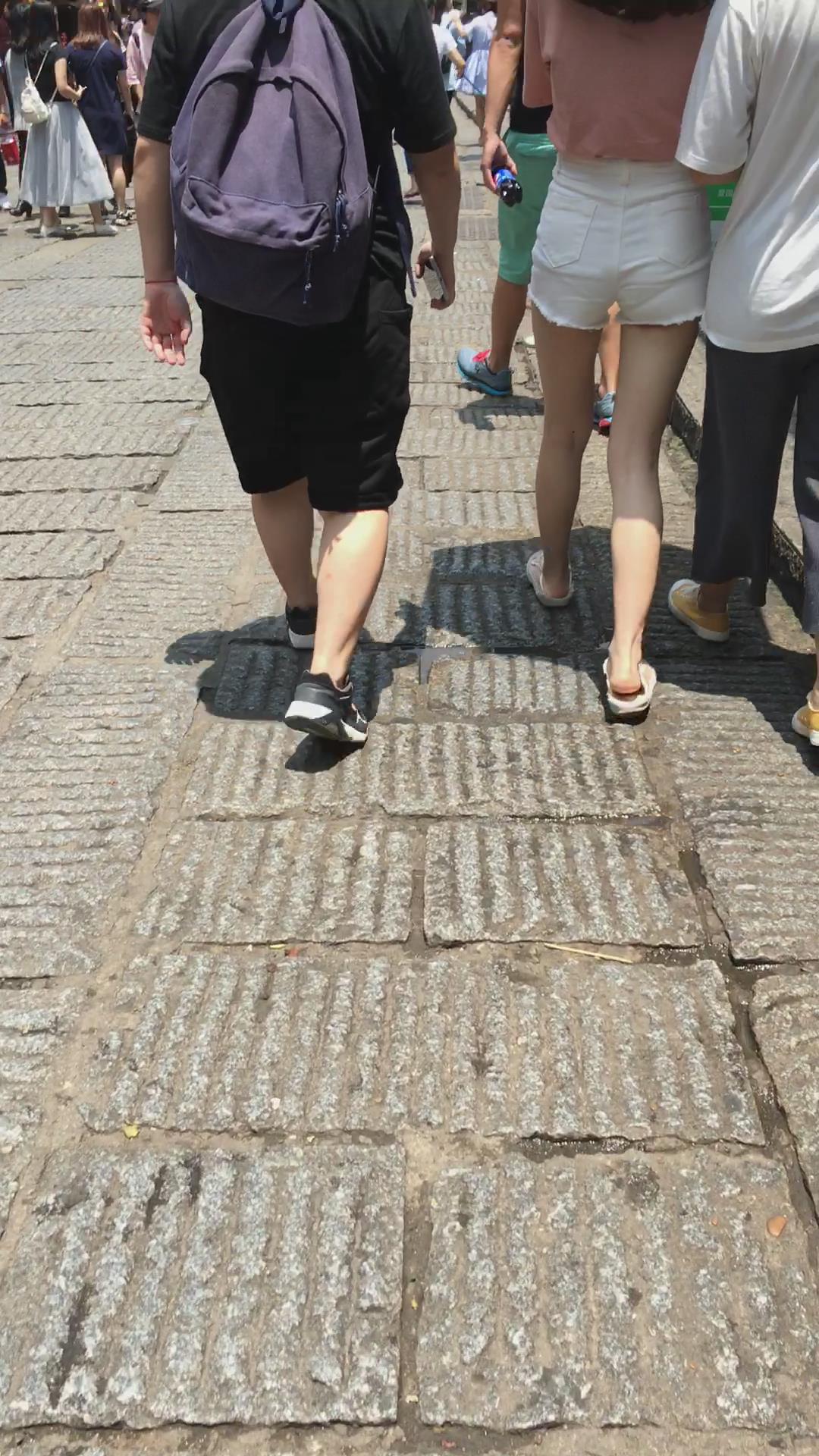 街拍粉衣高腰白色热裤美眉,内内印痕清晰 编号4524
