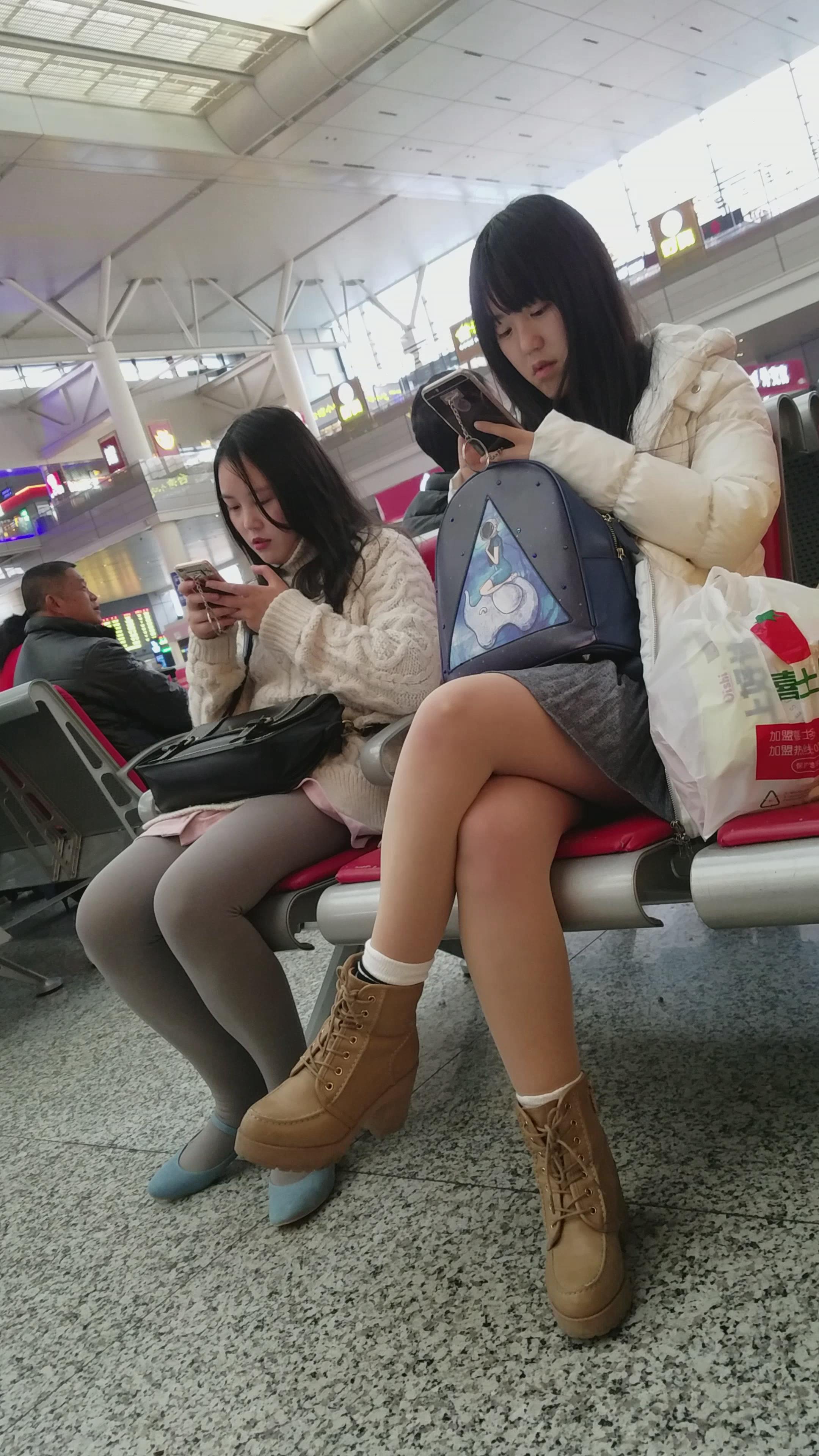 4k-高铁站候车室拍摄灰丝袜美腿姐妹 编号2990