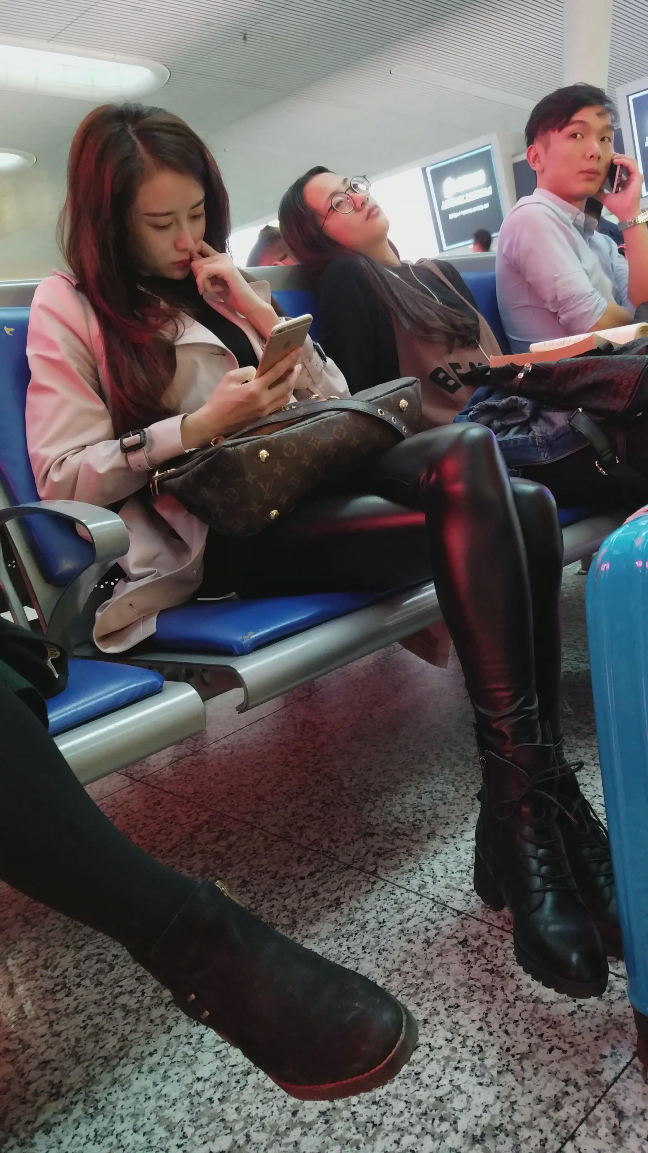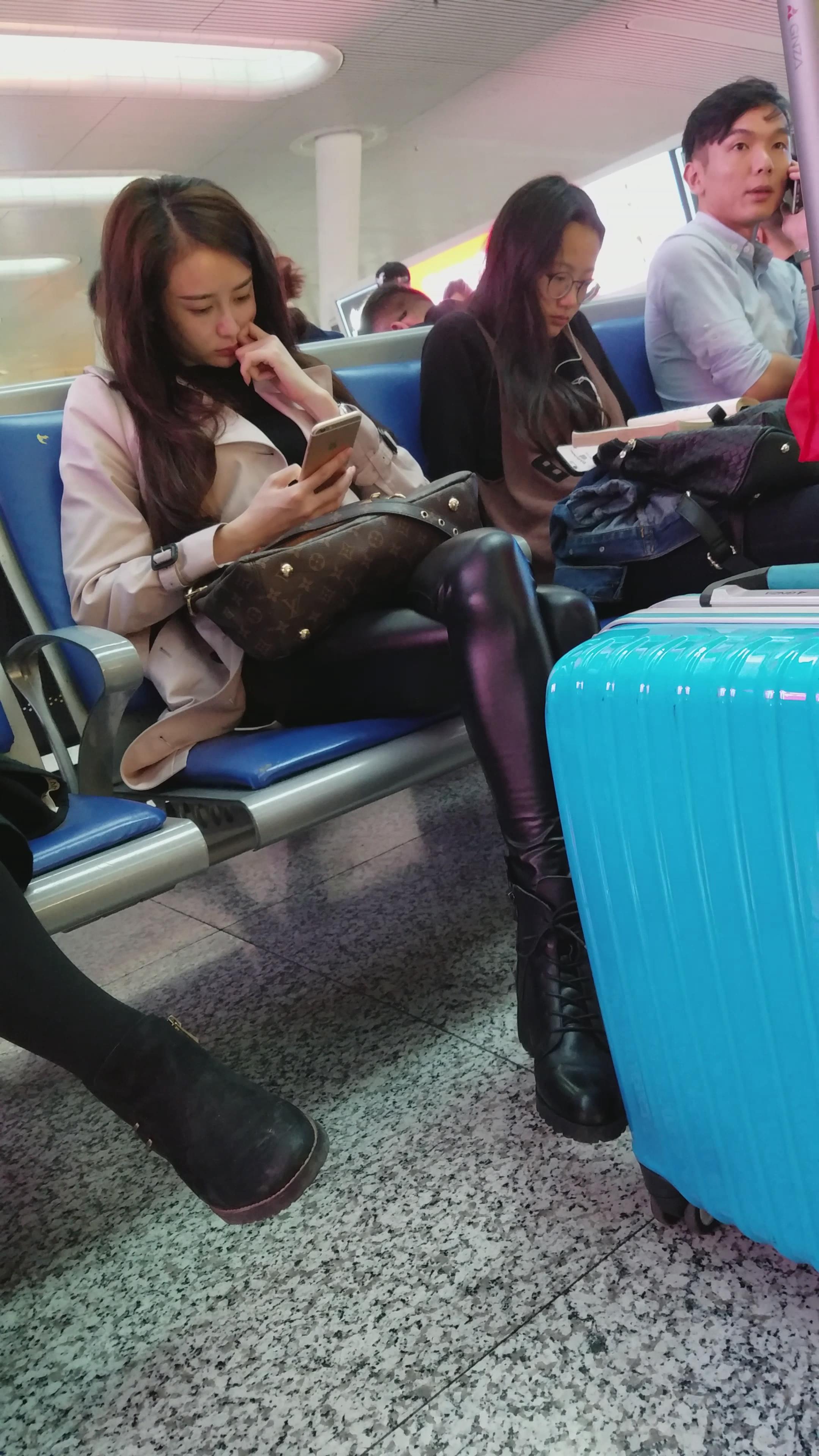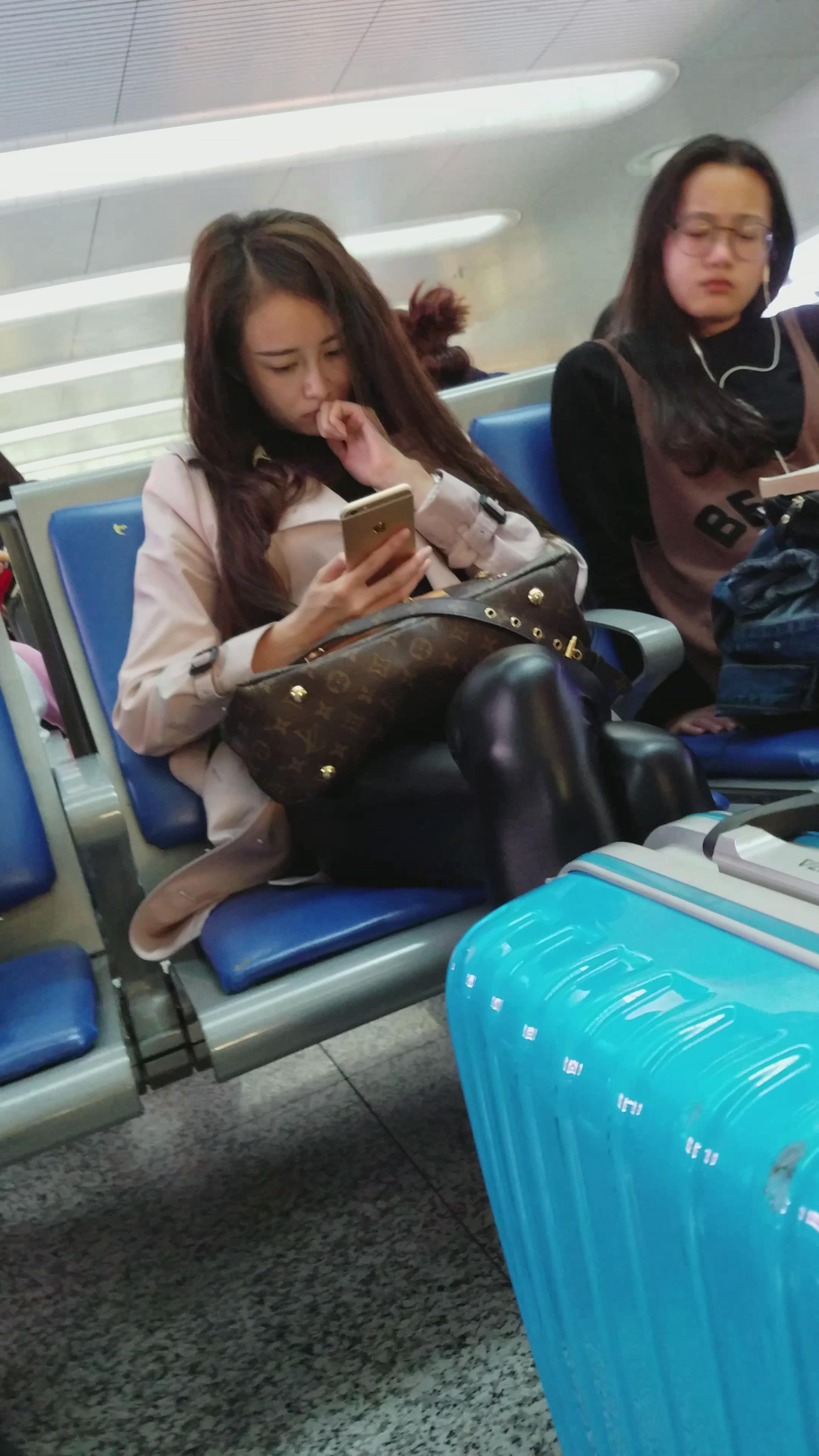 4k-高铁站候车室拍摄温柔甜美的紧身皮裤女神 编号2994