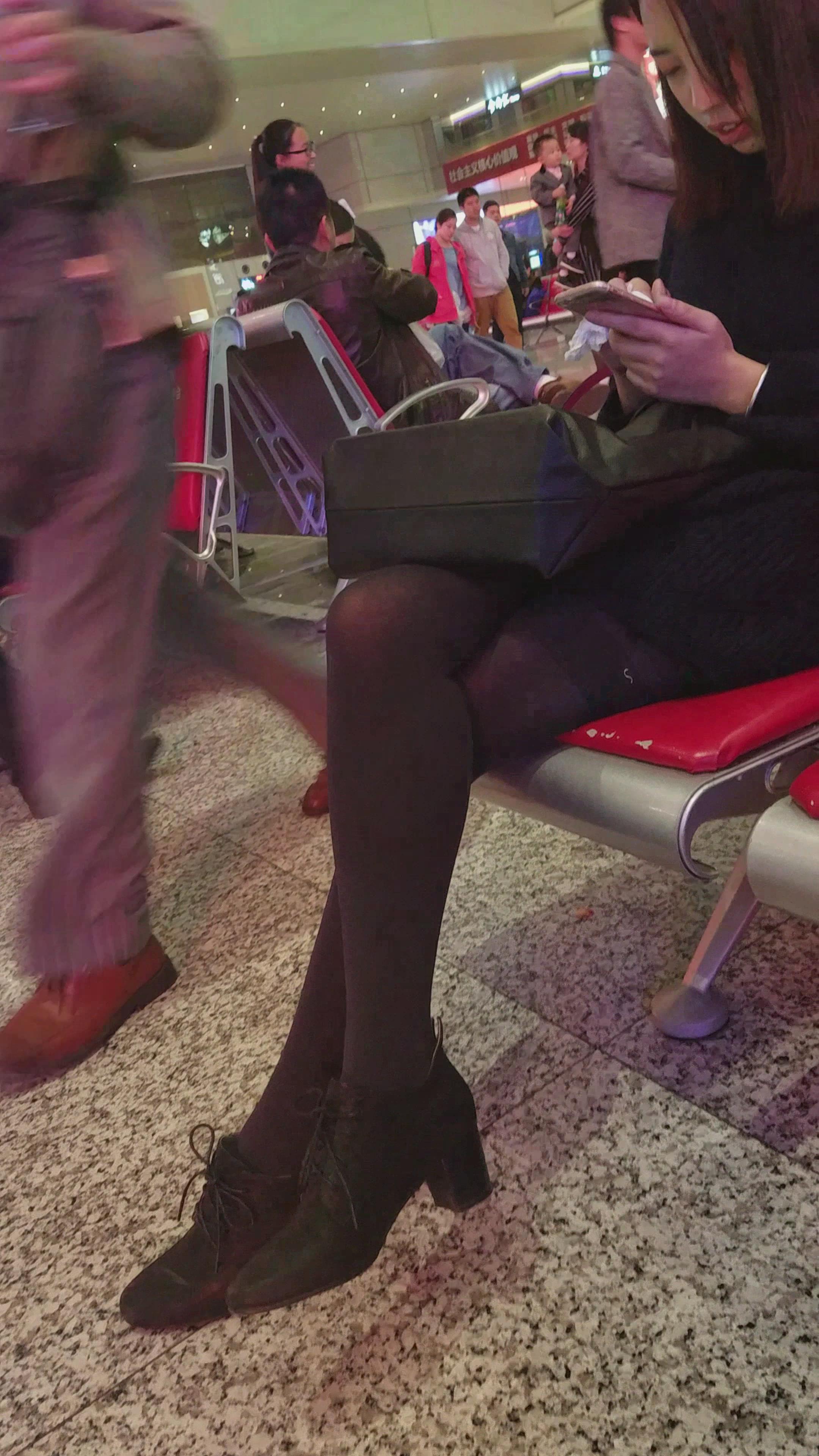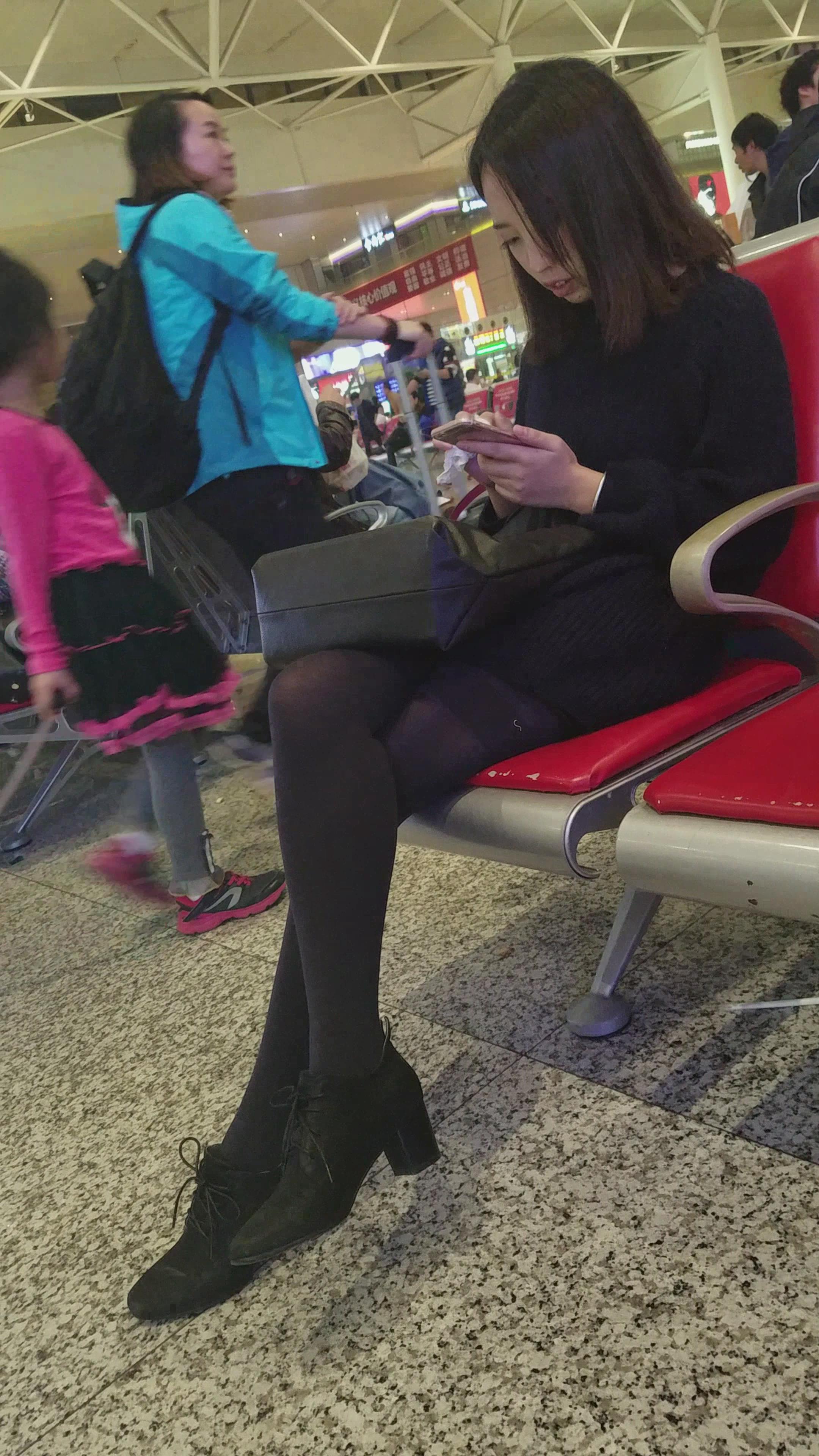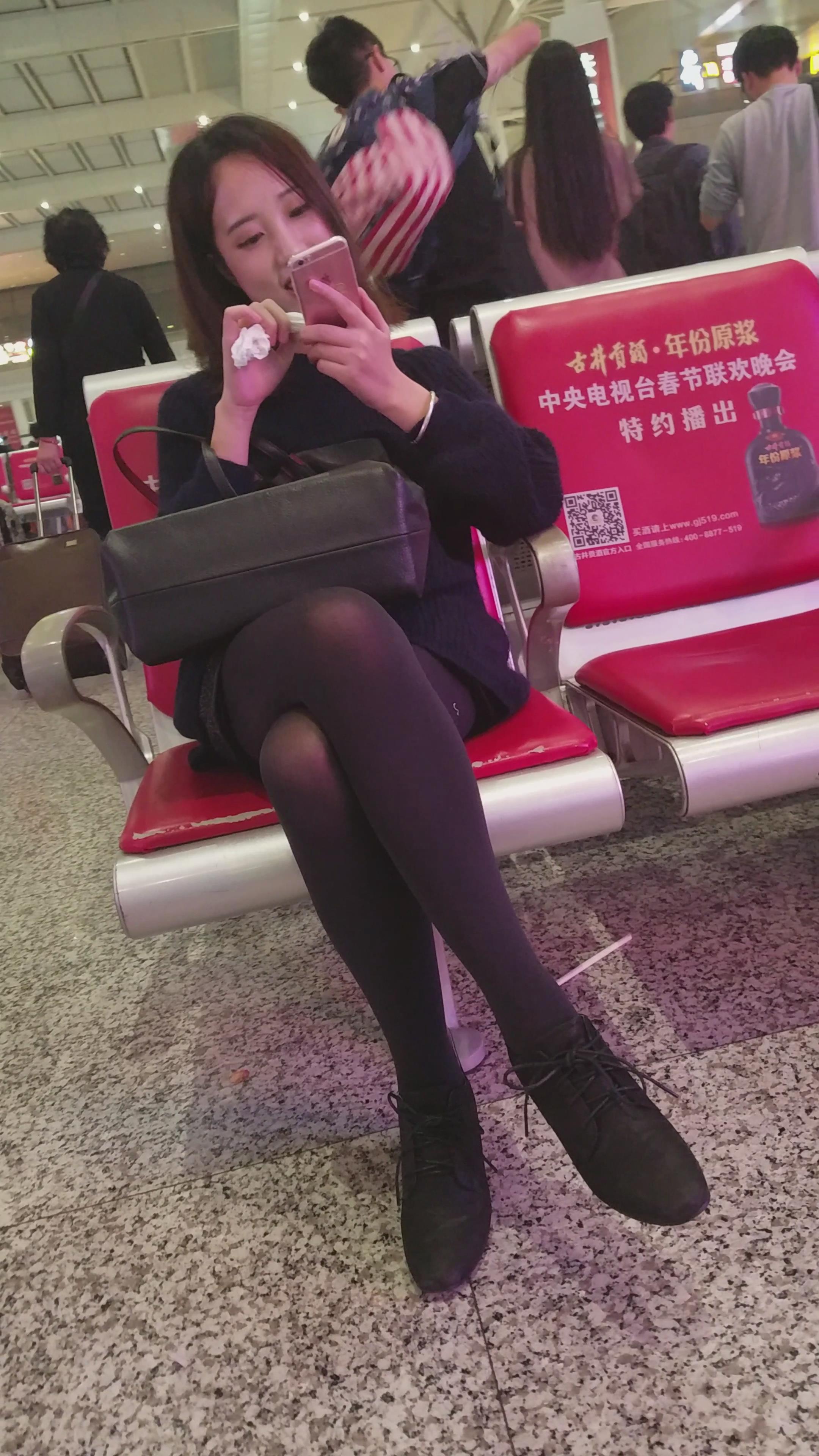 4k-高铁站候车室拍摄黑丝小萝莉美女 编号3006