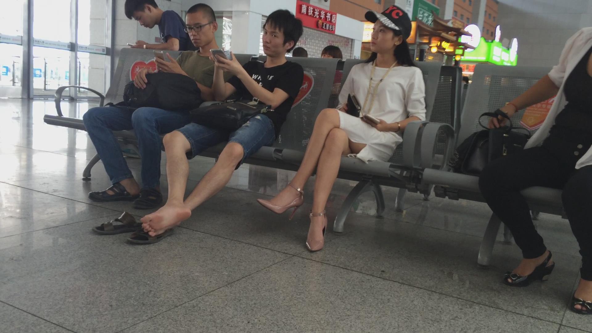 高铁站候车室偶遇超美尖嘴高跟鸭舌帽女神 编号3030