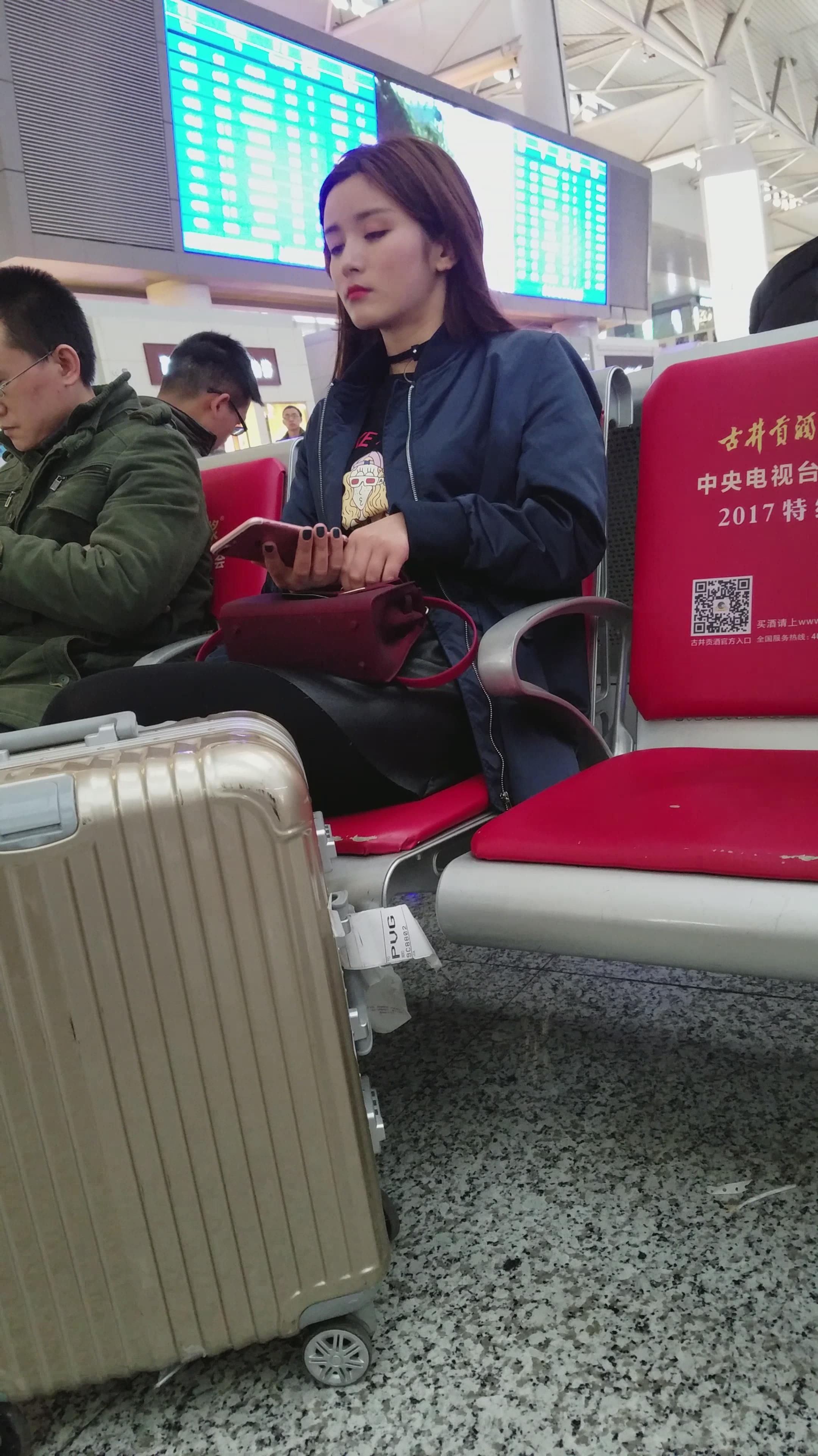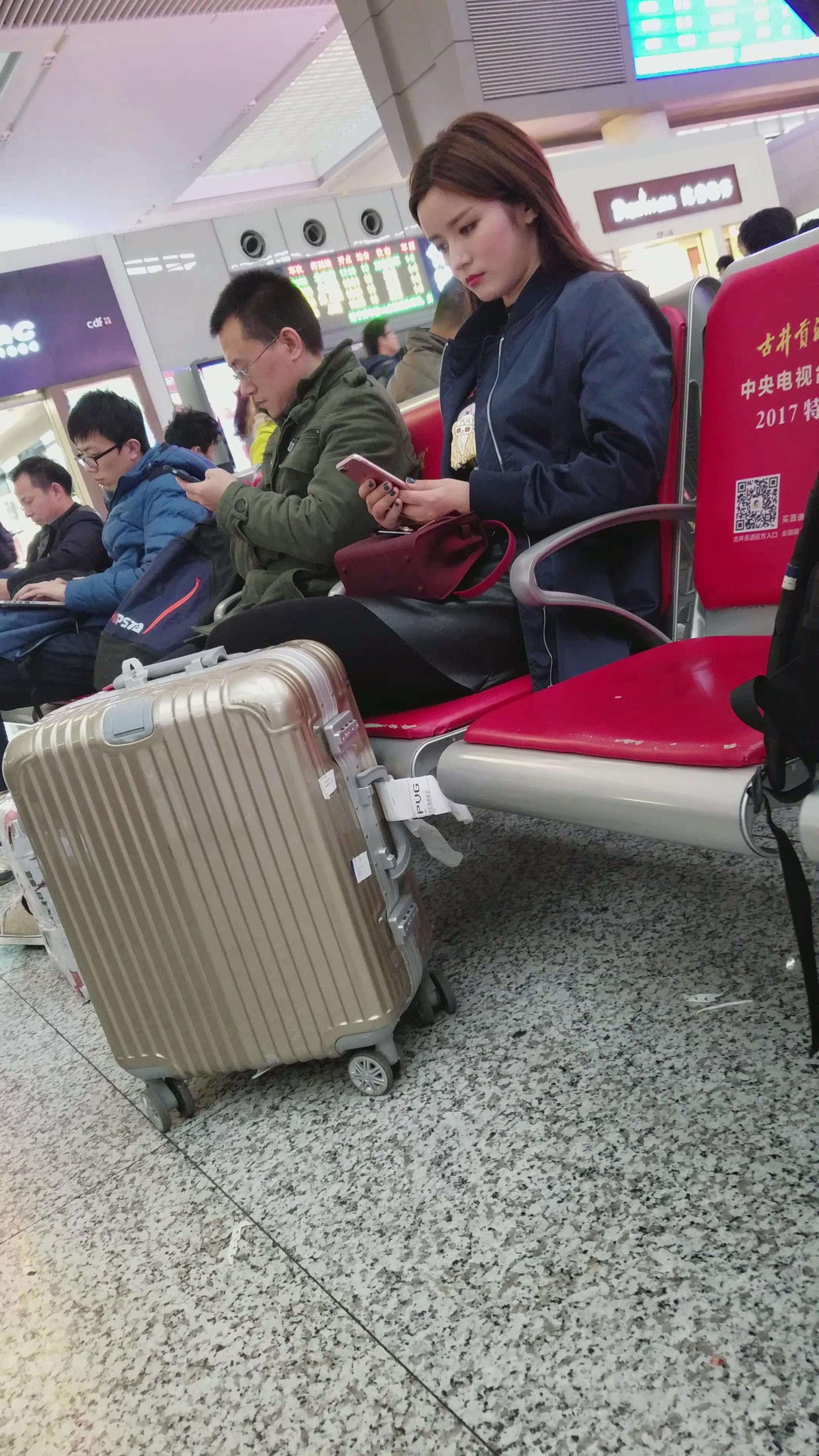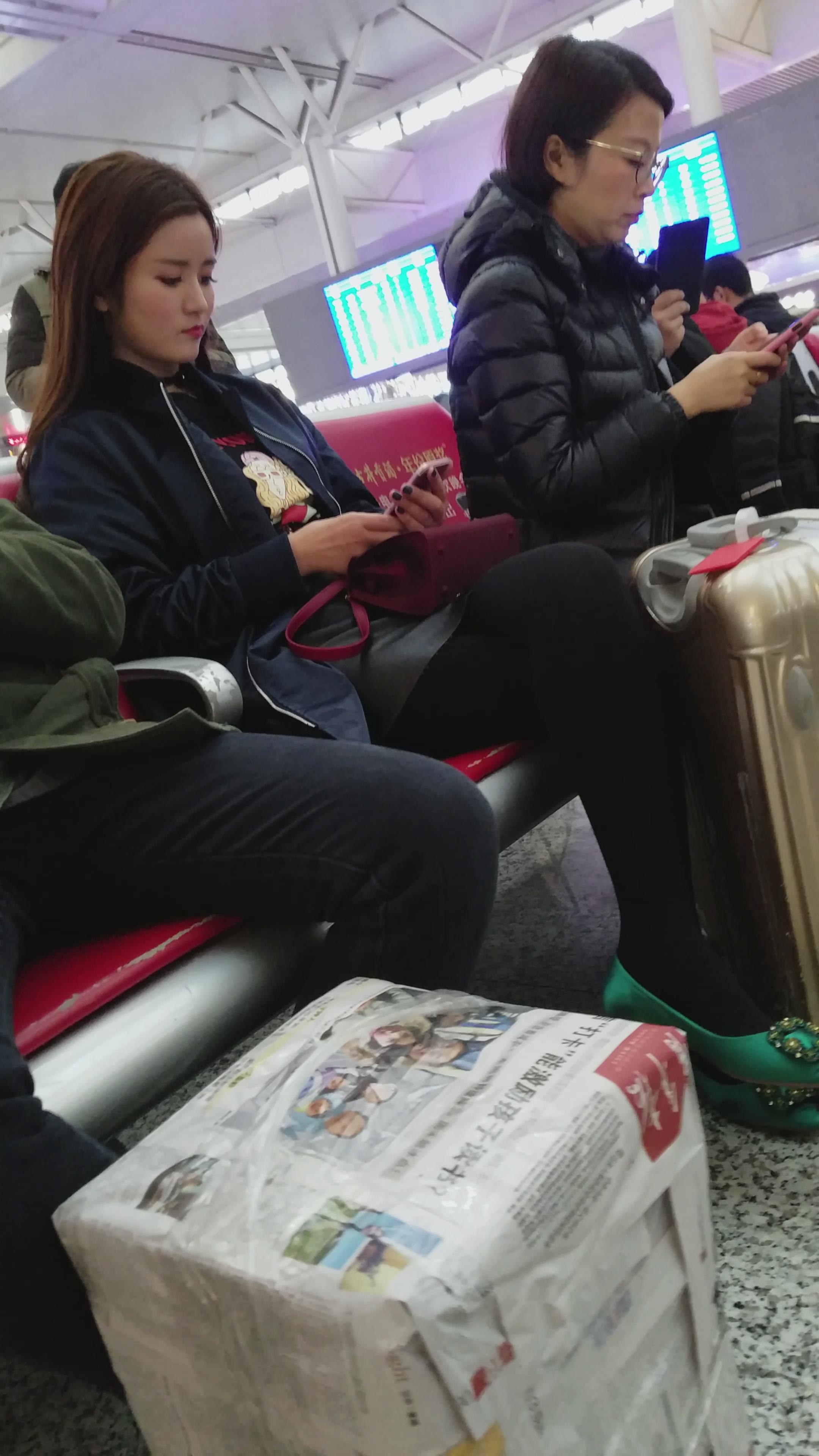 4k-高铁站候车室拍摄大眼睛高冷黑丝袜打底裤女神 编号3034