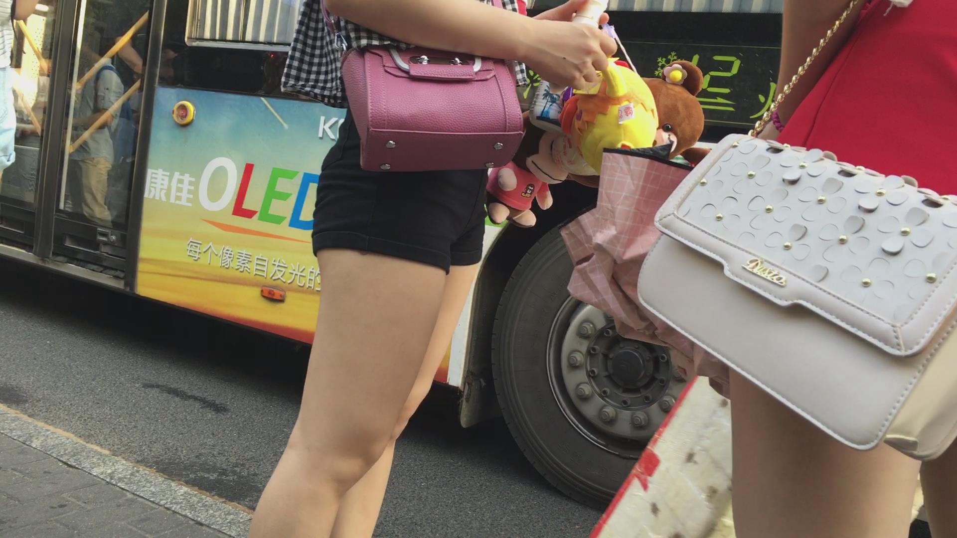街拍公交站等车的丰臀高腰超短热裤美女 编号4533