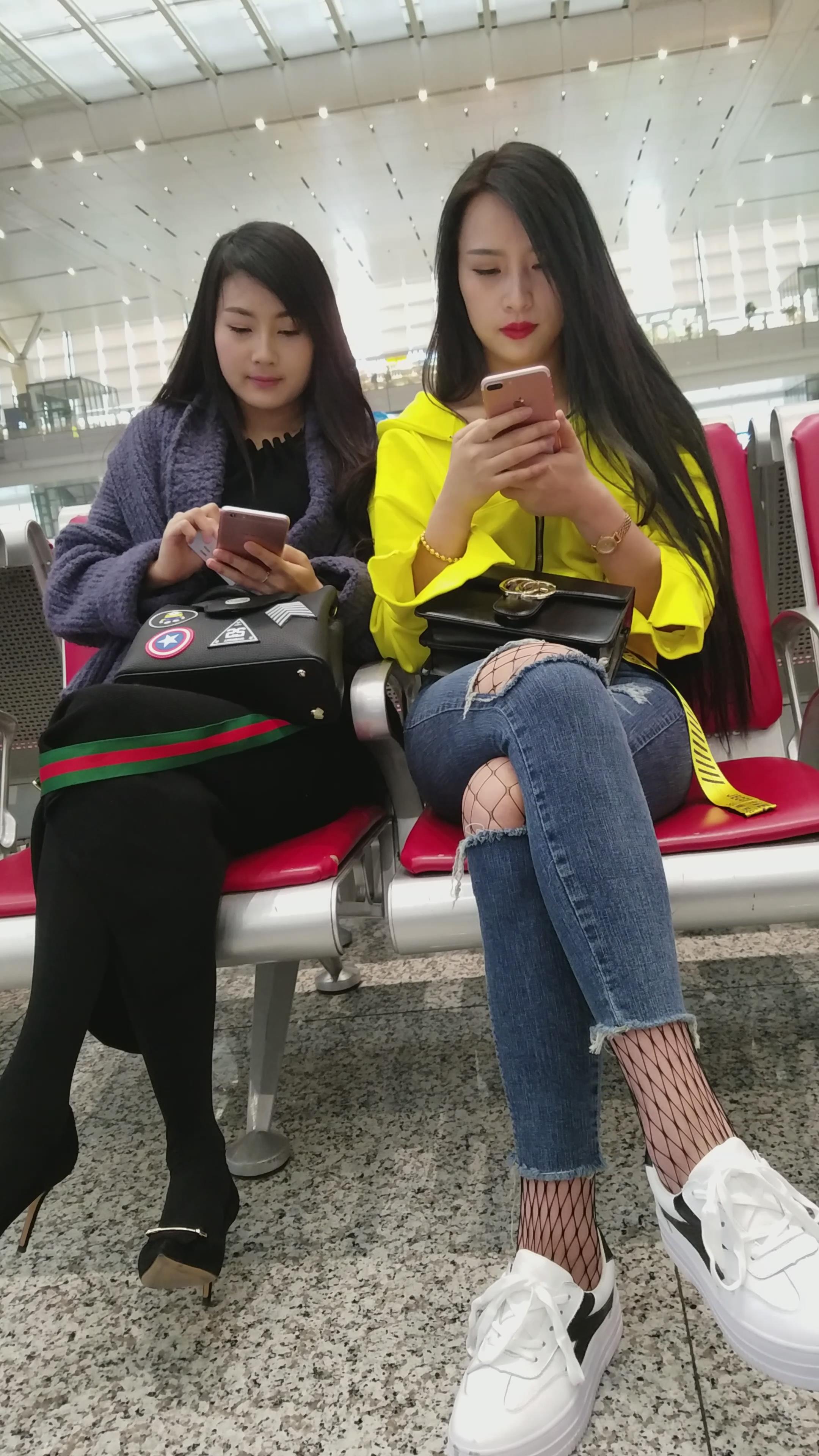 4k-破洞紧身牛仔配大眼网袜的冷艳长发美女姐姐 编号3036